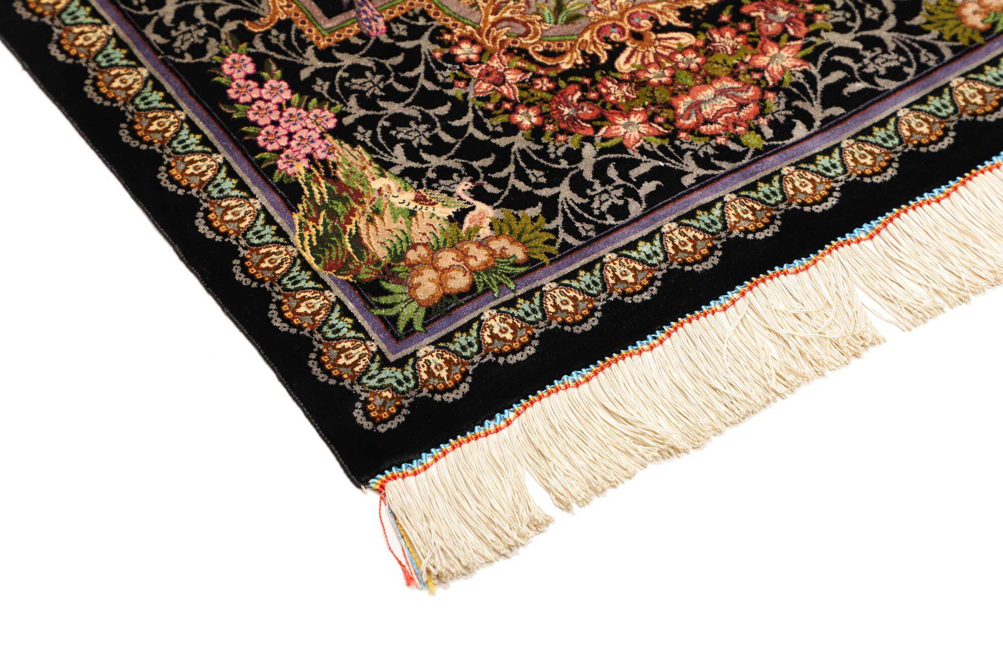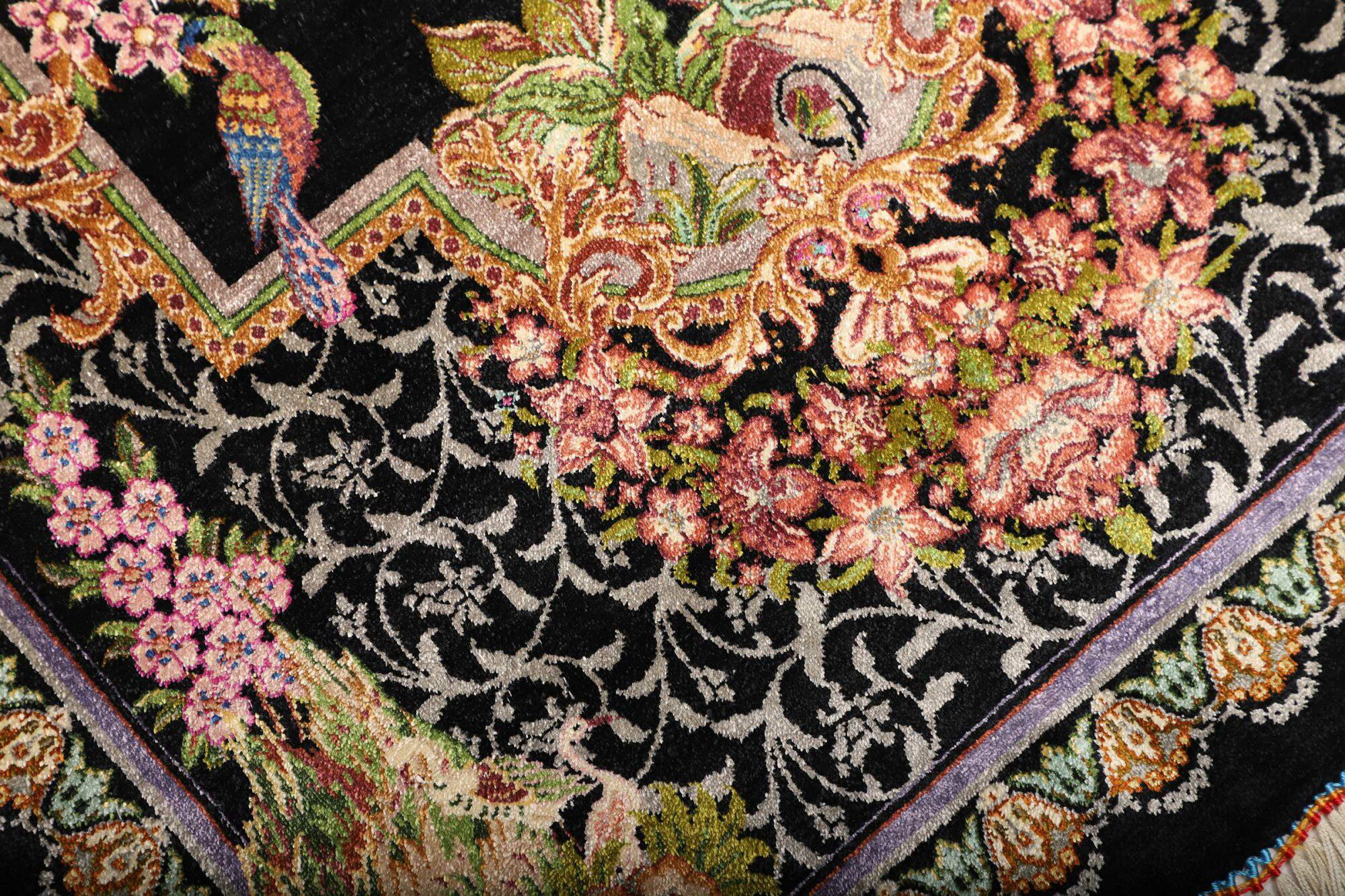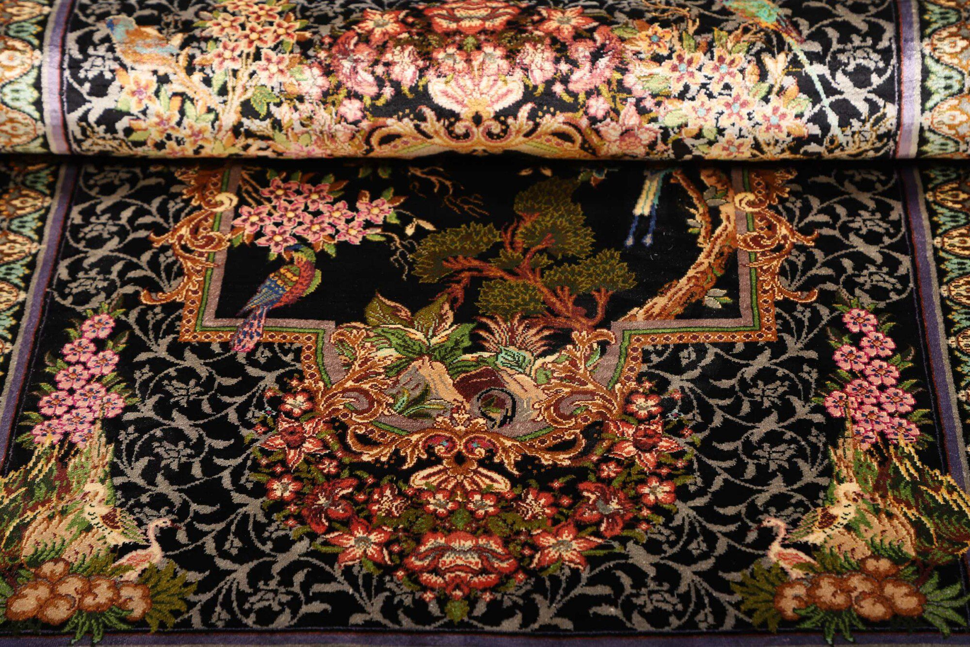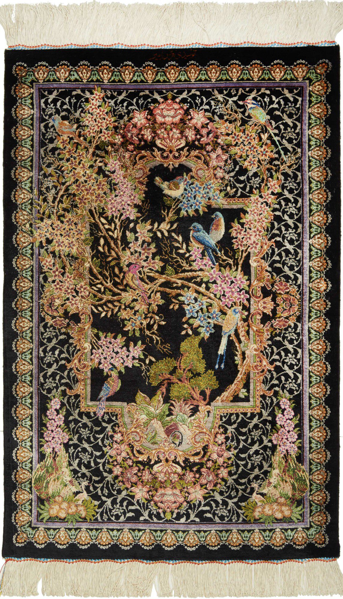 Ghom, a city of half a million people, lies south of Teheran, by the road to the Markazi (Central) province. The city’s rug industry was only developed after 1930 but has gained a good reputation. As there is no tradition or precedent to draw on, the weavers get their motifs from different sources, from where they transfer and combine them. Some patterns are completely copied and it is not uncommon to see copies of Joshqan or Sirjan rugs made in Ghom, but they much finer than the originals and made with a silk pile. In addition, several variations of medallions and uniform patterns are made. The pile is either silk with silk warp and weft, or wool, or wool mixed with silk, with a cotton base. The knotting is usually fine. A wide range of colours is used, sometimes in combinations that appear odd to westerners. A powerful pink and green is particularly characteristic of the silk rugs.
