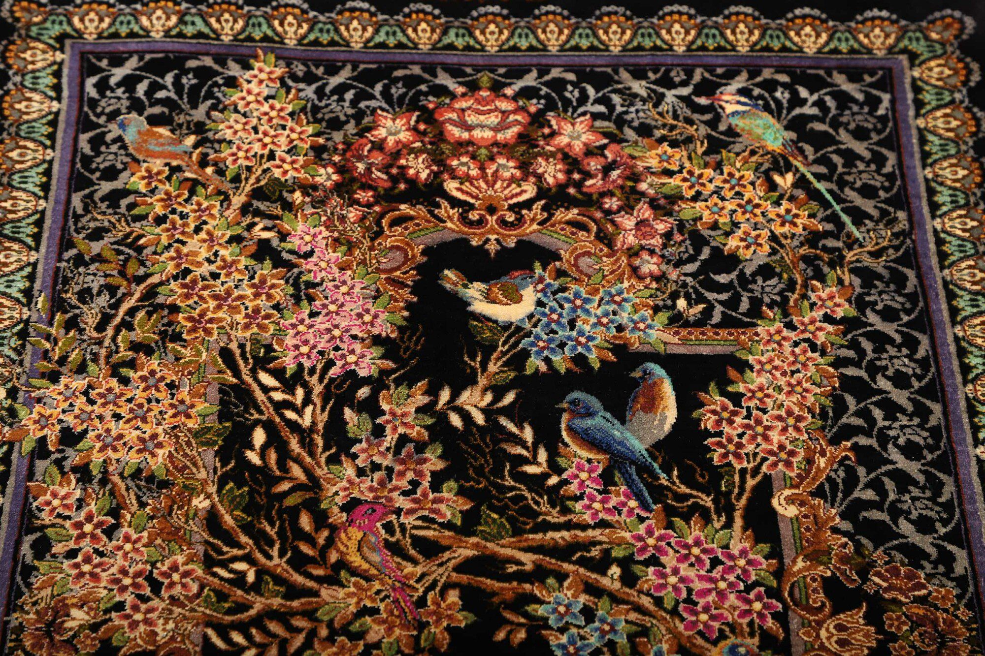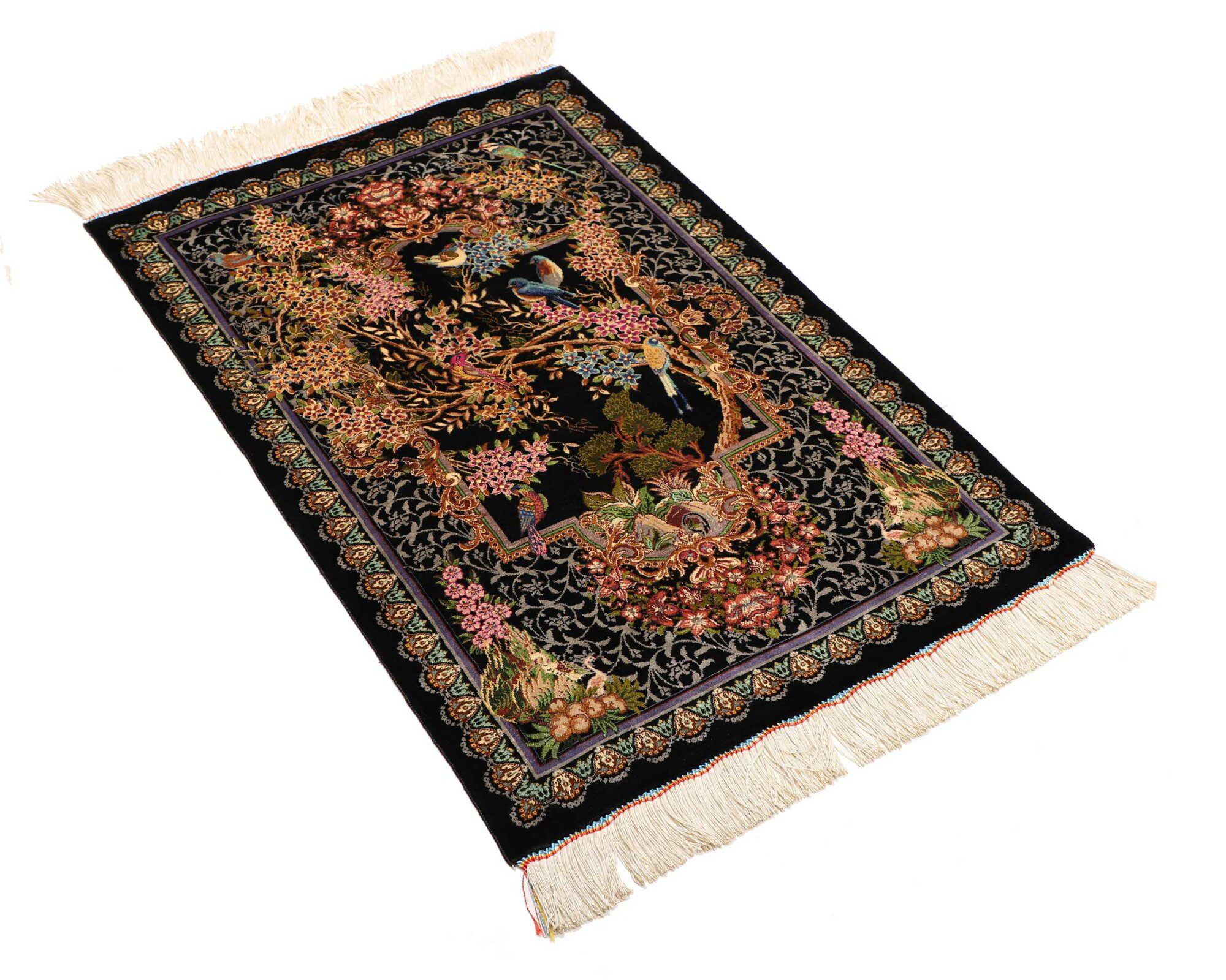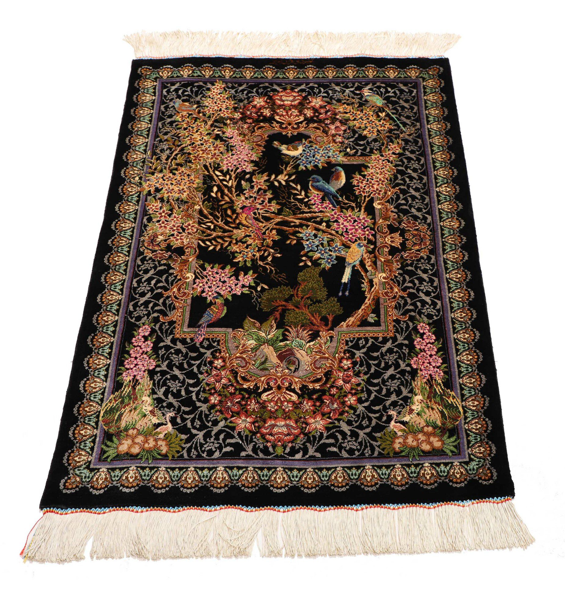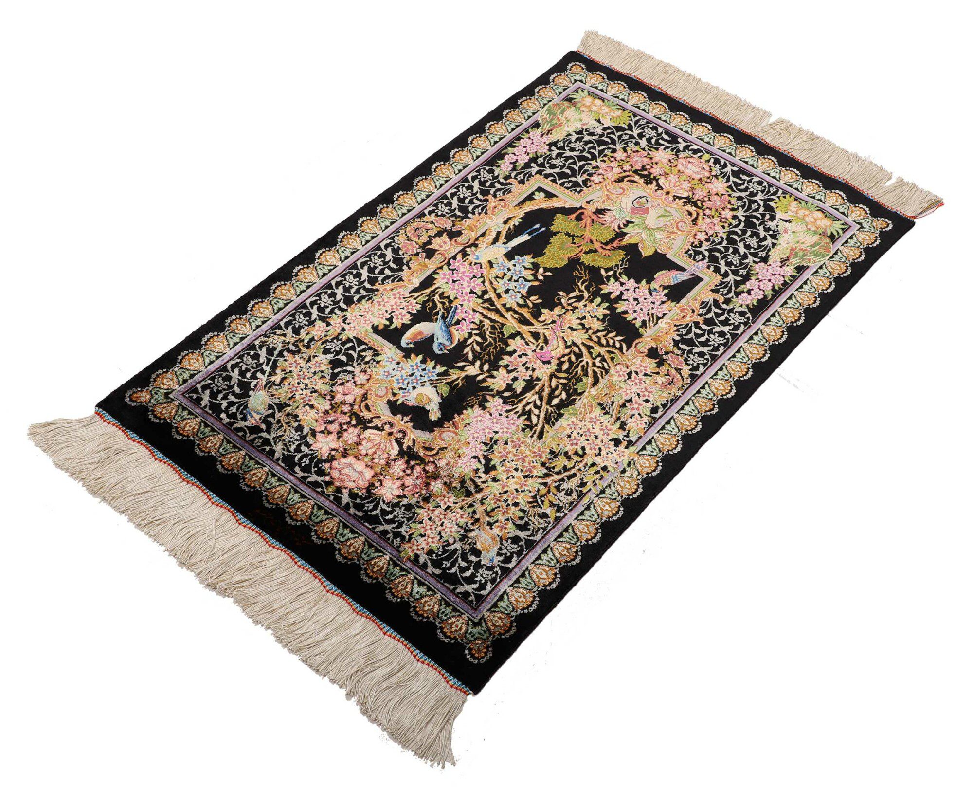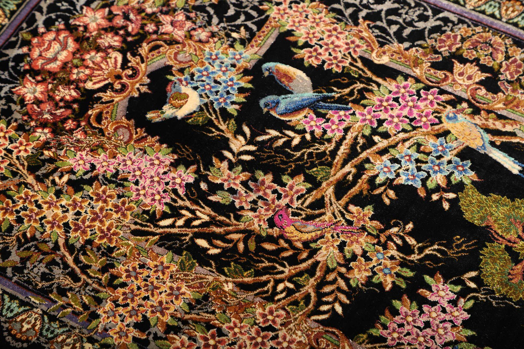 Ghom, a city of half a million people, lies south of Teheran, by the road to the Markazi (Central) province. The city’s rug industry was only developed after 1930 but has gained a good reputation. As there is no tradition or precedent to draw on, the weavers get their motifs from different sources, from where they transfer and combine them. Some patterns are completely copied and it is not uncommon to see copies of Joshqan or Sirjan rugs made in Ghom, but they much finer than the originals and made with a silk pile. In addition, several variations of medallions and uniform patterns are made. The pile is either silk with silk warp and weft, or wool, or wool mixed with silk, with a cotton base. The knotting is usually fine. A wide range of colours is used, sometimes in combinations that appear odd to westerners. A powerful pink and green is particularly characteristic of the silk rugs.
