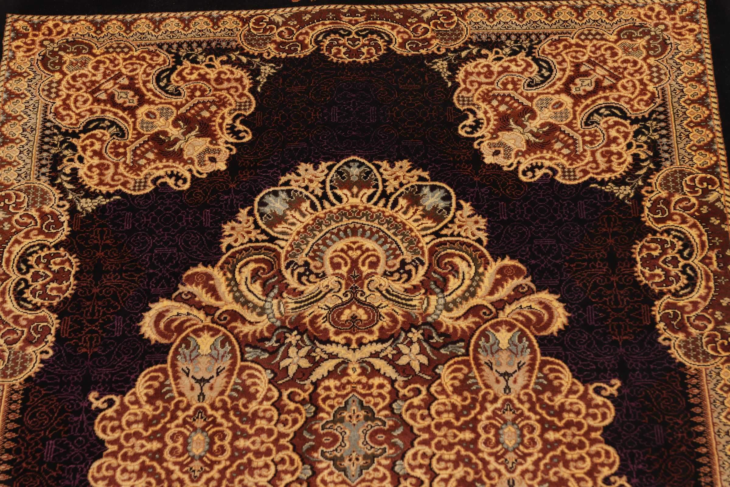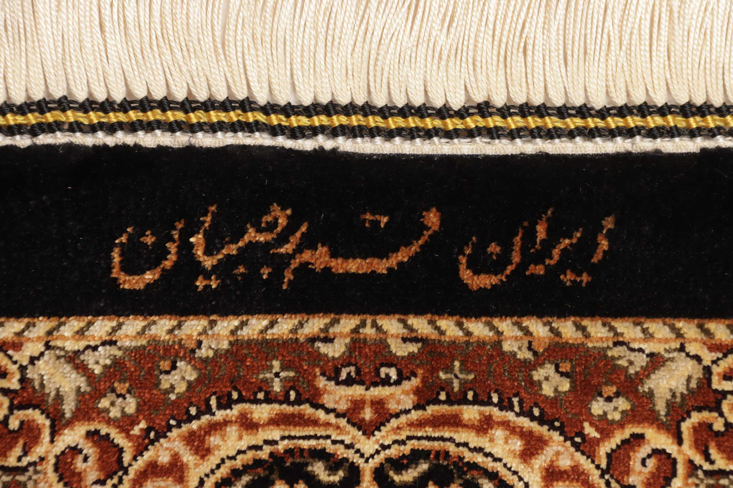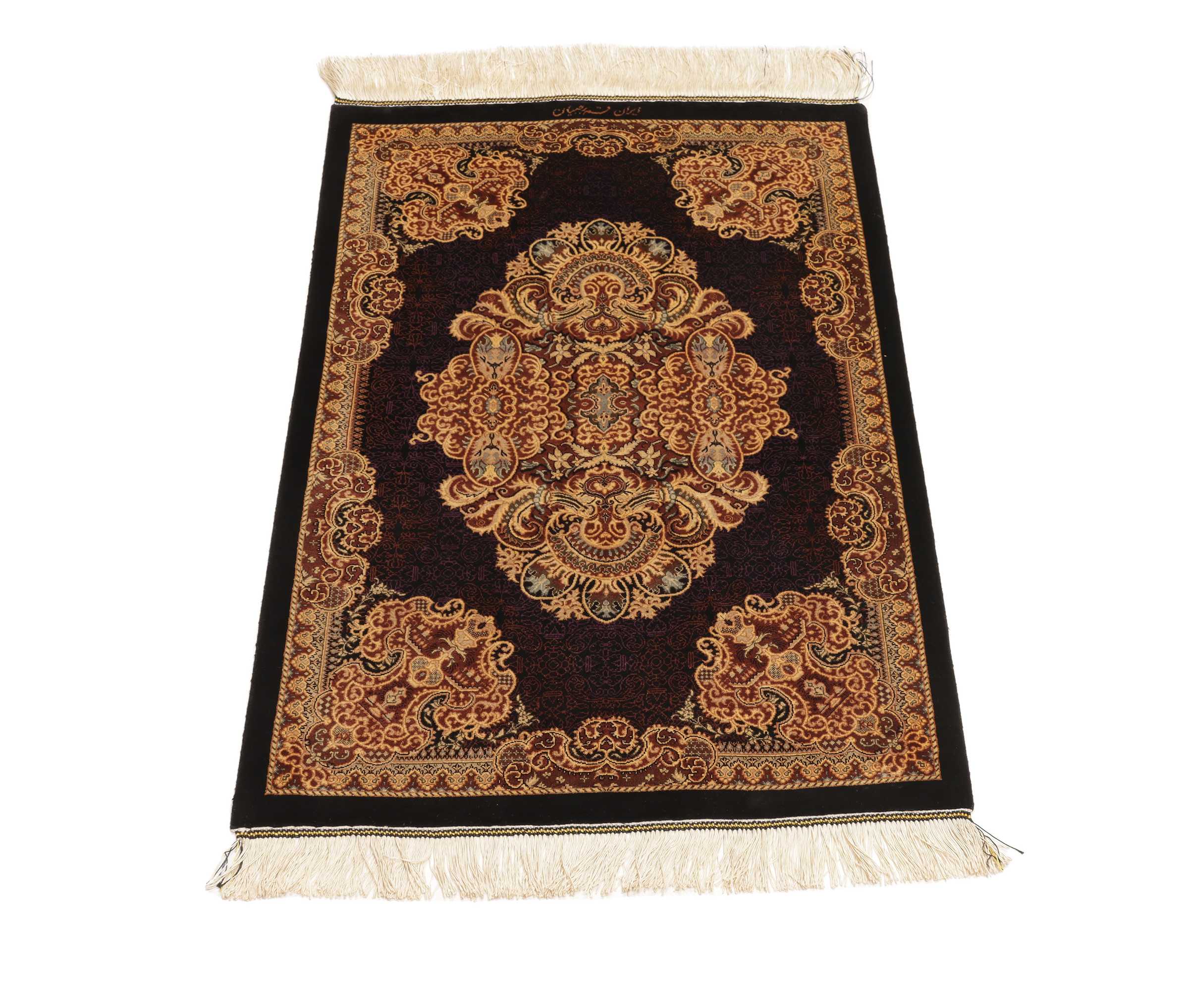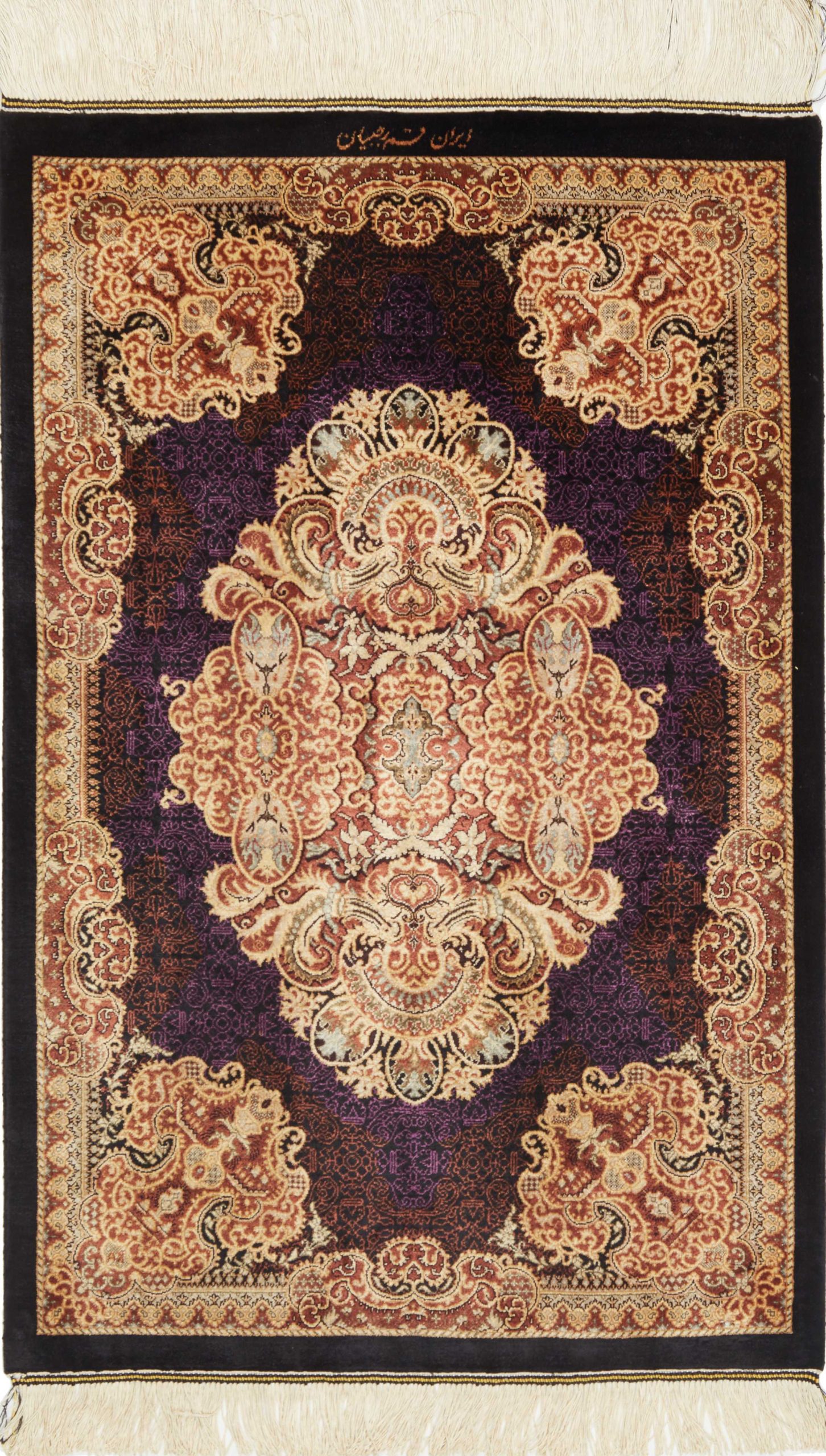 Ghom, a city of half a million people, lies south of Teheran, by the road to the Markazi (Central) province. The city’s rug industry was only developed after 1930 but has gained a good reputation. As there is no tradition or precedent to draw on, the weavers get their motifs from different sources, from where they transfer and combine them. Some patterns are completely copied and it is not uncommon to see copies of Joshqan or Sirjan rugs made in Ghom, but they much finer than the originals and made with a silk pile. In addition, several variations of medallions and uniform patterns are made. The pile is either silk with silk warp and weft, or wool, or wool mixed with silk, with a cotton base. The knotting is usually fine. A wide range of colours is used, sometimes in combinations that appear odd to westerners. A powerful pink and green is particularly characteristic of the silk rugs.