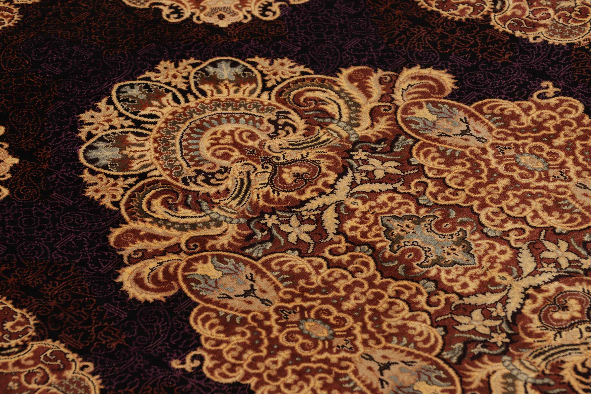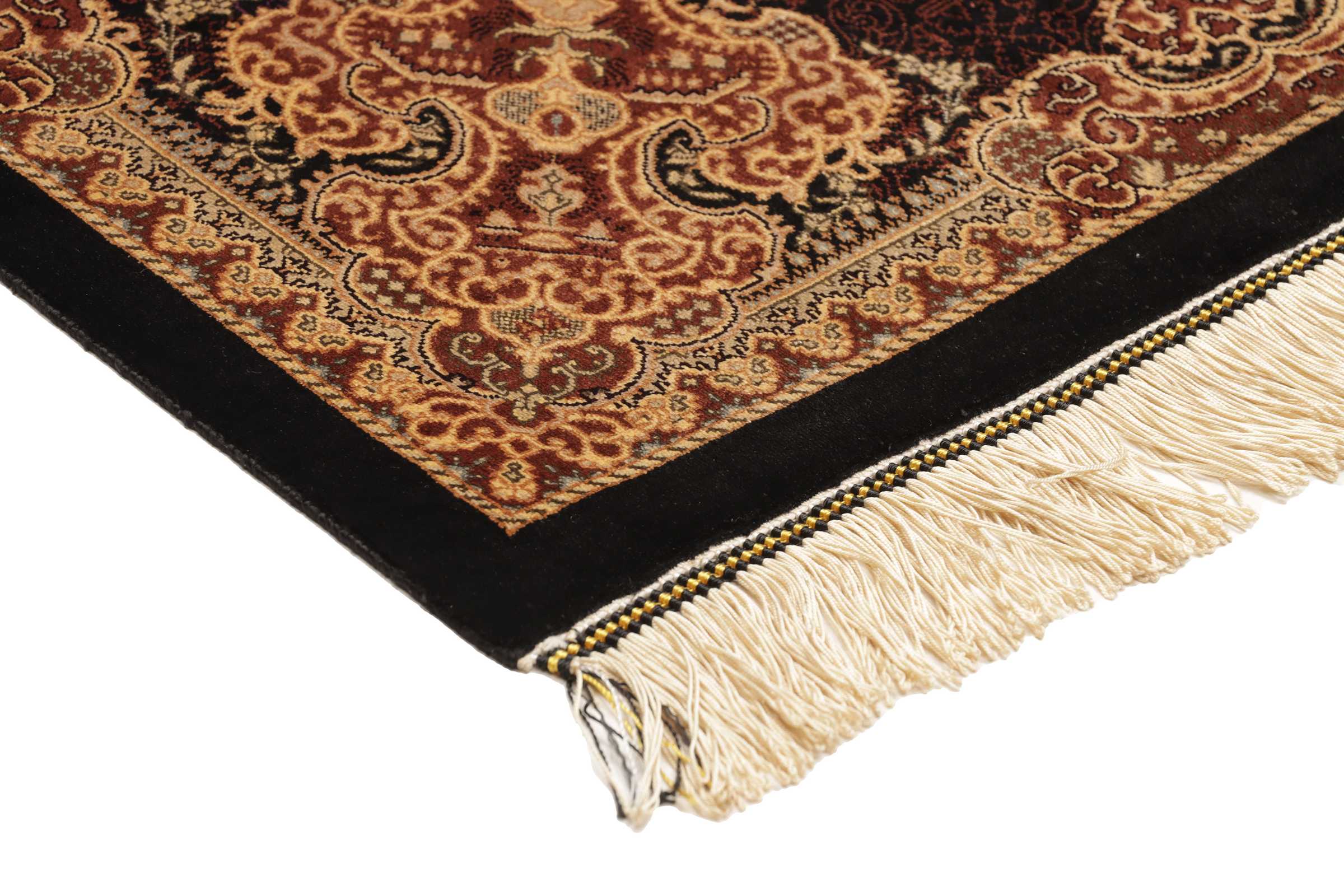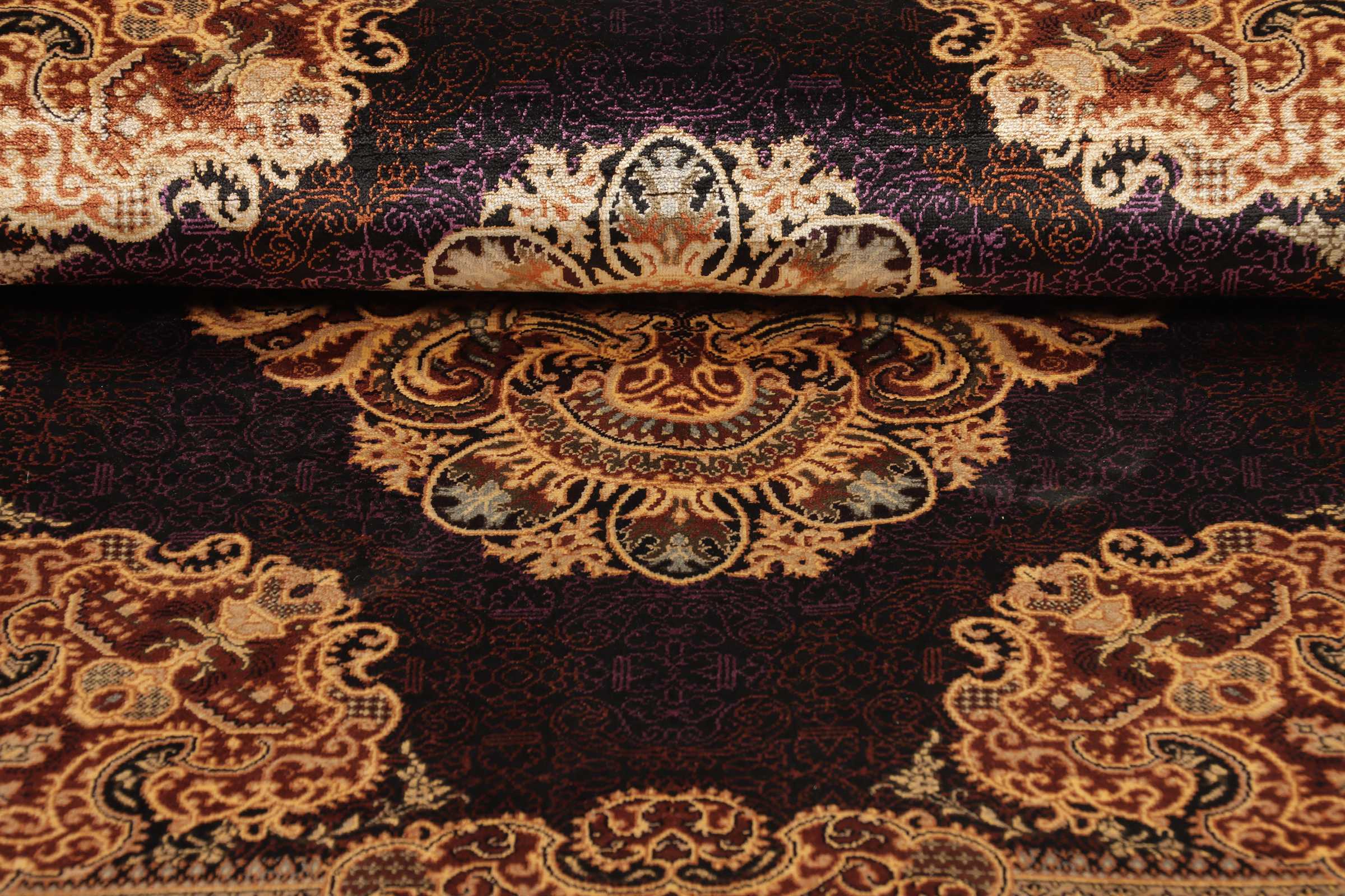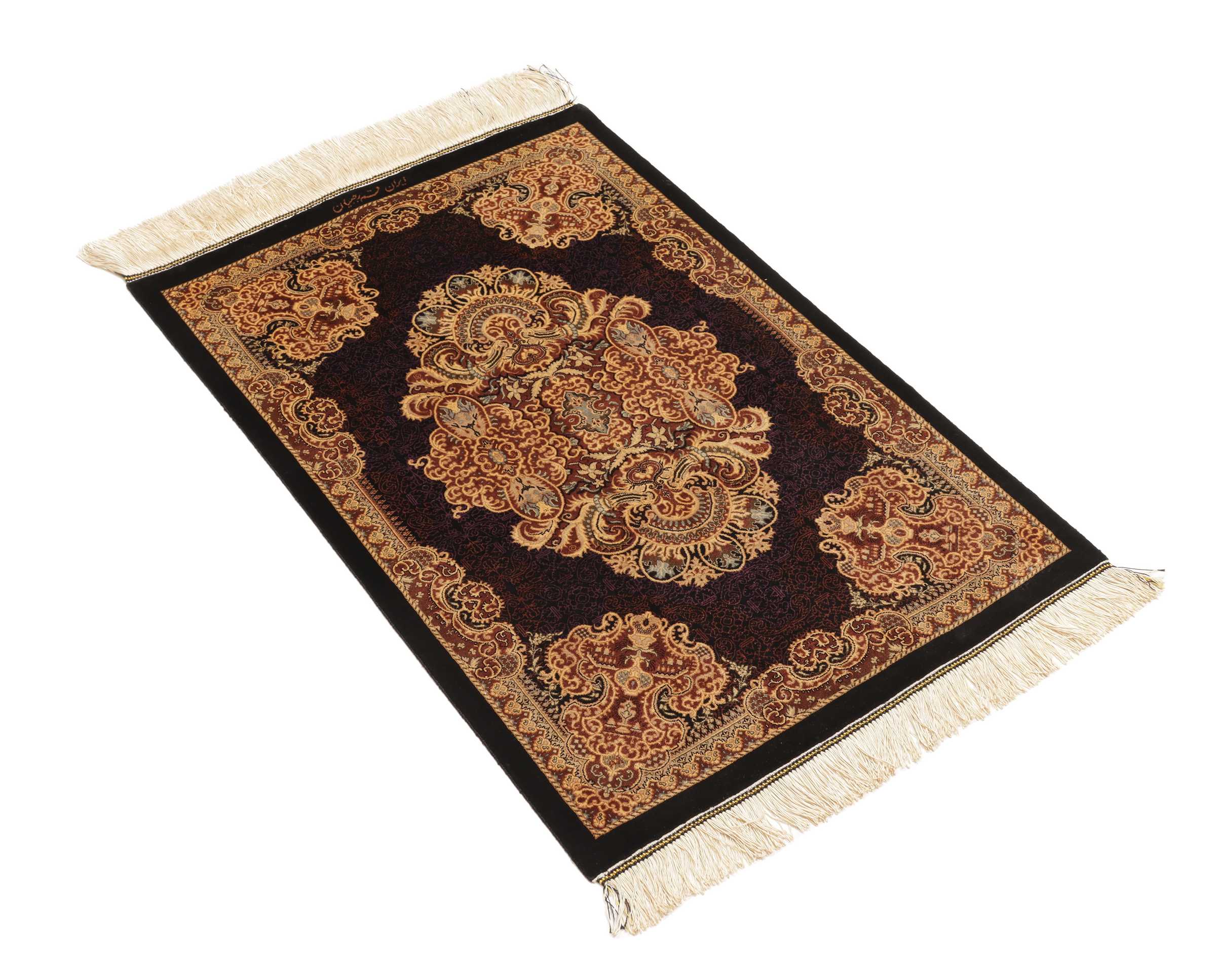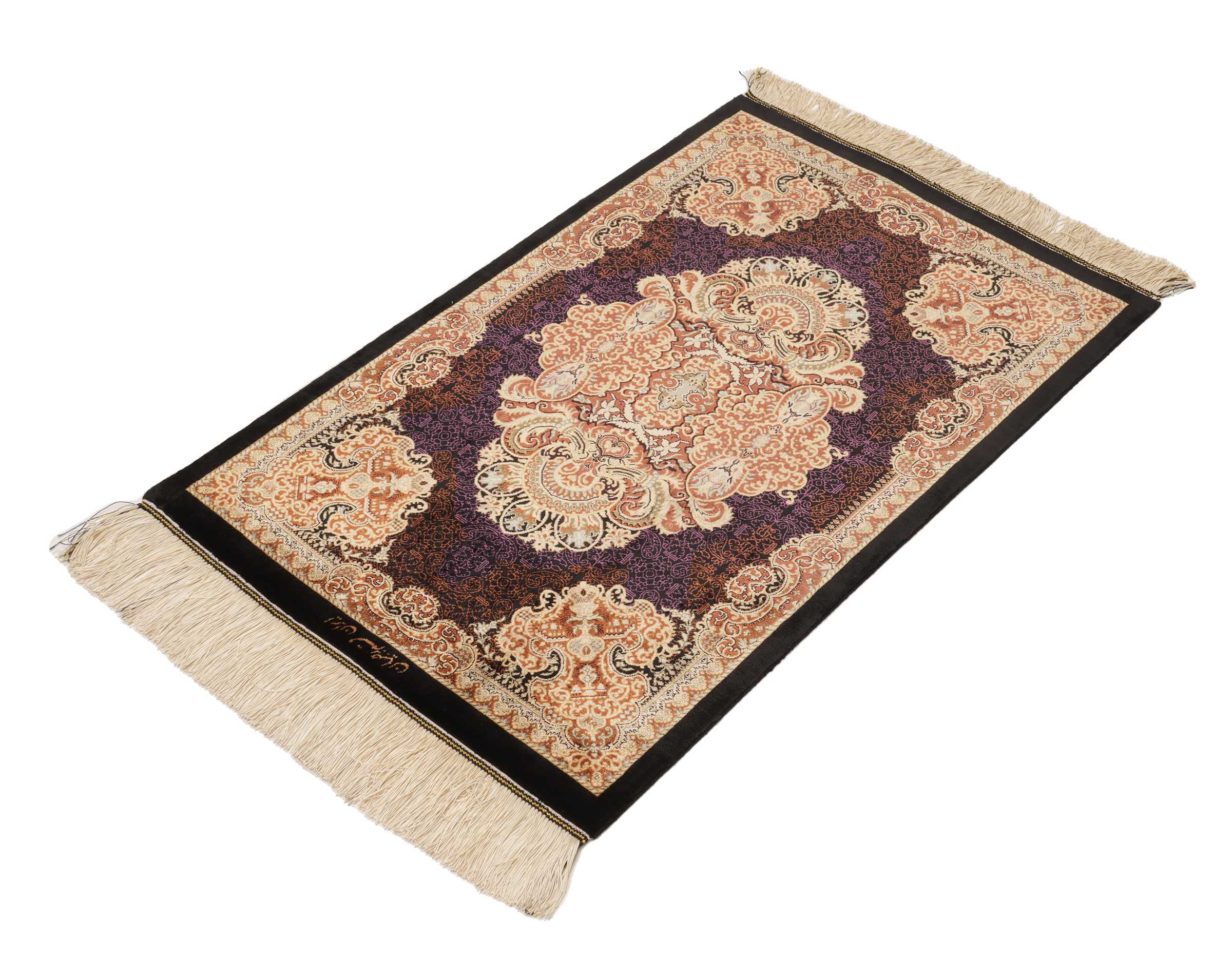 Ghom, a city of half a million people, lies south of Teheran, by the road to the Markazi (Central) province. The city’s rug industry was only developed after 1930 but has gained a good reputation. As there is no tradition or precedent to draw on, the weavers get their motifs from different sources, from where they transfer and combine them. Some patterns are completely copied and it is not uncommon to see copies of Joshqan or Sirjan rugs made in Ghom, but they much finer than the originals and made with a silk pile. In addition, several variations of medallions and uniform patterns are made. The pile is either silk with silk warp and weft, or wool, or wool mixed with silk, with a cotton base. The knotting is usually fine. A wide range of colours is used, sometimes in combinations that appear odd to westerners. A powerful pink and green is particularly characteristic of the silk rugs.