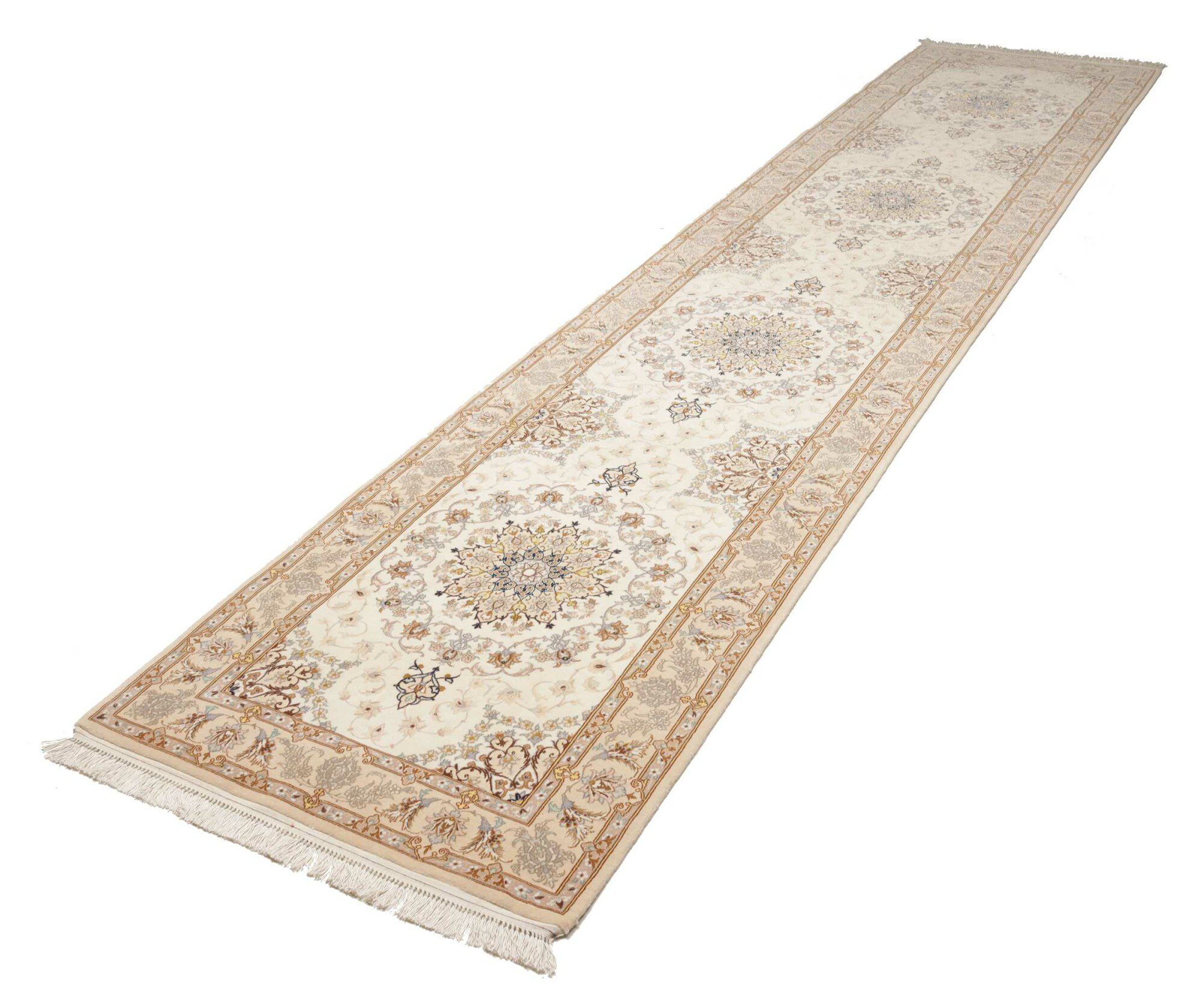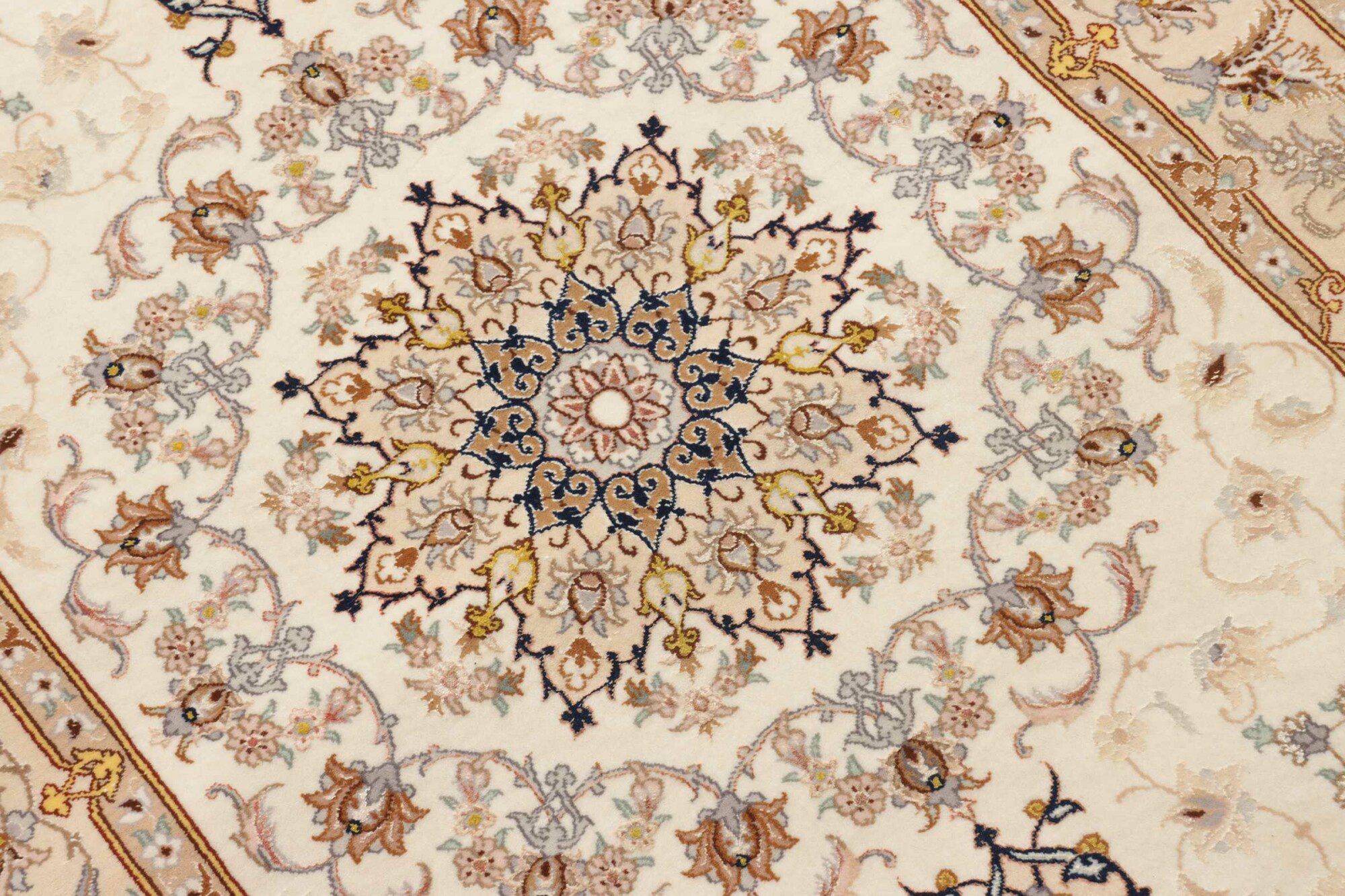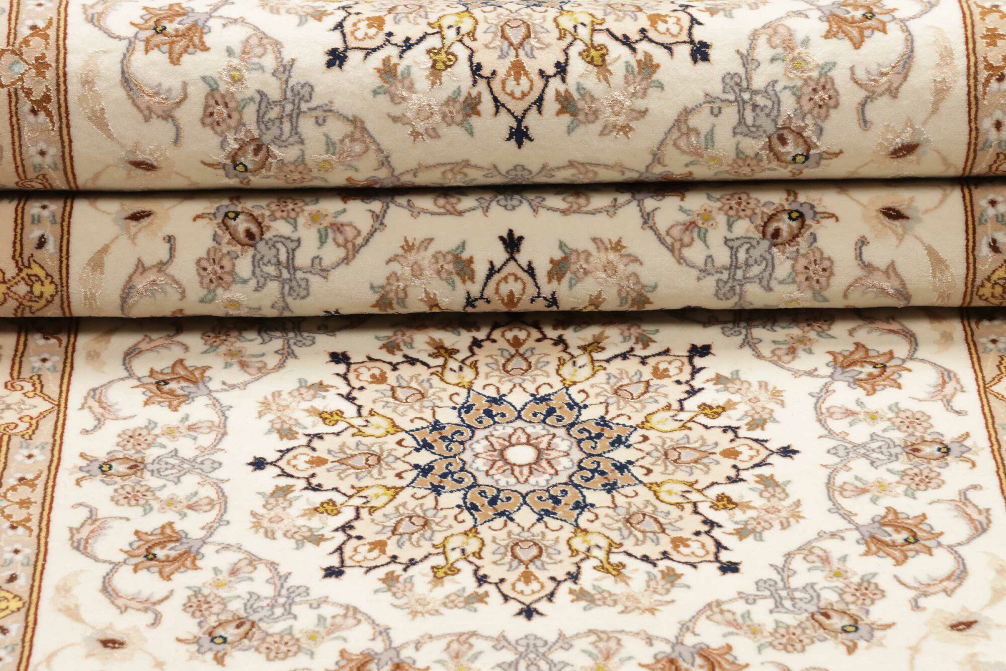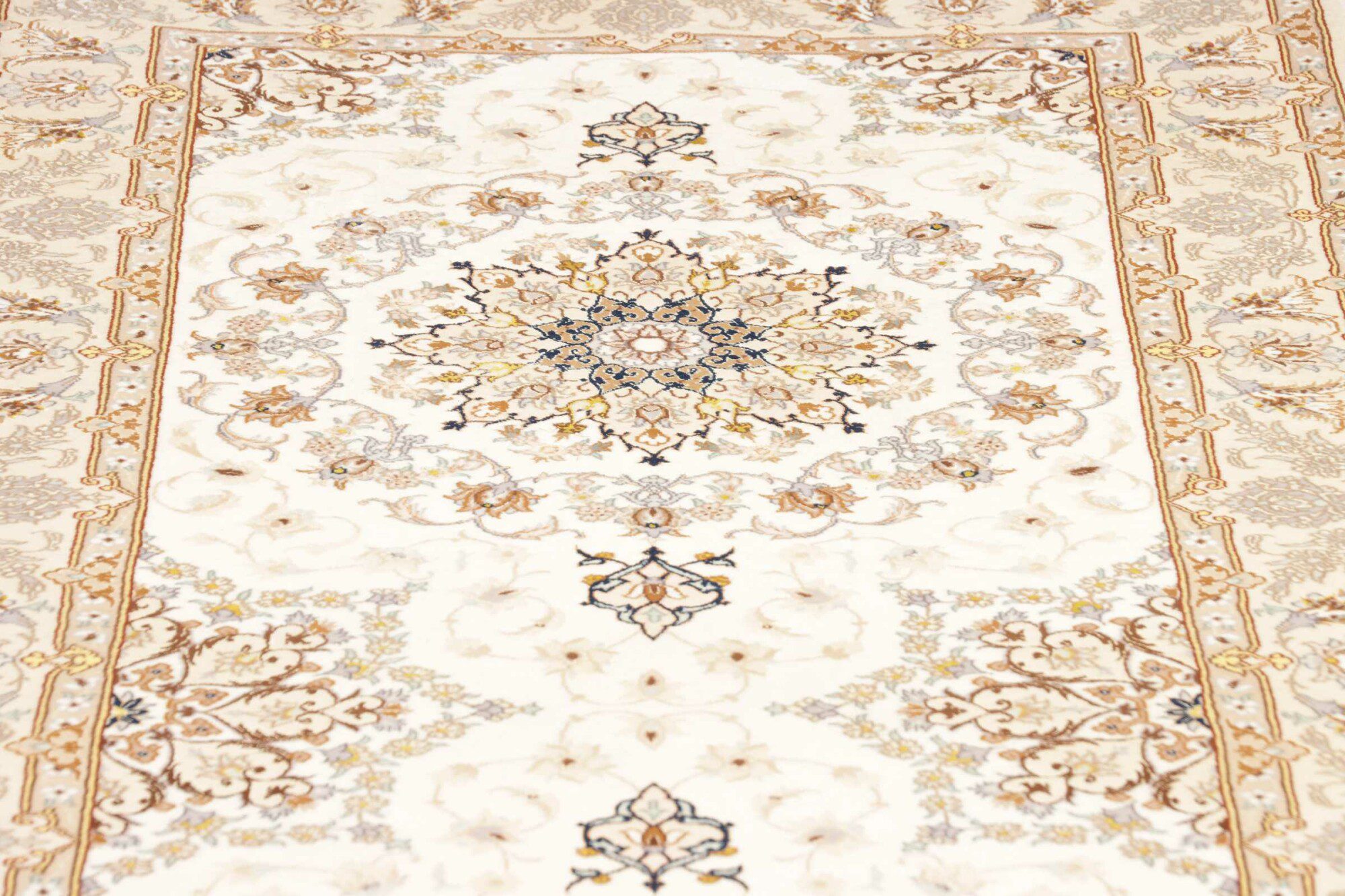 Isfahan carpets are luxurious Persian rugs, renowned for their exquisite craftsmanship and fine detail. Woven in the city of Isfahan, they often feature intricate floral and curvilinear patterns, using high-quality silk or wool. These carpets are prized for their artistic elegance, vibrant colors, and smooth texture.