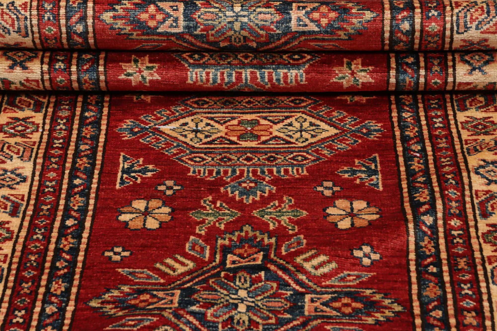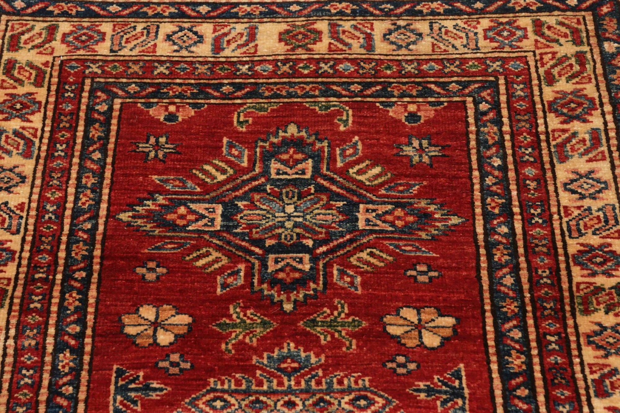 The Kazak rugs are an Armenian type of rug knotted in southern Caucasus, between Tiflis and Erevan. The rugs are handwoven rugs known for their bold, geometric patterns and vibrant colors. Crafted from high-quality wool, they feature traditional motifs and rich designs that bring warmth and character to any space. Ideal for adding a touch of cultural elegance and lasting beauty to any home. The patterns are geometrical and the wool is coloured using natural plant pigments. The rugs are very durable and are stonewashed to get their special, shining look. The Kezak rugs, as well as other Armenian rugs, are traditionally a status symbol, and were originally placed in palaces, churches, and in the homes of the wealthy.