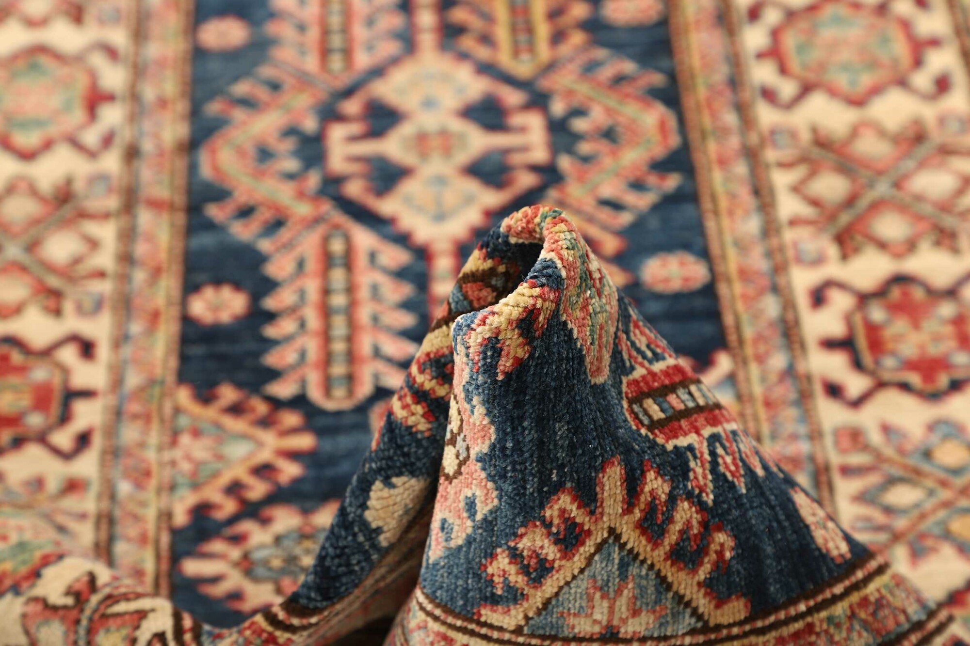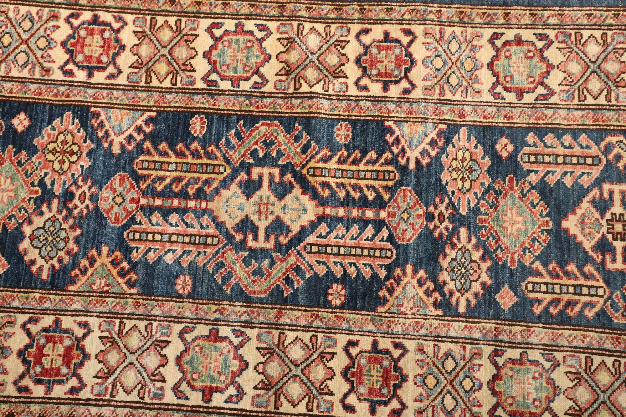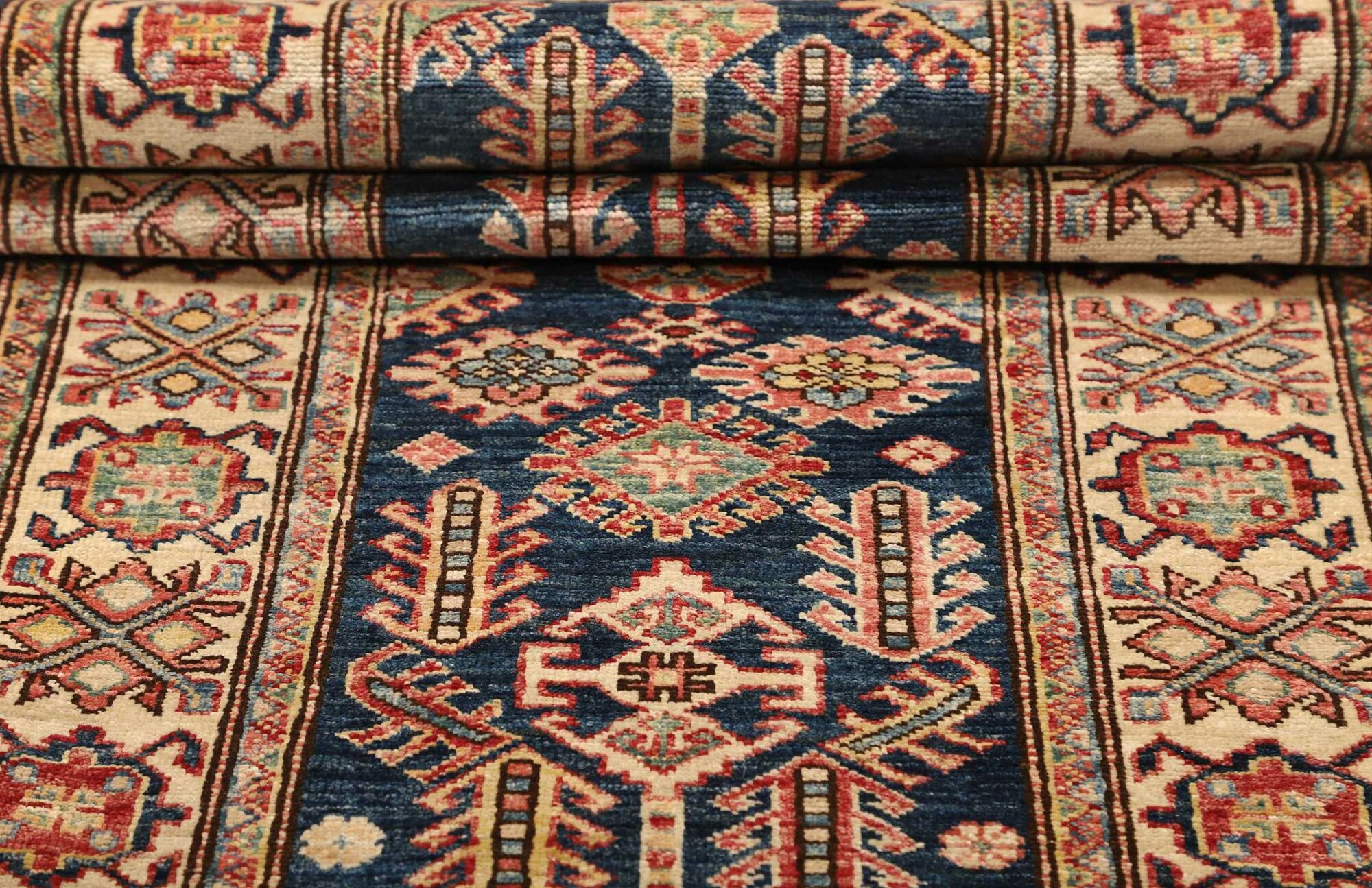 The Kazak rugs are an Armenian type of rug knotted in southern Caucasus, between Tiflis and Erevan. The rugs are handwoven rugs known for their bold, geometric patterns and vibrant colors. Crafted from high-quality wool, they feature traditional motifs and rich designs that bring warmth and character to any space. Ideal for adding a touch of cultural elegance and lasting beauty to any home. The patterns are geometrical and the wool is coloured using natural plant pigments. The rugs are very durable and are stonewashed to get their special, shining look. The Kezak rugs, as well as other Armenian rugs, are traditionally a status symbol, and were originally placed in palaces, churches, and in the homes of the wealthy.