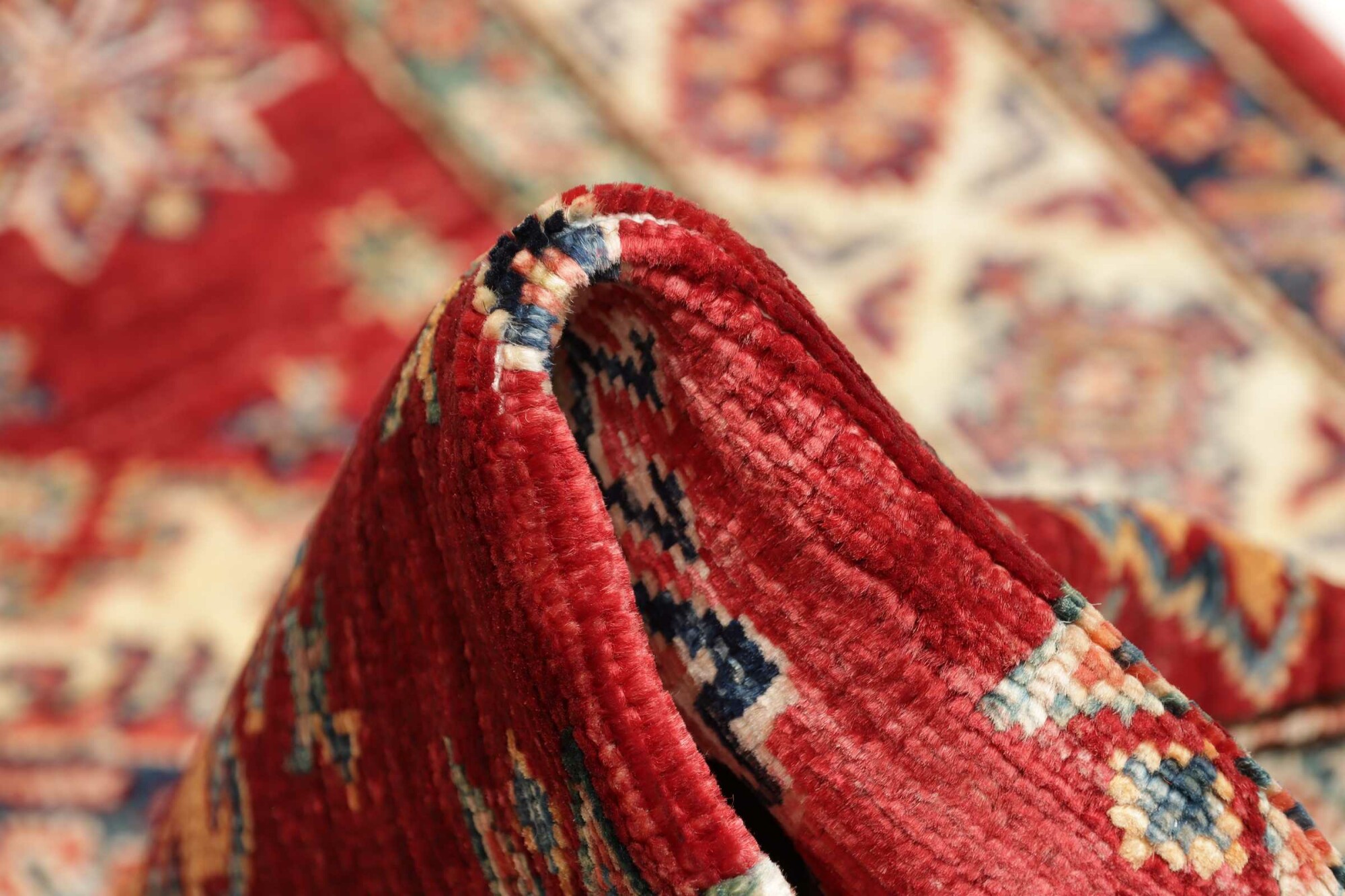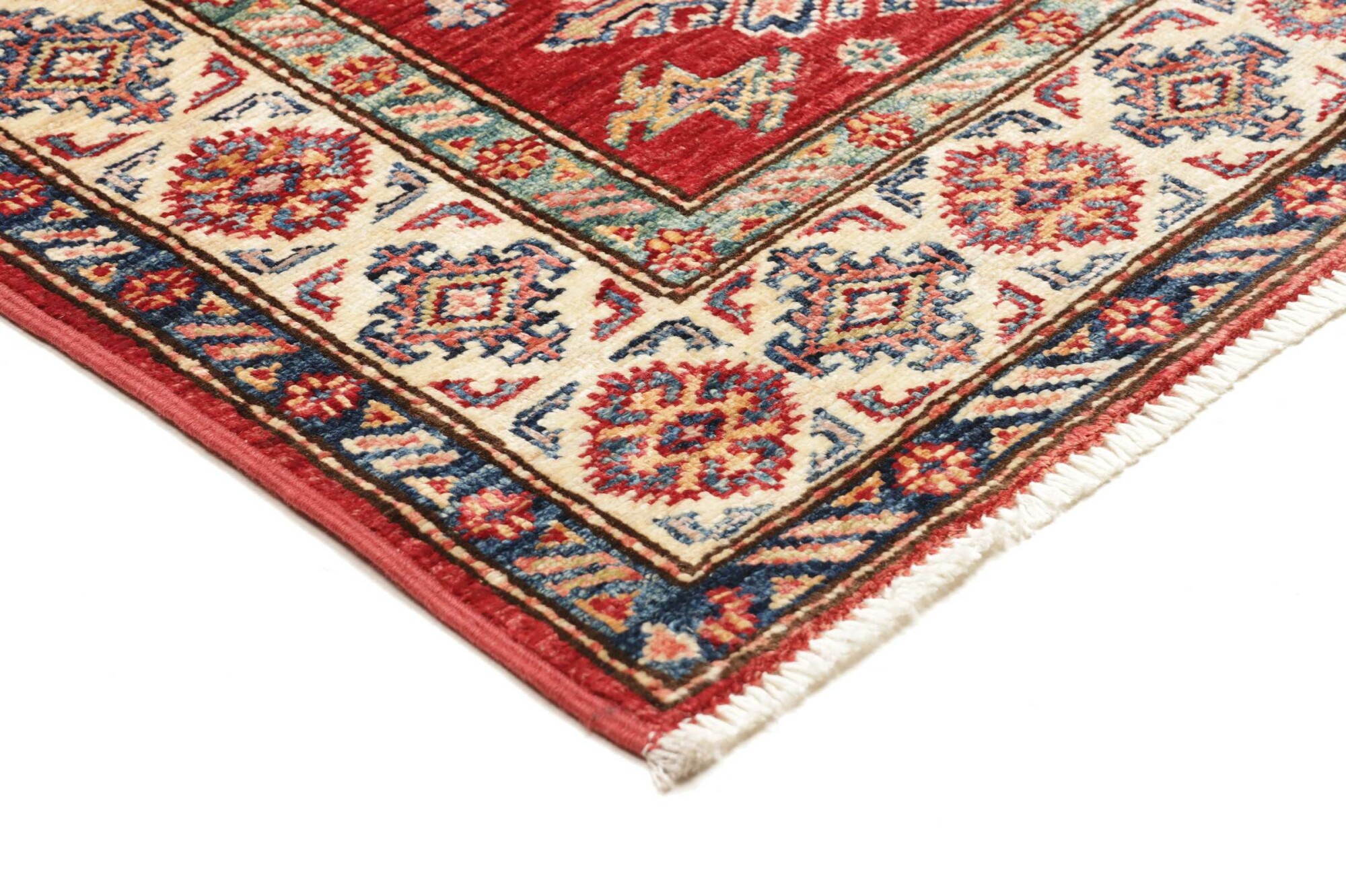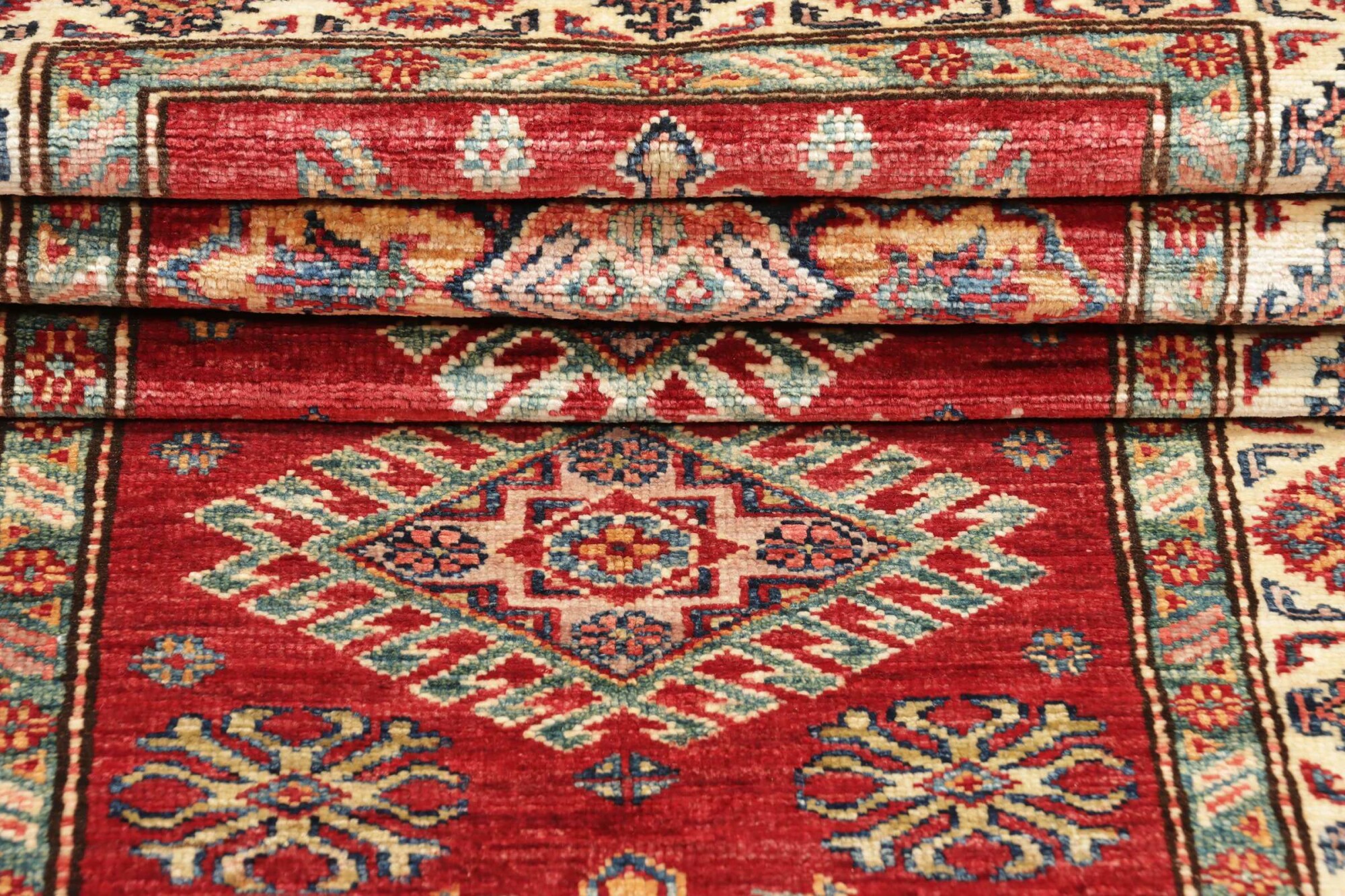 The Kazak rugs are an Armenian type of rug knotted in southern Caucasus, between Tiflis and Erevan. The rugs are handwoven rugs known for their bold, geometric patterns and vibrant colors. Crafted from high-quality wool, they feature traditional motifs and rich designs that bring warmth and character to any space. Ideal for adding a touch of cultural elegance and lasting beauty to any home. The patterns are geometrical and the wool is coloured using natural plant pigments. The rugs are very durable and are stonewashed to get their special, shining look. The Kezak rugs, as well as other Armenian rugs, are traditionally a status symbol, and were originally placed in palaces, churches, and in the homes of the wealthy.