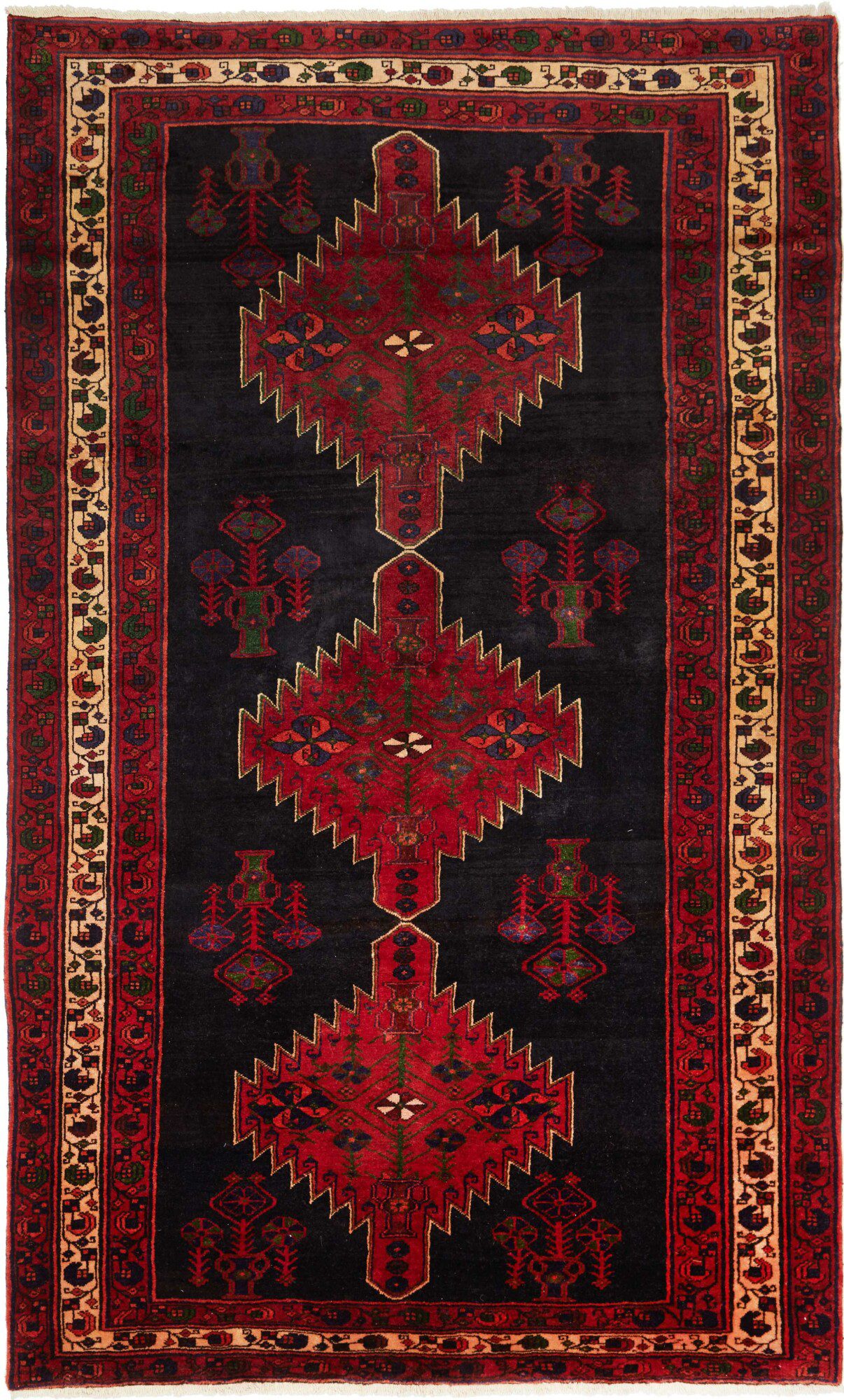 Lori carpets are traditional handwoven rugs from the Lori region of Iran. Known for their bold, geometric patterns and vibrant colors, they often feature tribal motifs. Made from high-quality wool, these carpets are durable and valued for their rustic charm, reflecting the culture and craftsmanship of the Lori people.