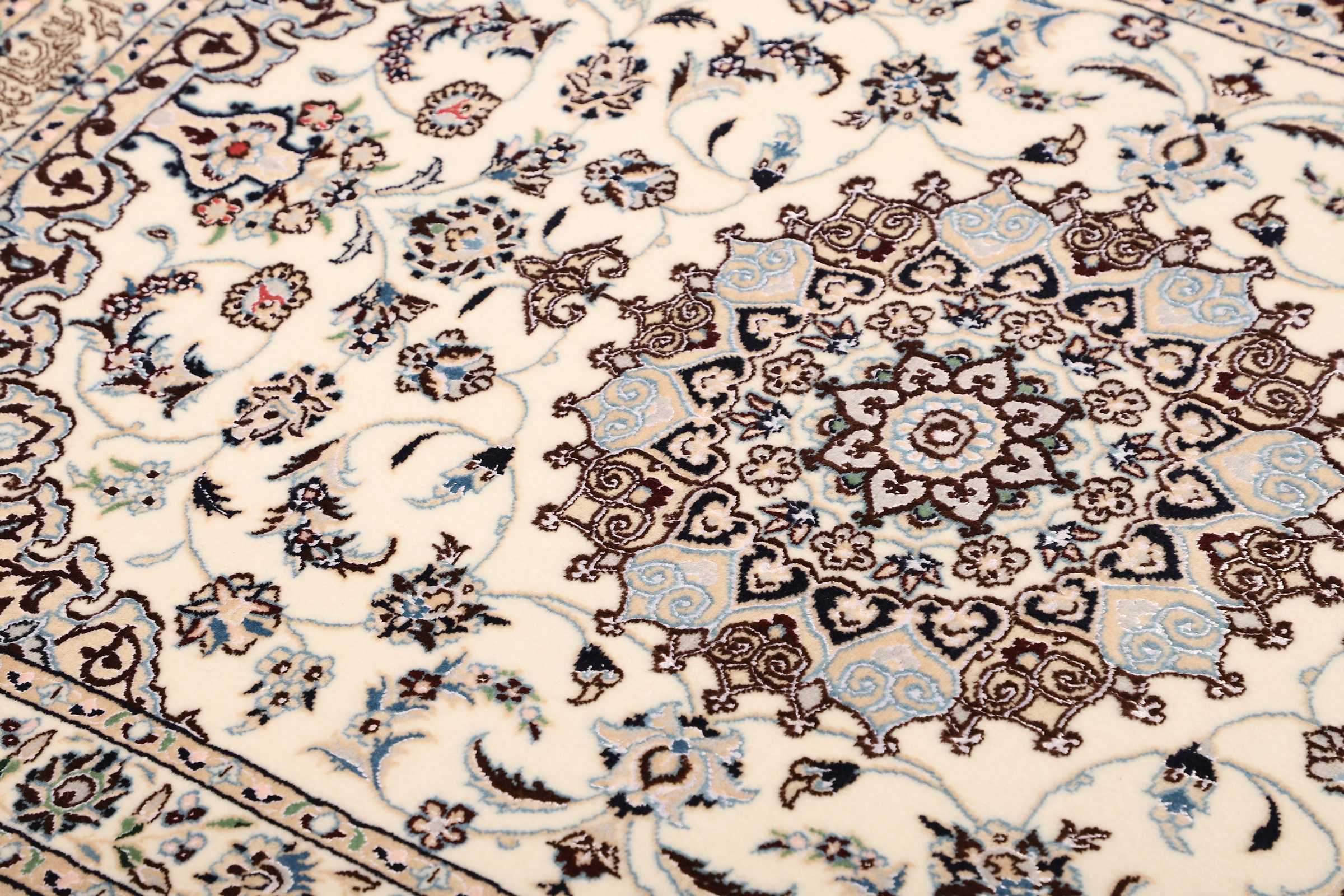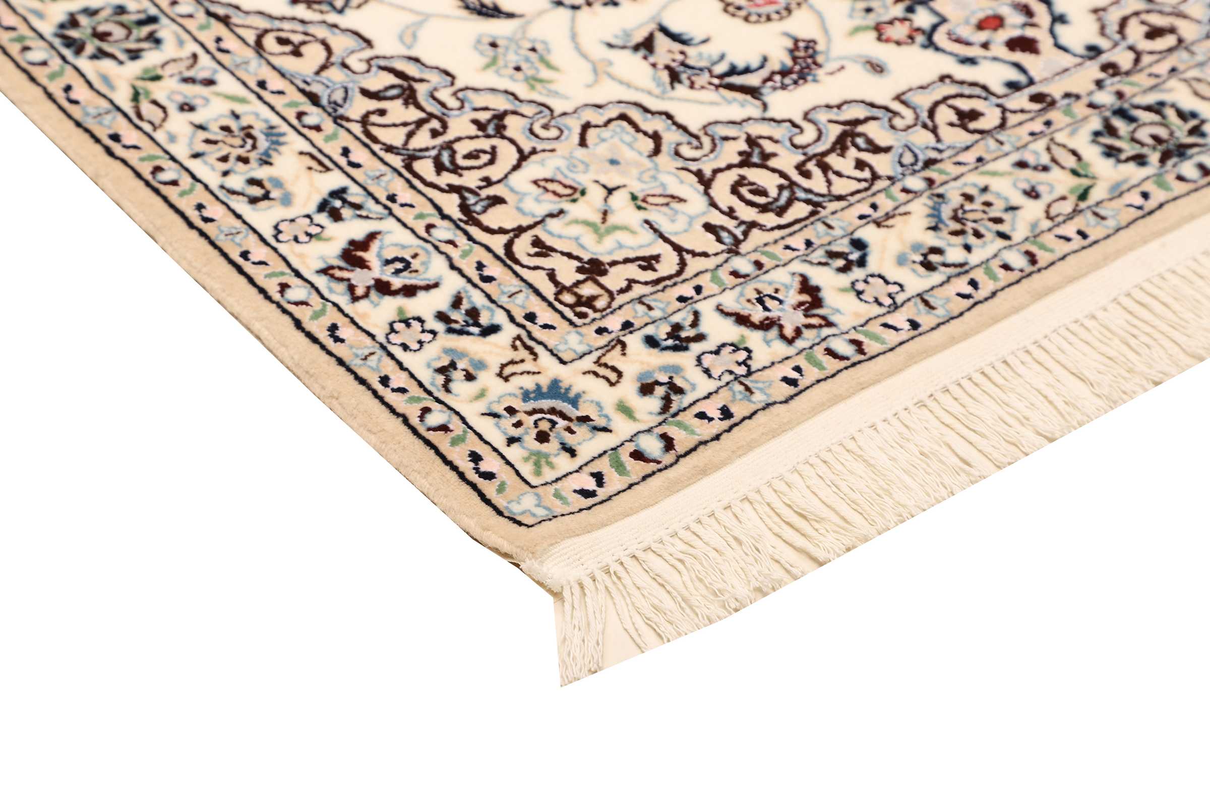 Nain carpets are high-quality Persian rugs woven in the Nain region of Iran. Known for their intricate designs, these carpets feature fine details, often incorporating floral and medallion patterns. Made from premium wool or silk, Nain carpets are prized for their elegance, durability, and smooth texture.