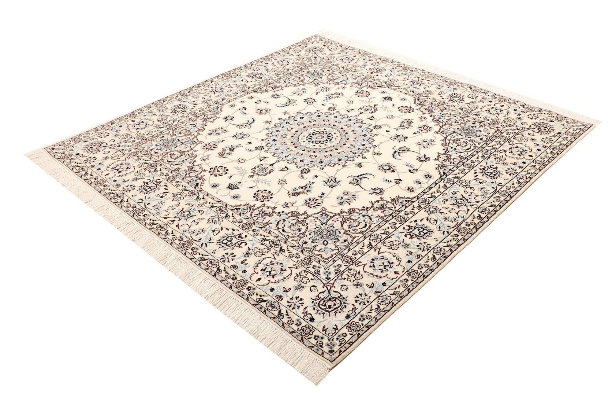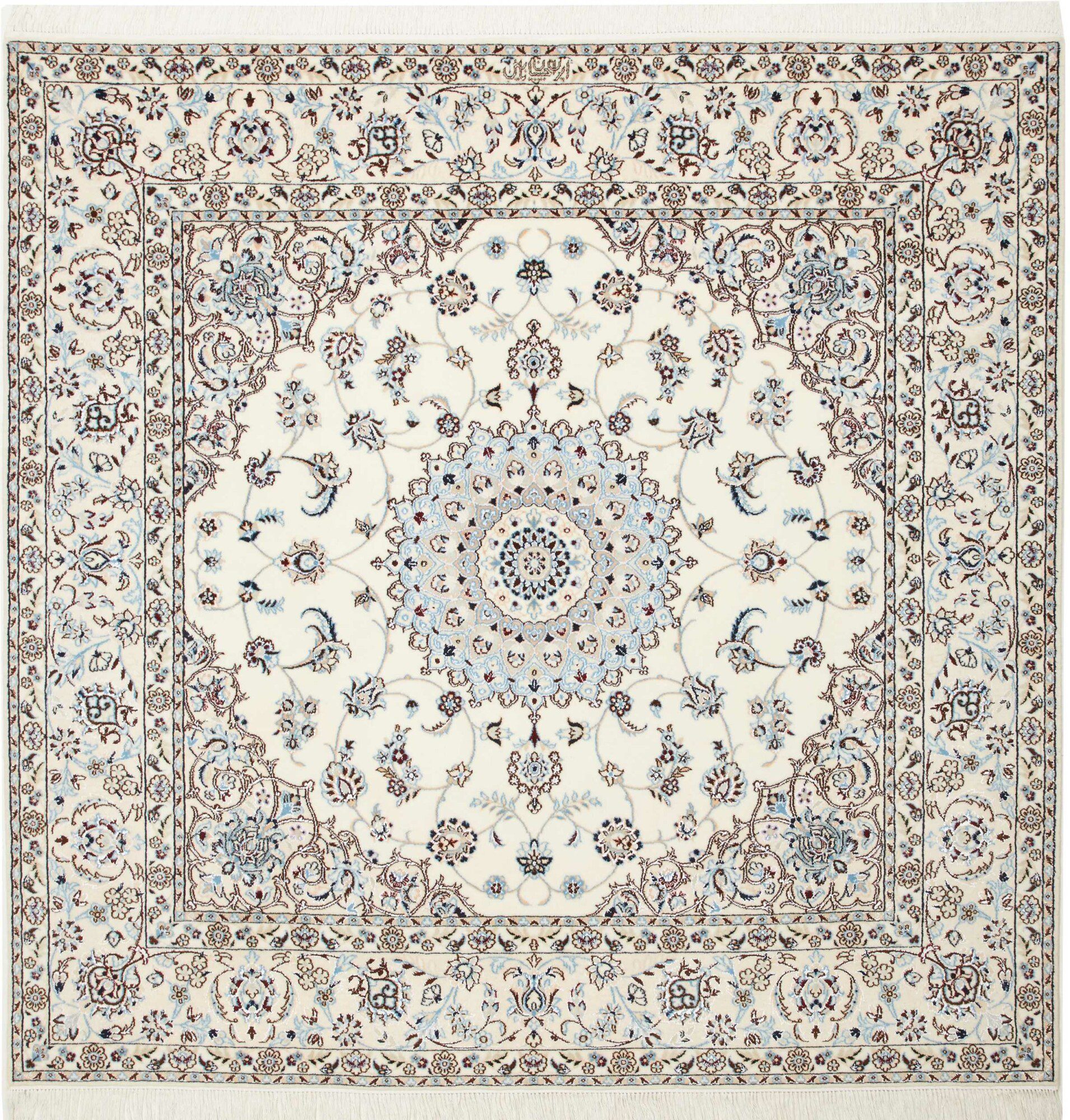 Nain carpets are high-quality Persian rugs woven in the Nain region of Iran. Known for their intricate designs, these carpets feature fine details, often incorporating floral and medallion patterns. Made from premium wool or silk, Nain carpets are prized for their elegance, durability, and smooth texture.
