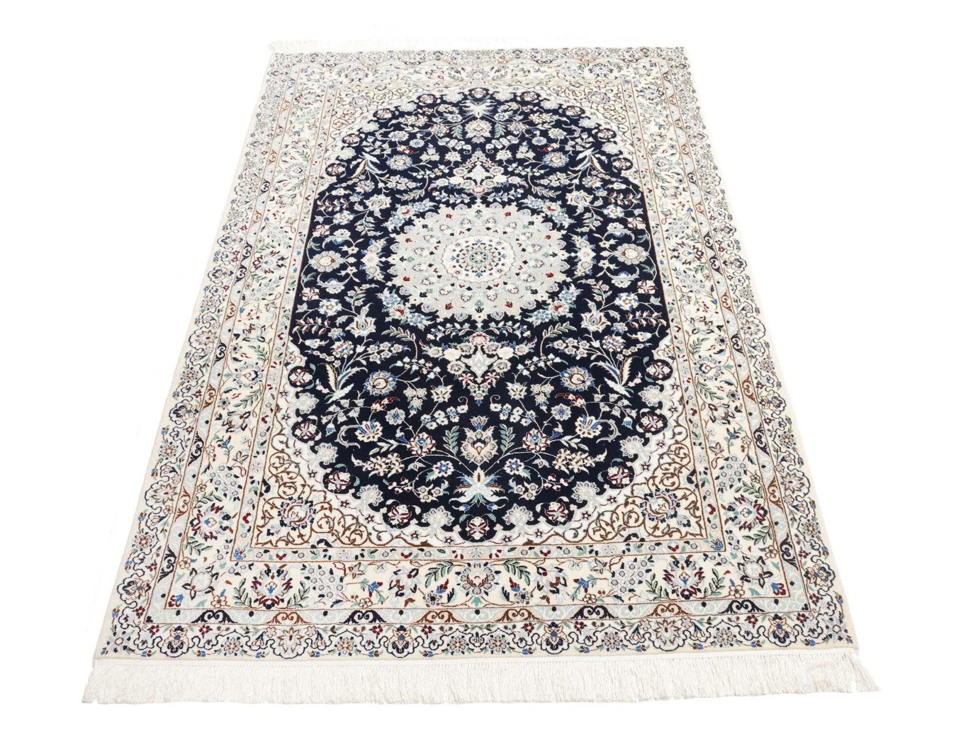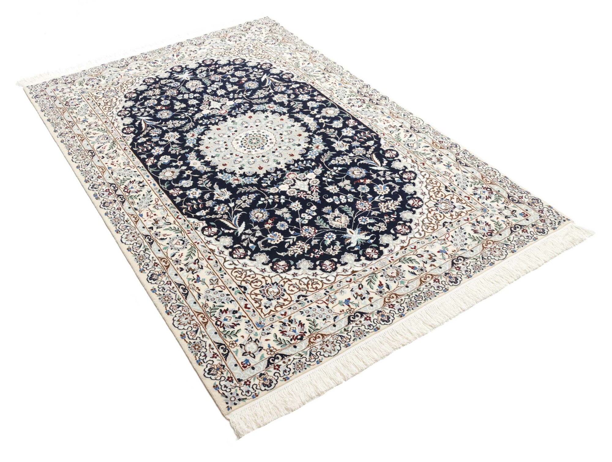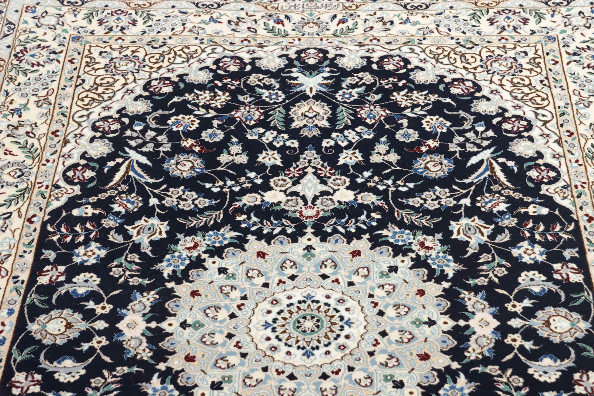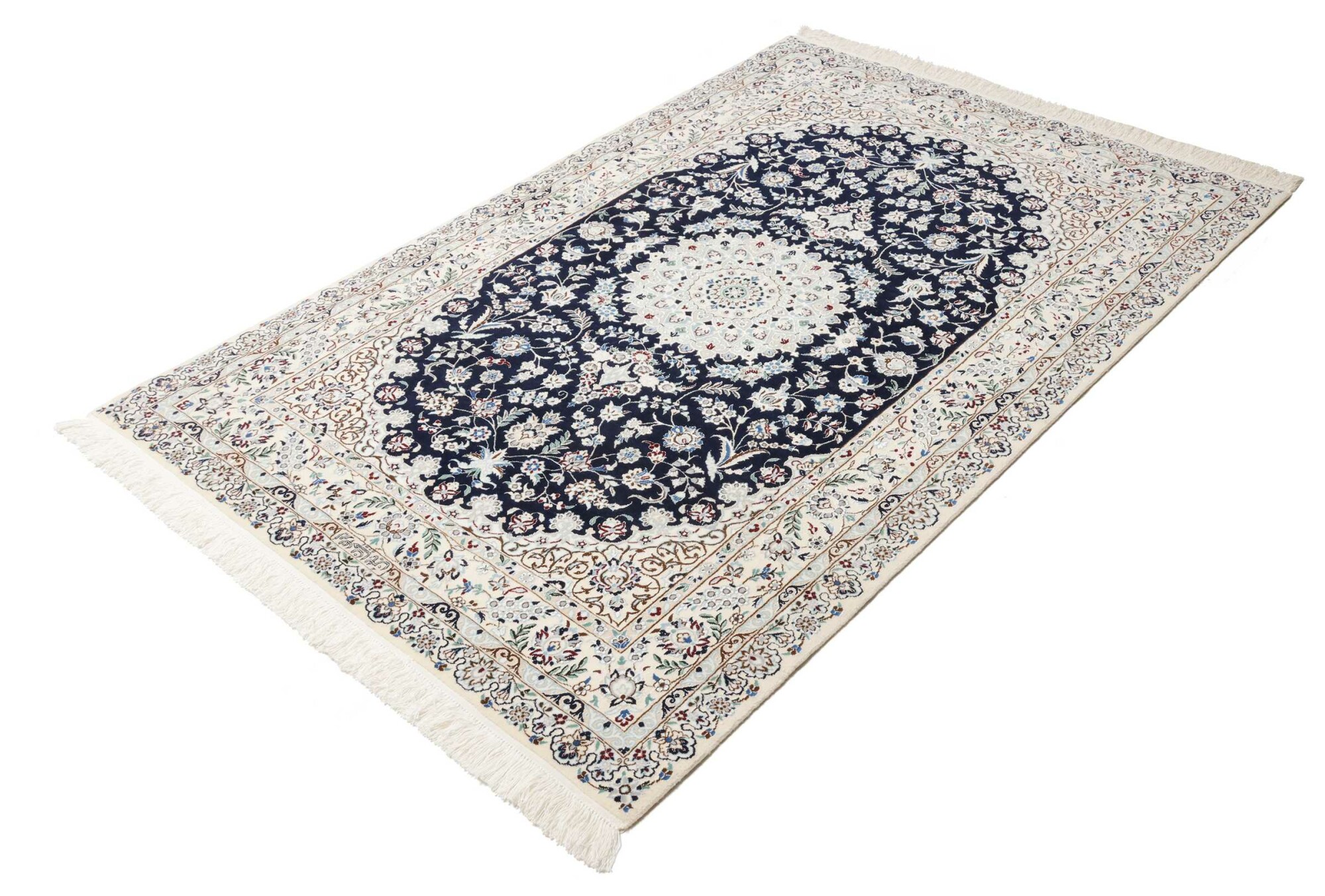 Nain carpets are high-quality Persian rugs woven in the Nain region of Iran. Known for their intricate designs, these carpets feature fine details, often incorporating floral and medallion patterns. Made from premium wool or silk, Nain carpets are prized for their elegance, durability, and smooth texture.