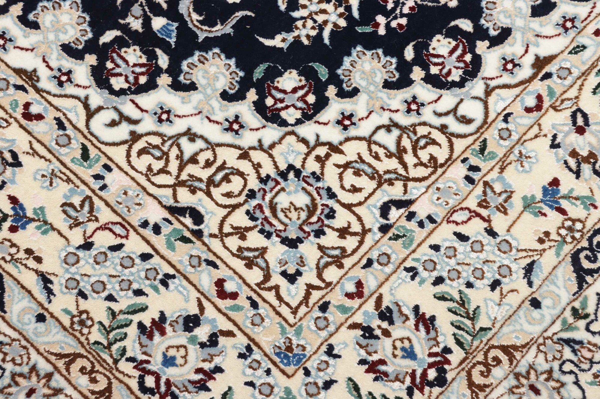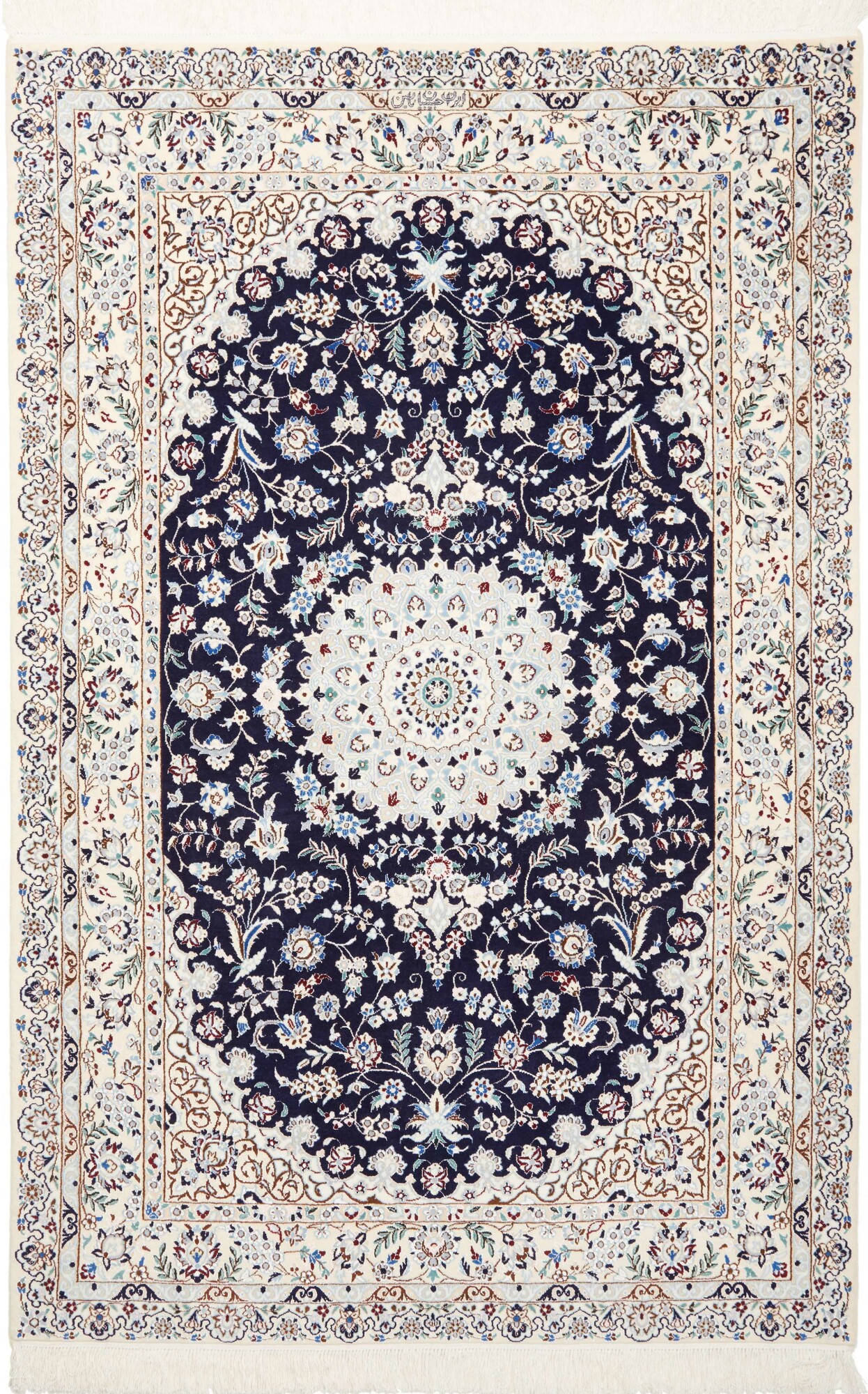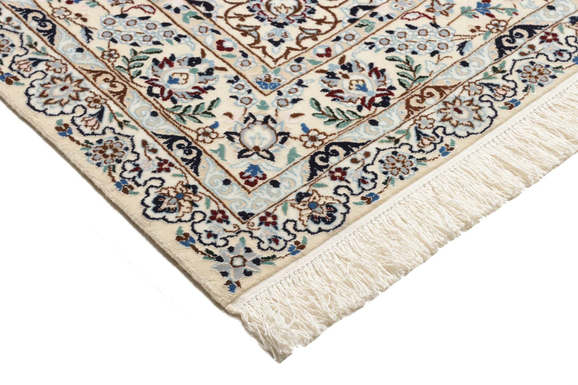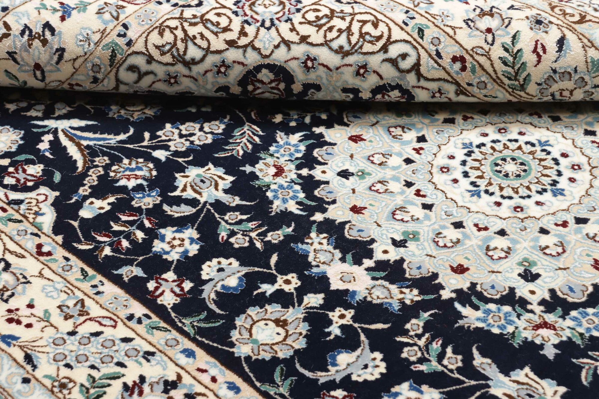 Nain carpets are high-quality Persian rugs woven in the Nain region of Iran. Known for their intricate designs, these carpets feature fine details, often incorporating floral and medallion patterns. Made from premium wool or silk, Nain carpets are prized for their elegance, durability, and smooth texture.
