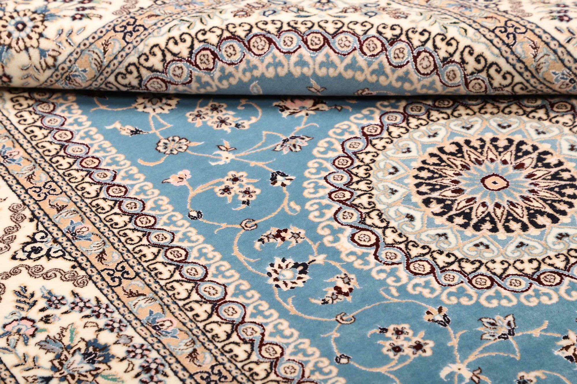 Nain carpets are high-quality Persian rugs woven in the Nain region of Iran. Known for their intricate designs, these carpets feature fine details, often incorporating floral and medallion patterns. Made from premium wool or silk, Nain carpets are prized for their elegance, durability, and smooth texture.