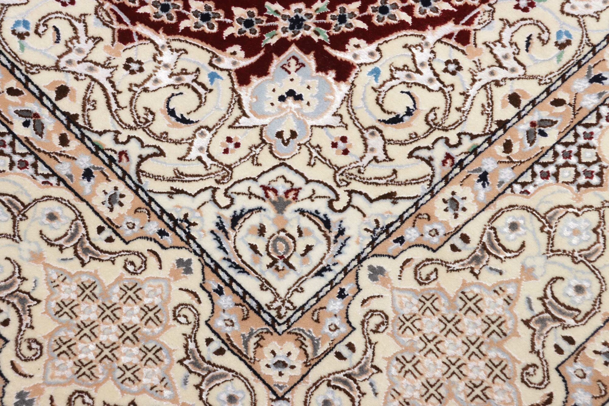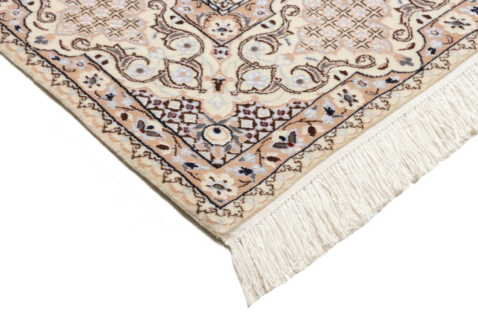 Nain carpets are high-quality Persian rugs woven in the Nain region of Iran. Known for their intricate designs, these carpets feature fine details, often incorporating floral and medallion patterns. Made from premium wool or silk, Nain carpets are prized for their elegance, durability, and smooth texture.