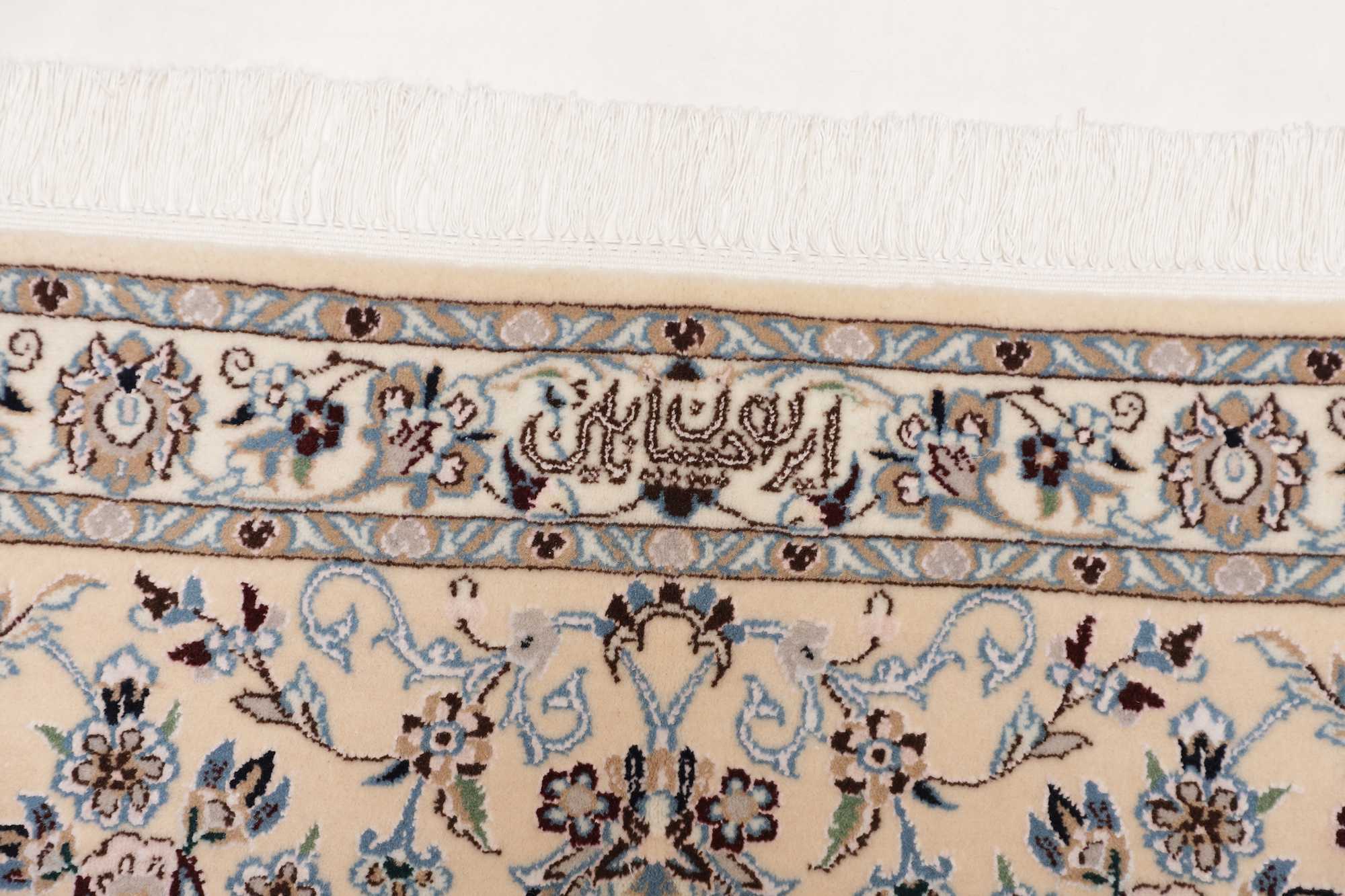 Nain carpets are high-quality Persian rugs woven in the Nain region of Iran. Known for their intricate designs, these carpets feature fine details, often incorporating floral and medallion patterns. Made from premium wool or silk, Nain carpets are prized for their elegance, durability, and smooth texture.