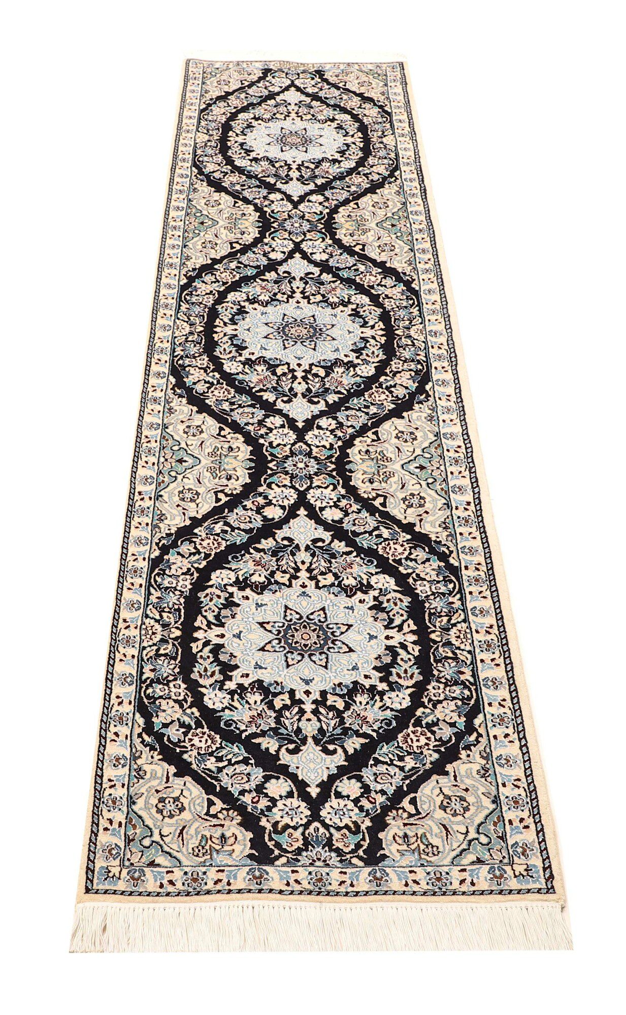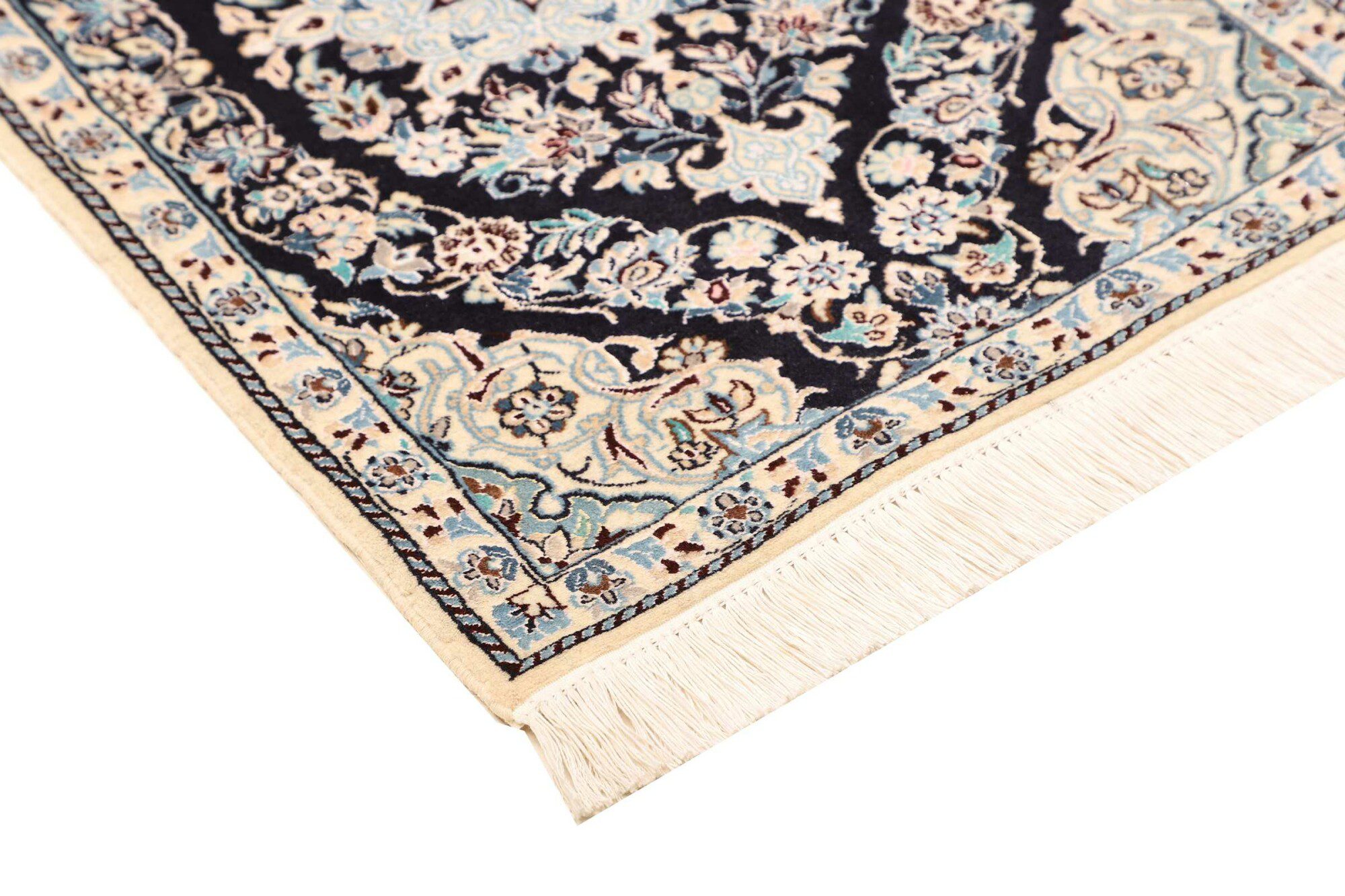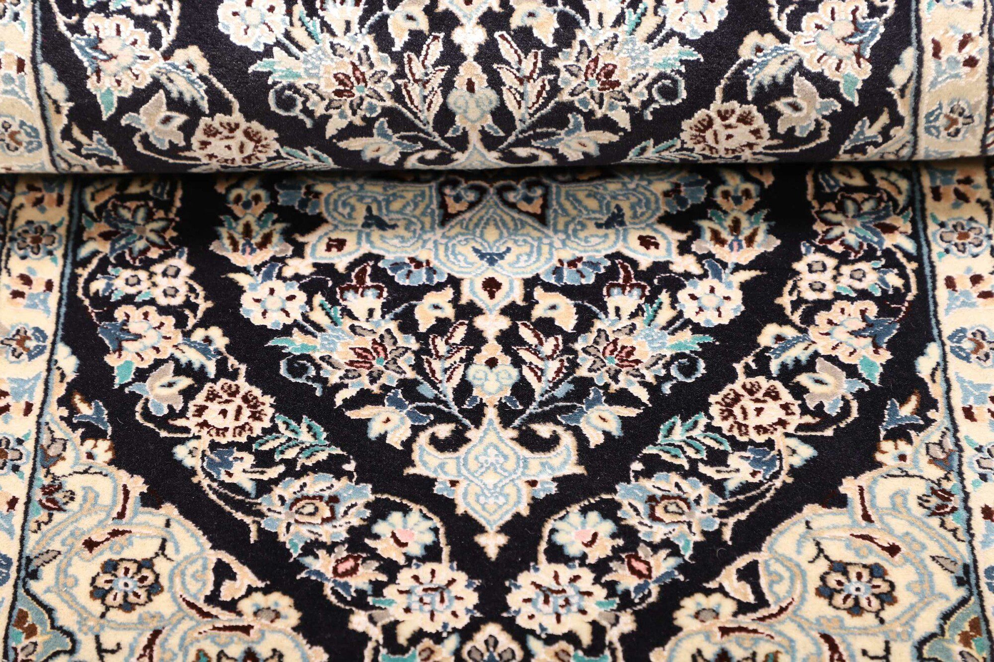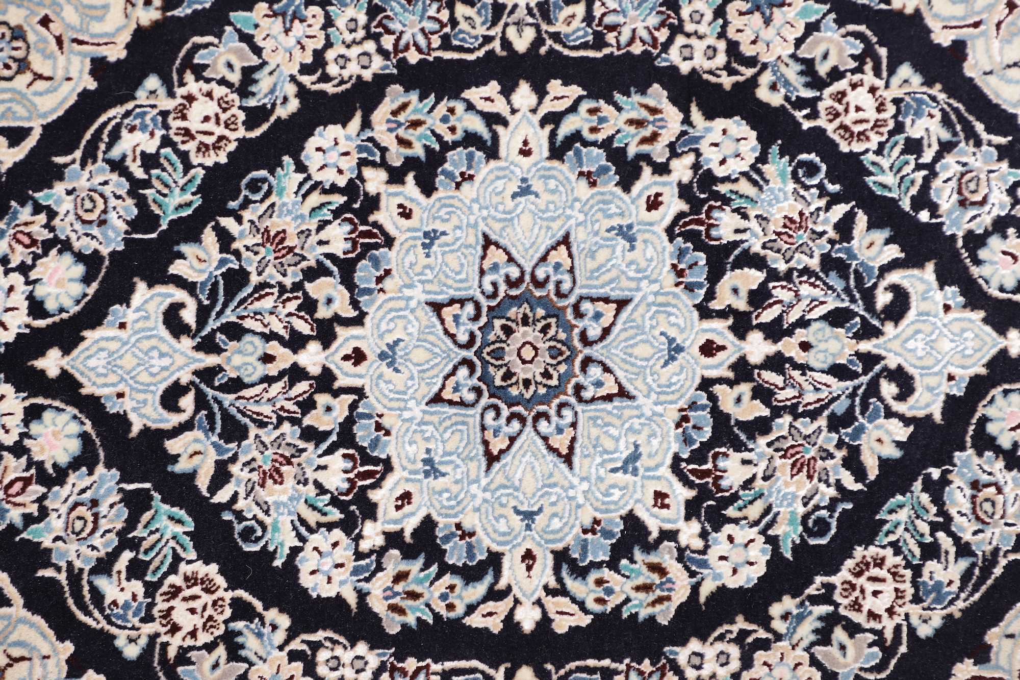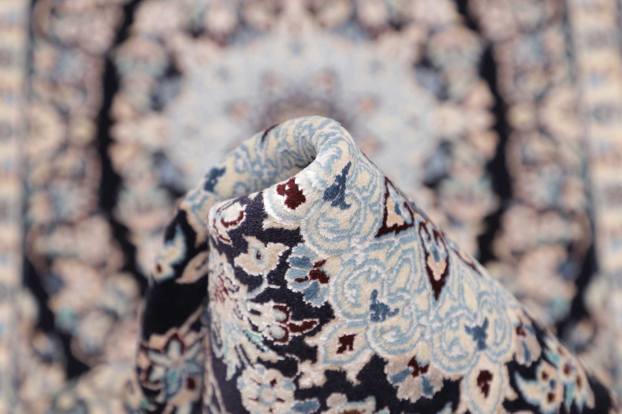 Nain carpets are high-quality Persian rugs woven in the Nain region of Iran. Known for their intricate designs, these carpets feature fine details, often incorporating floral and medallion patterns. Made from premium wool or silk, Nain carpets are prized for their elegance, durability, and smooth texture.
