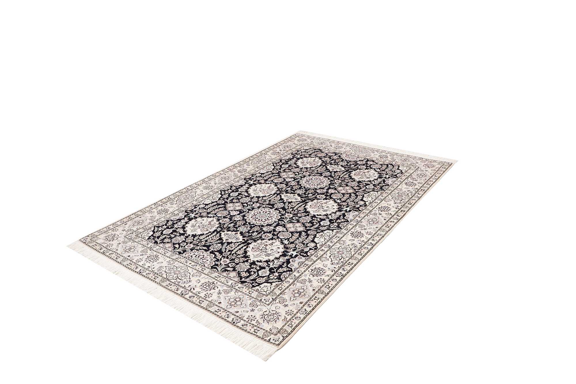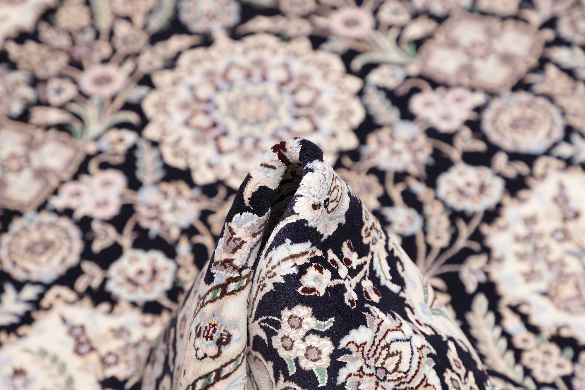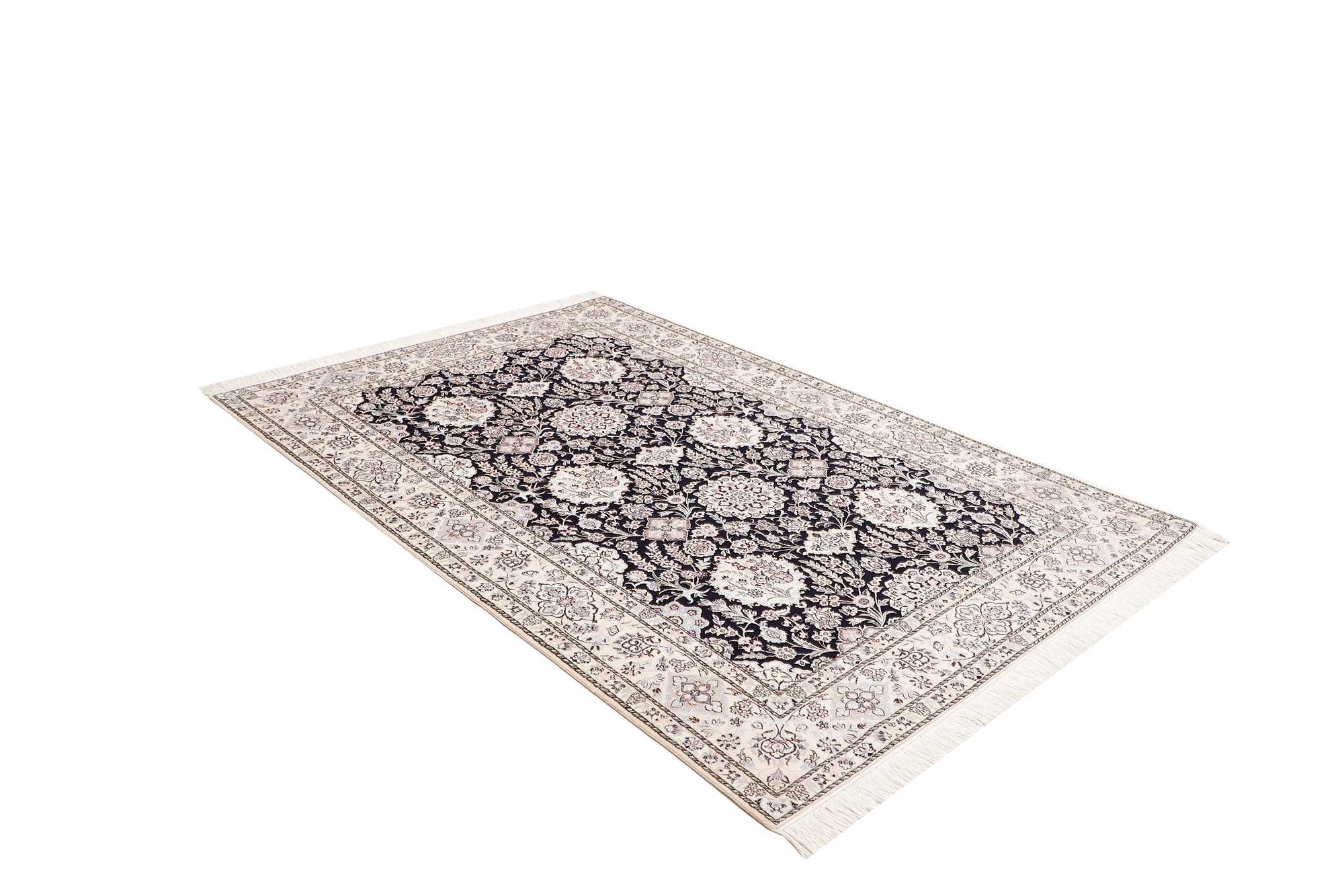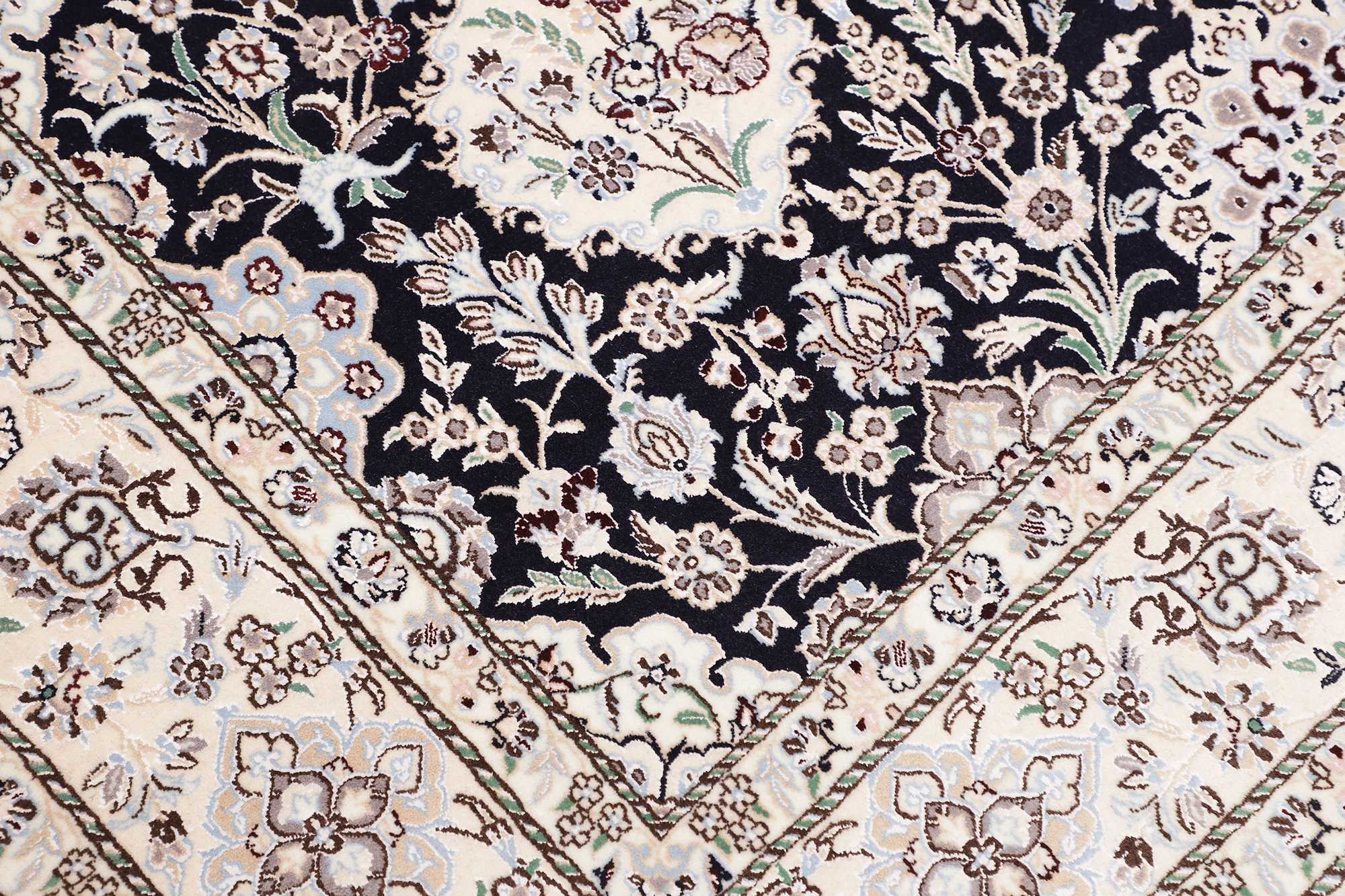 Nain carpets are high-quality Persian rugs woven in the Nain region of Iran. Known for their intricate designs, these carpets feature fine details, often incorporating floral and medallion patterns. Made from premium wool or silk, Nain carpets are prized for their elegance, durability, and smooth texture.