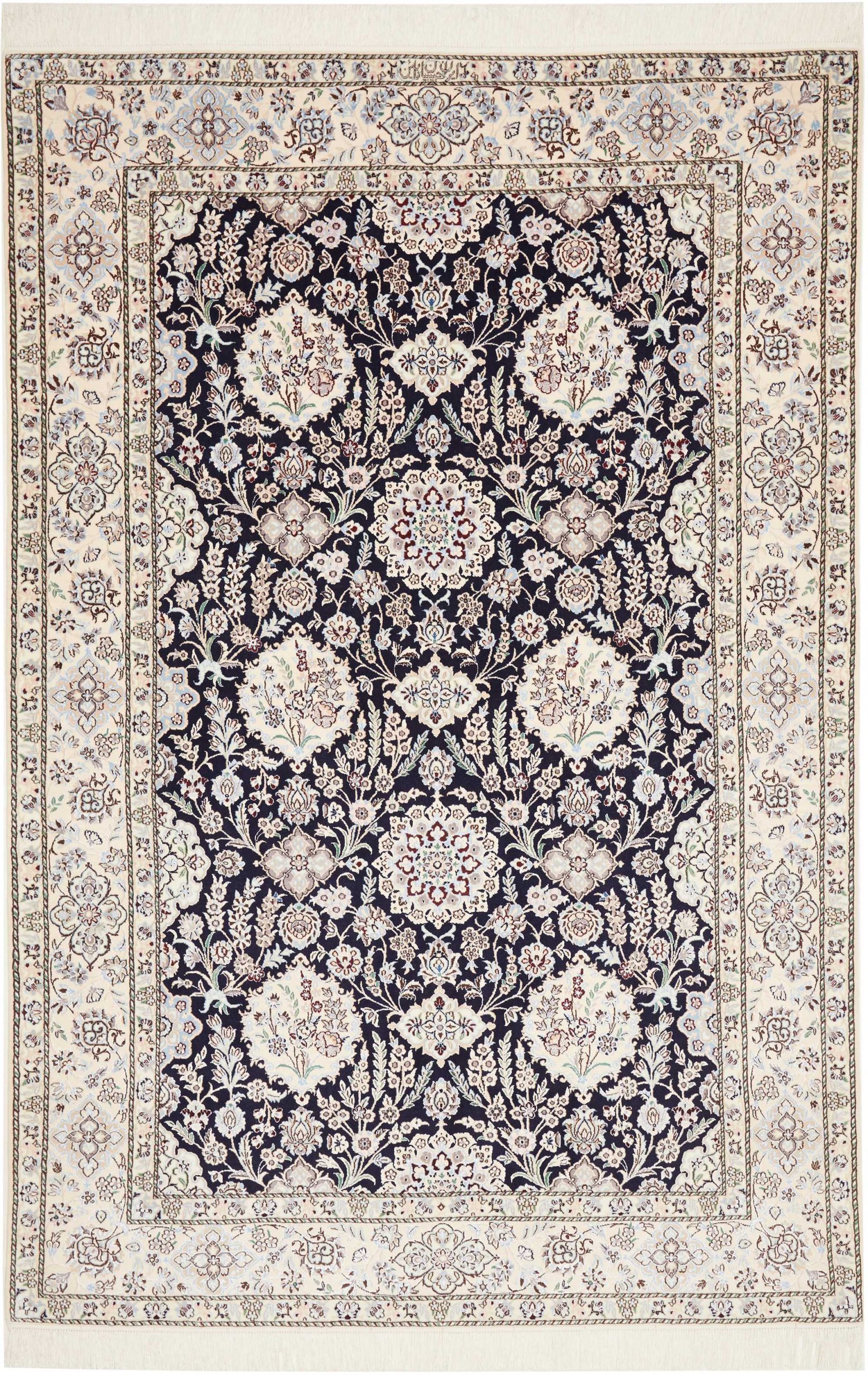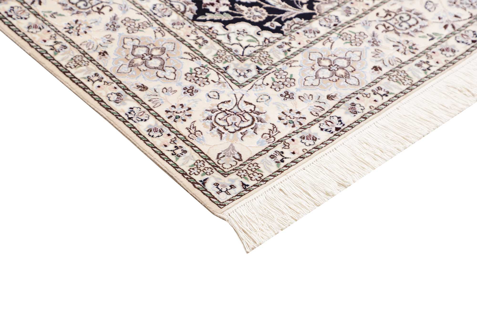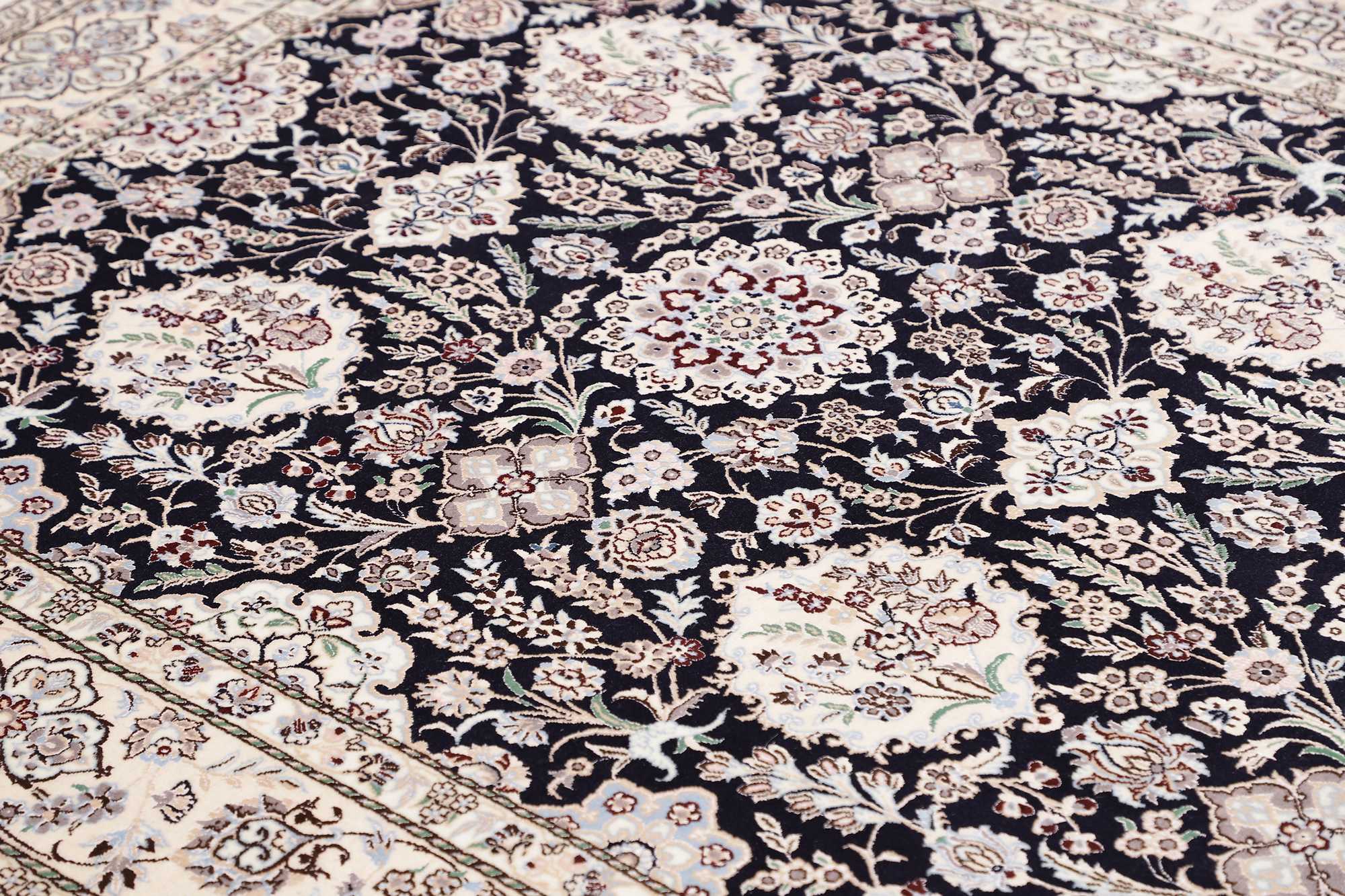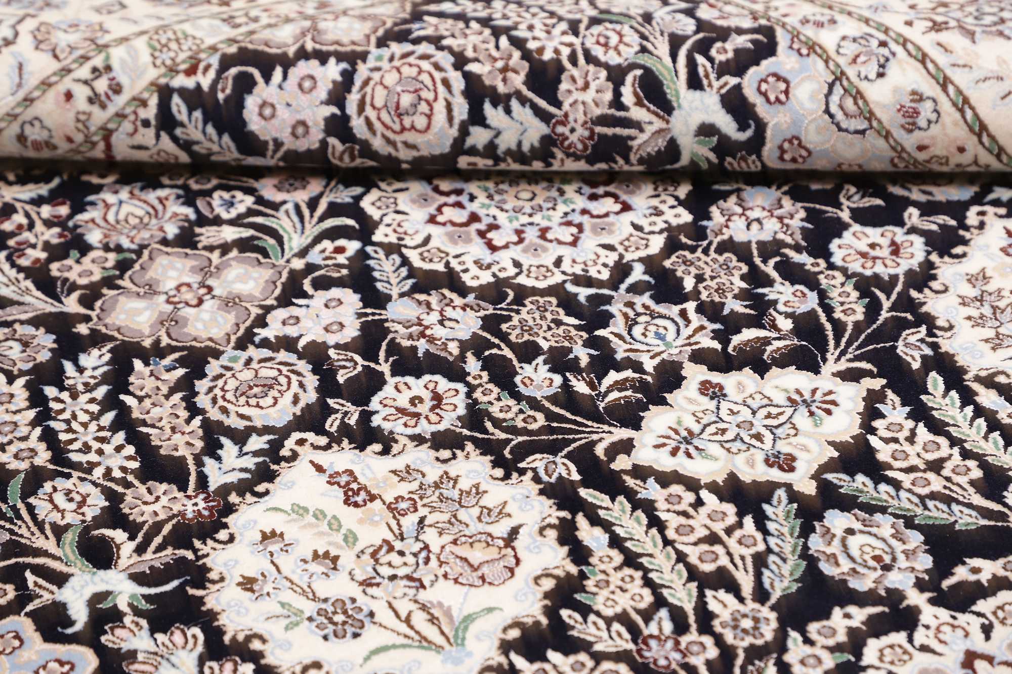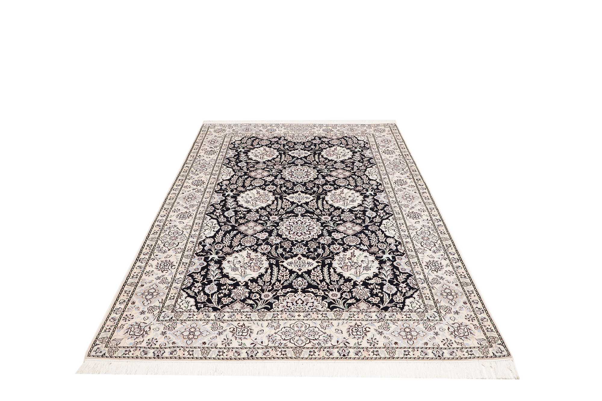 Nain carpets are high-quality Persian rugs woven in the Nain region of Iran. Known for their intricate designs, these carpets feature fine details, often incorporating floral and medallion patterns. Made from premium wool or silk, Nain carpets are prized for their elegance, durability, and smooth texture.