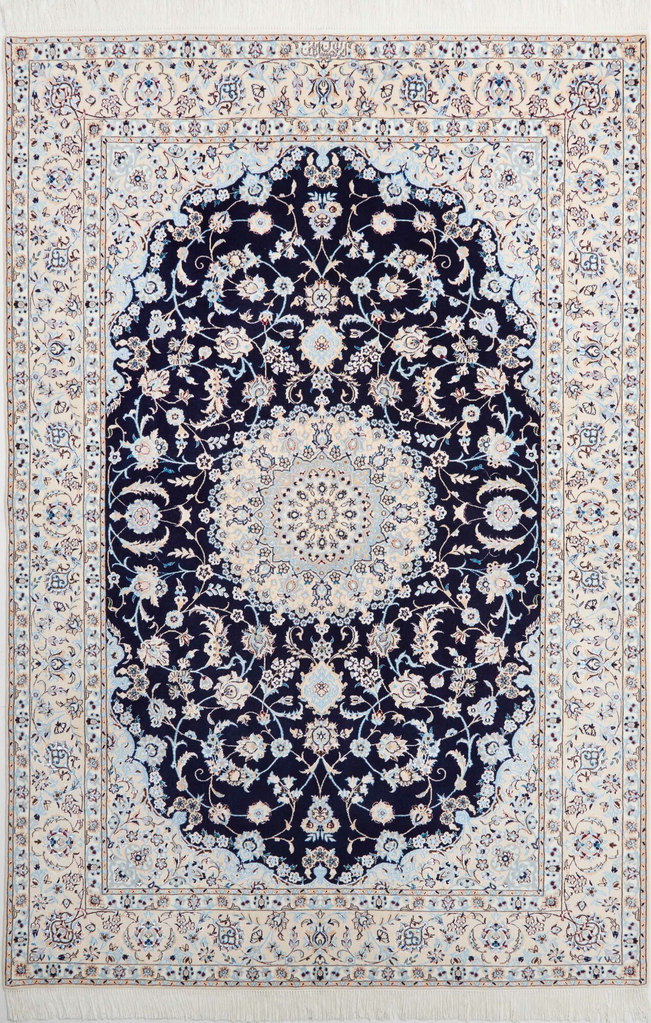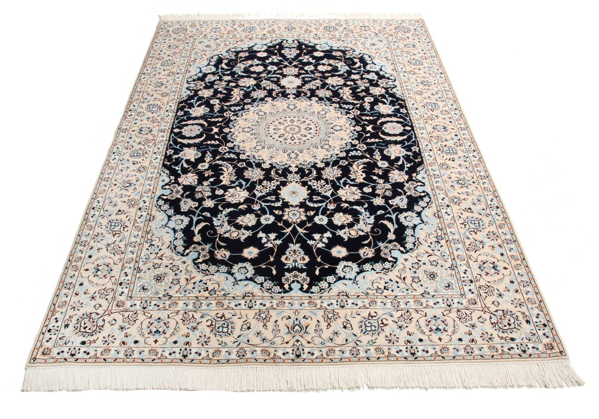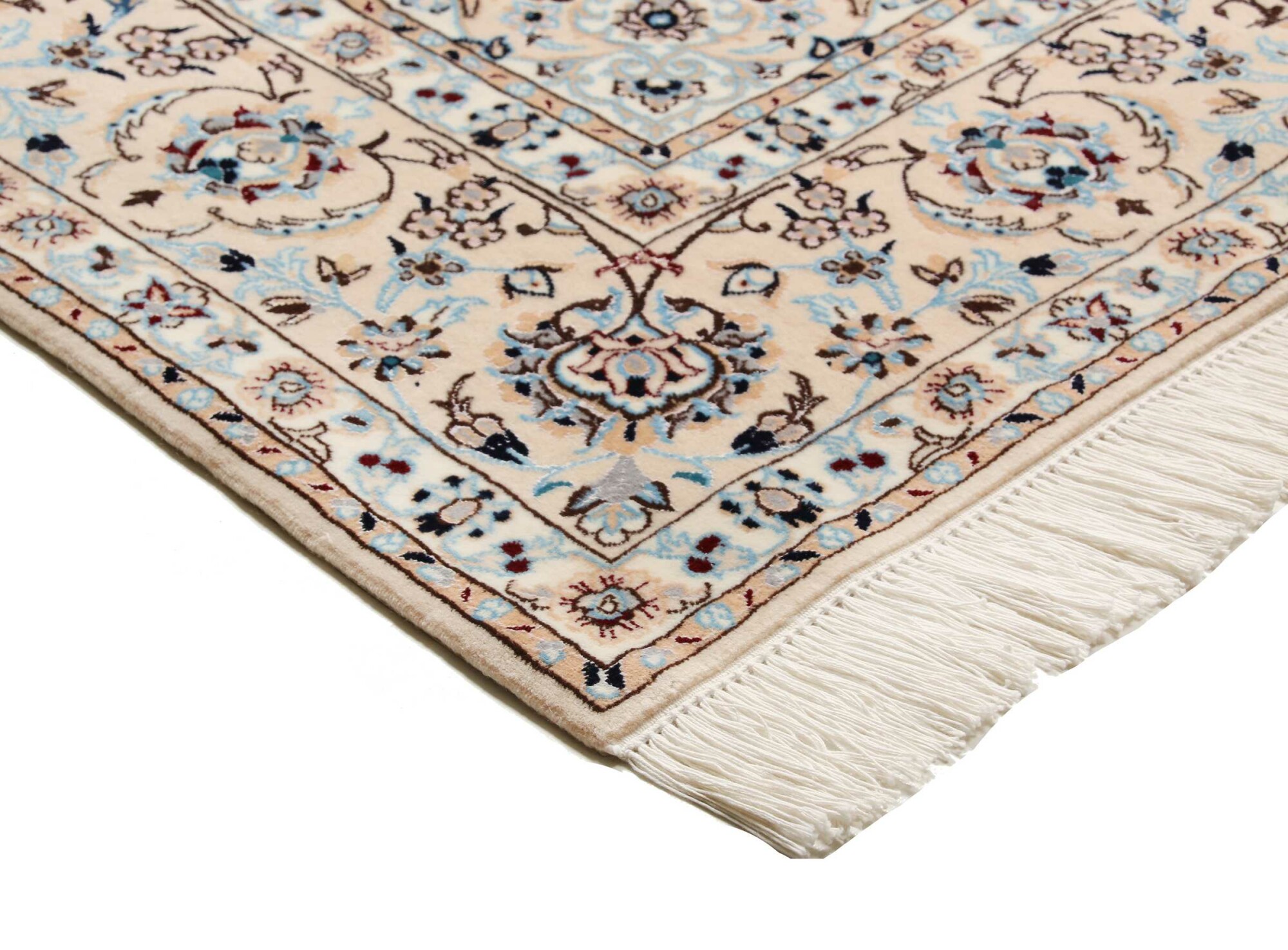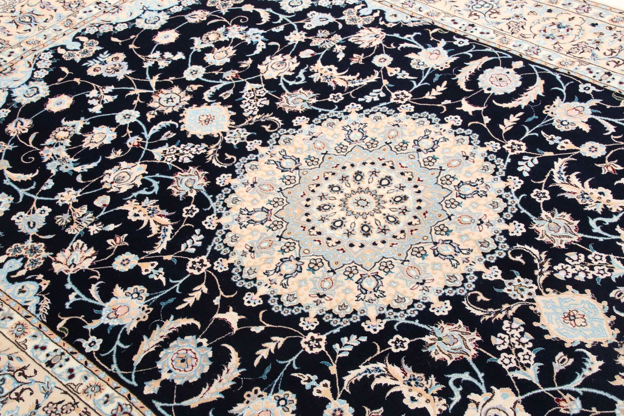 Nain carpets are high-quality Persian rugs woven in the Nain region of Iran. Known for their intricate designs, these carpets feature fine details, often incorporating floral and medallion patterns. Made from premium wool or silk, Nain carpets are prized for their elegance, durability, and smooth texture.