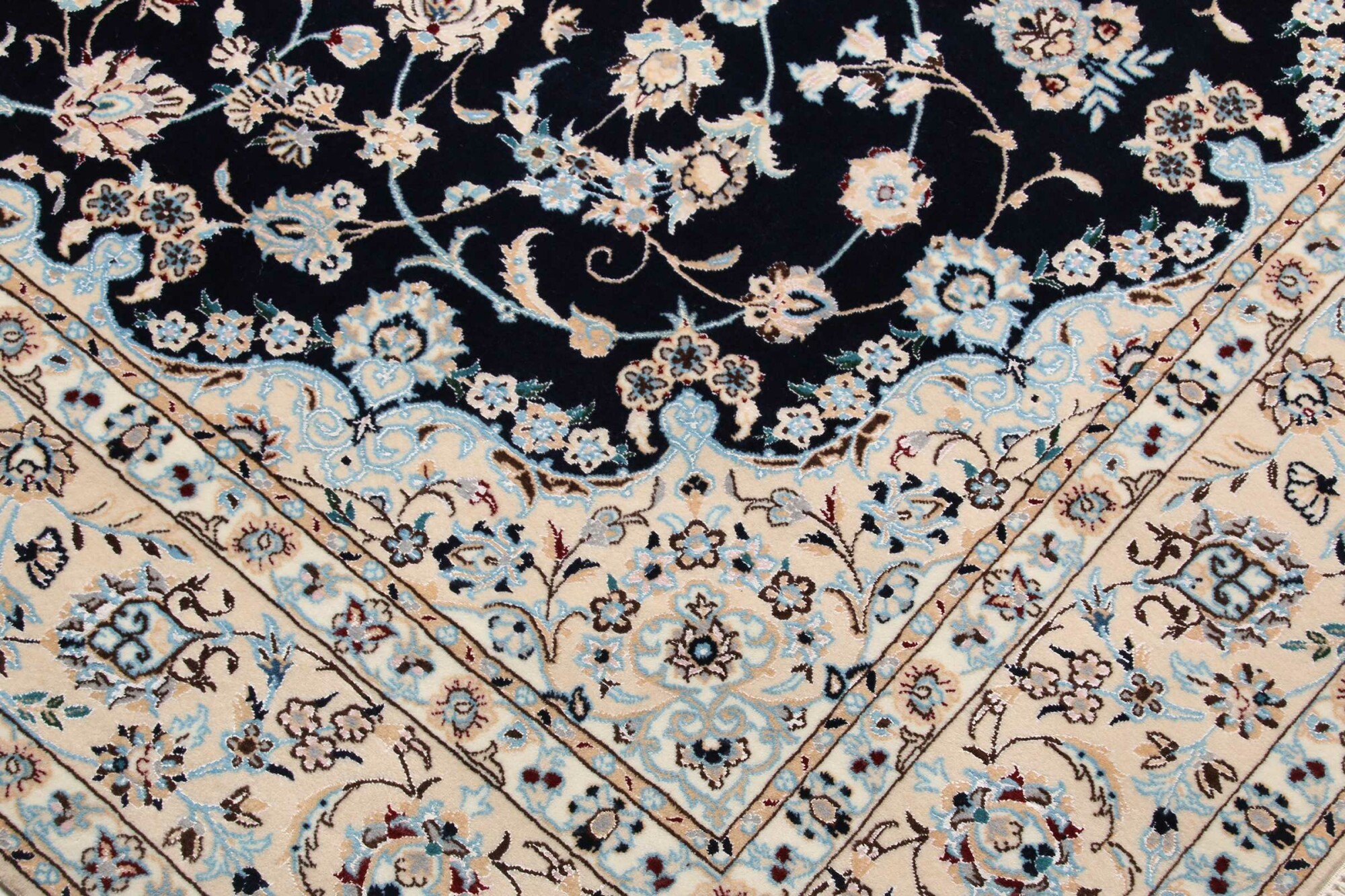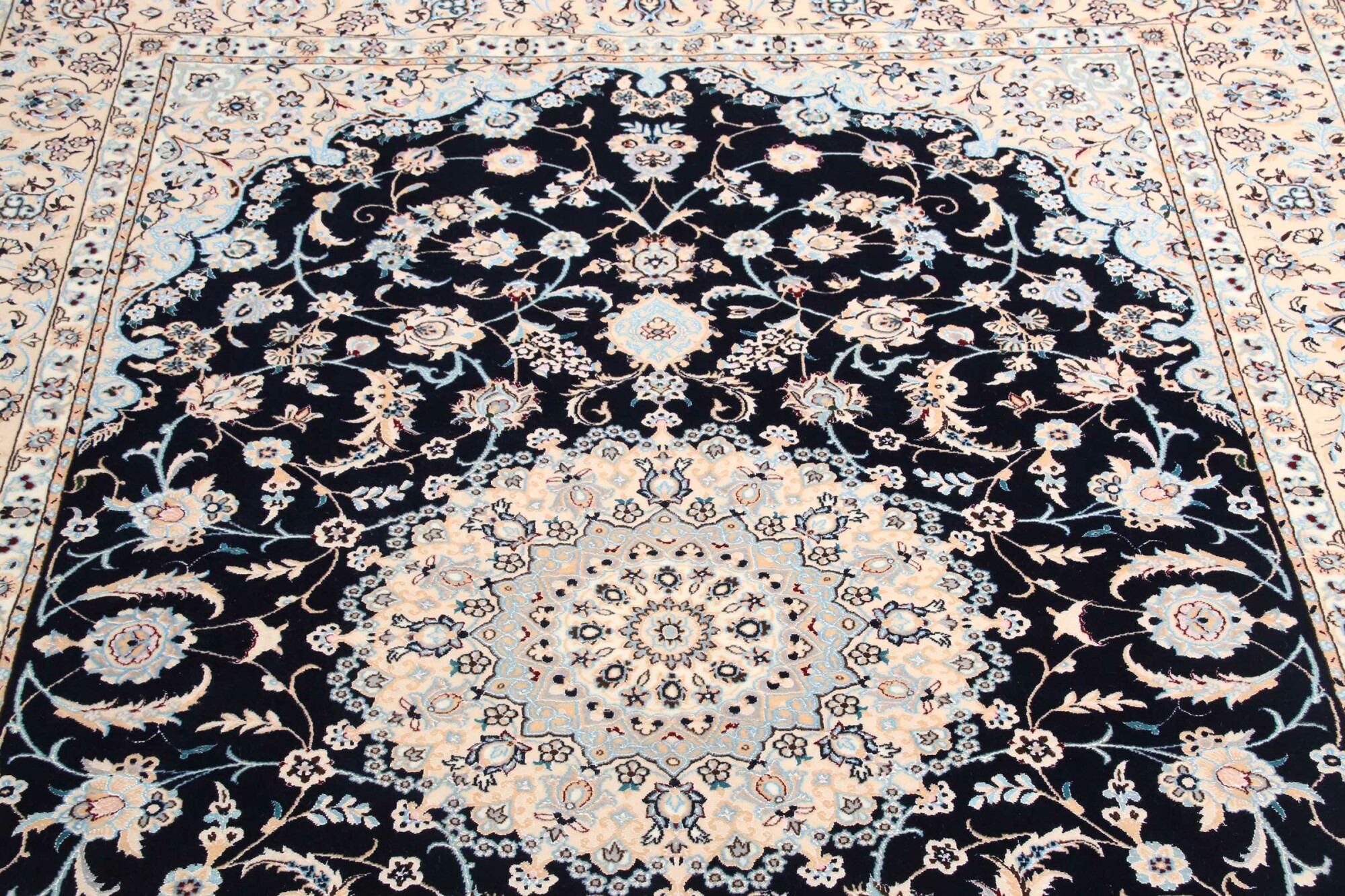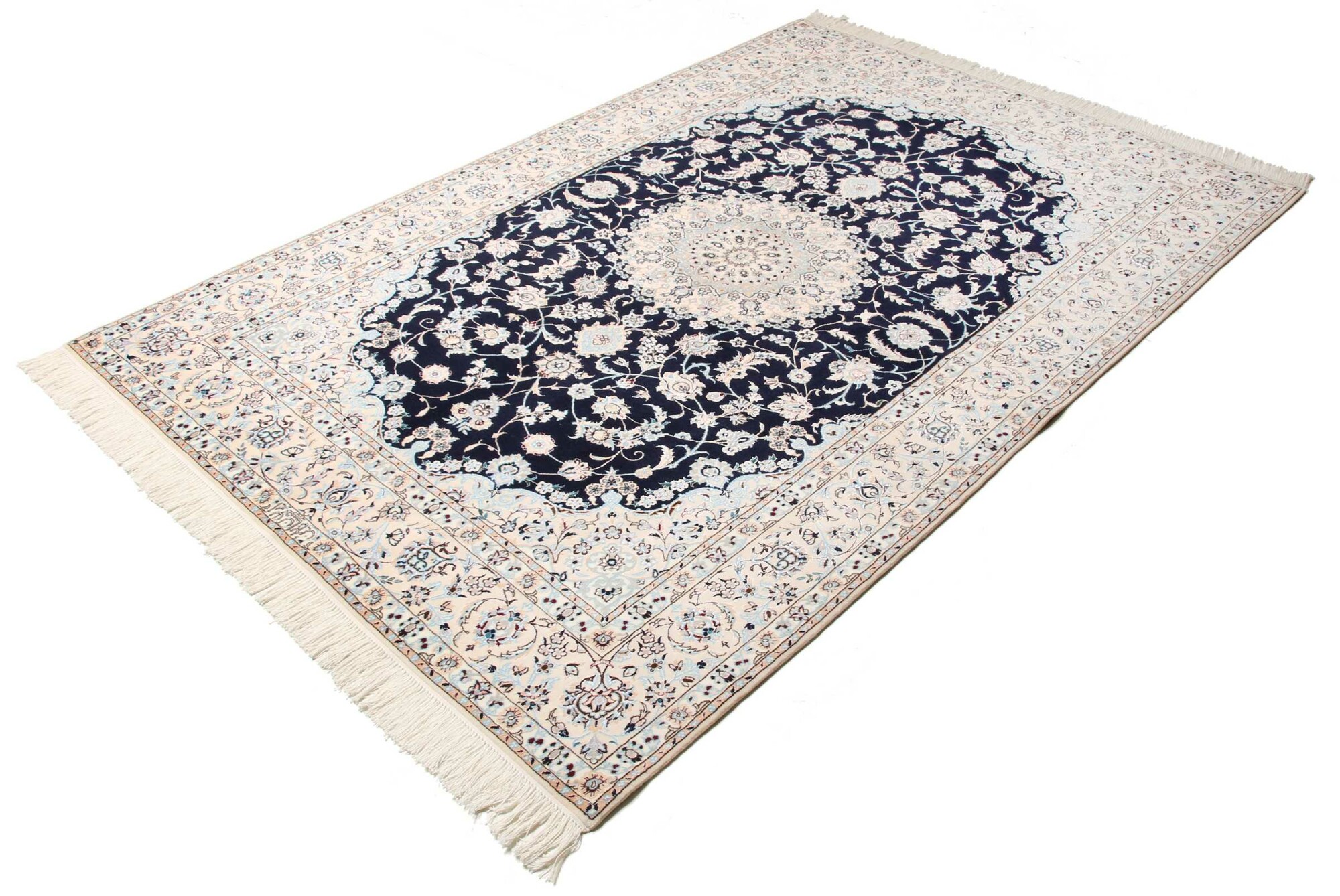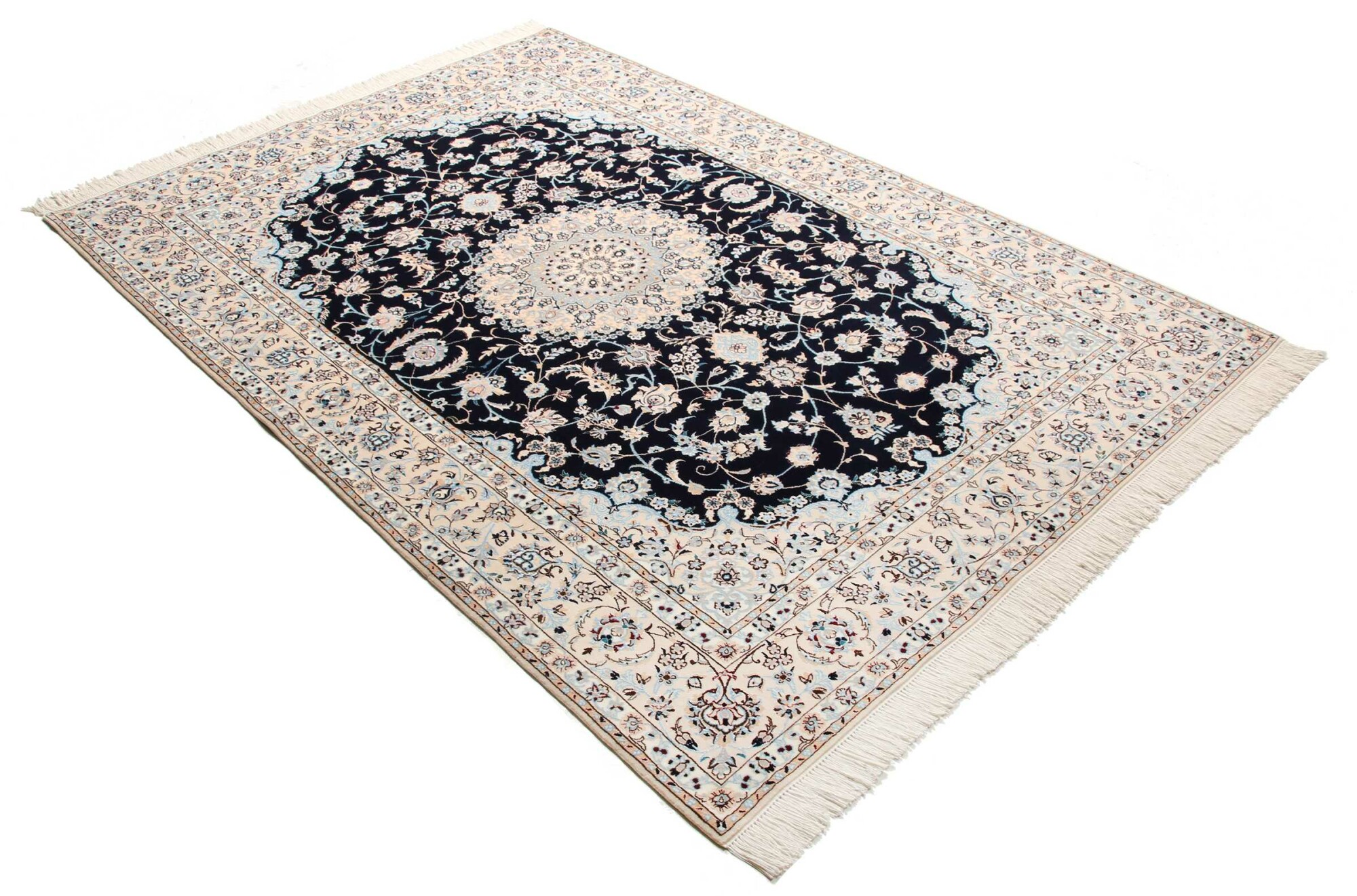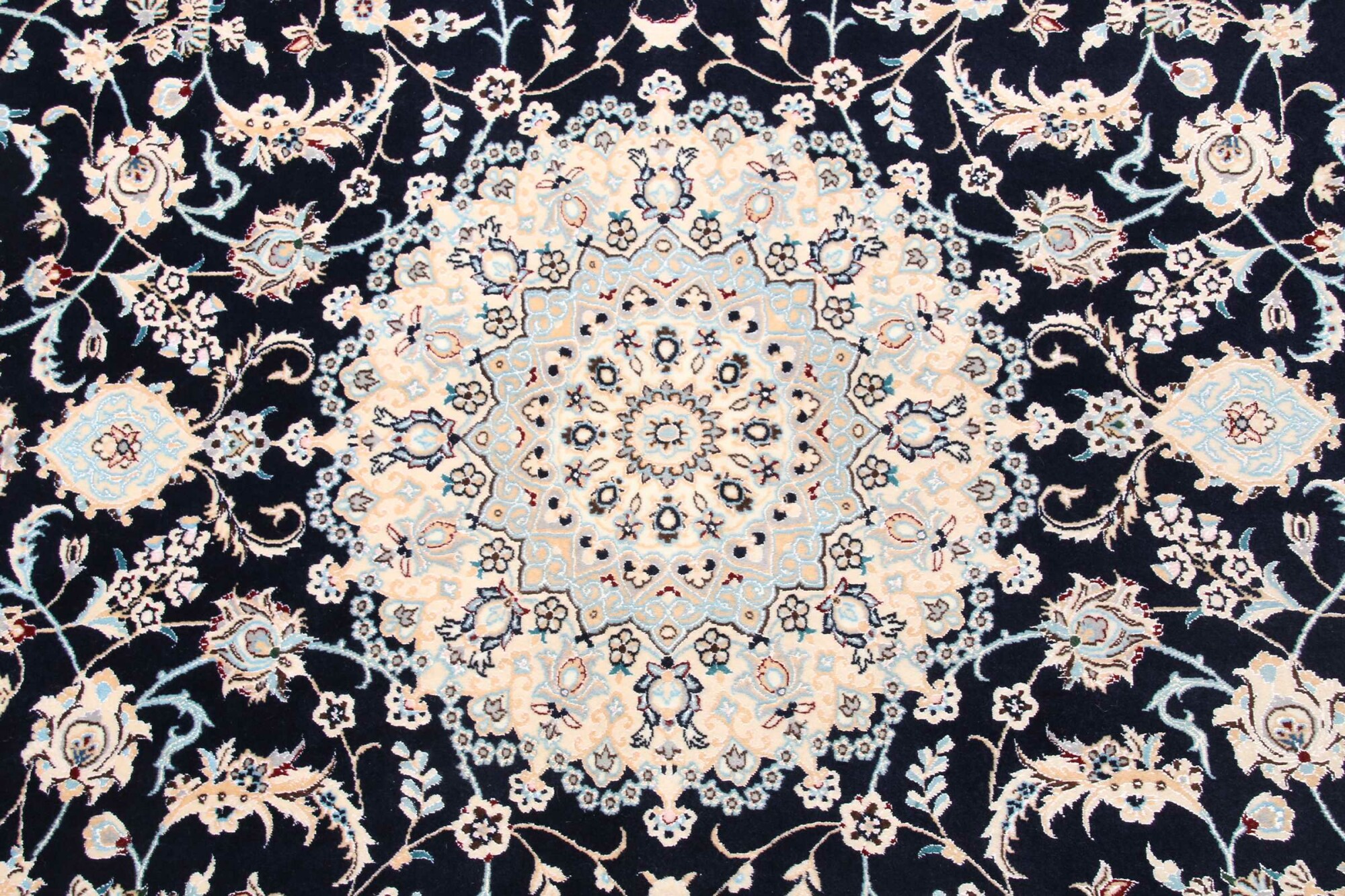 Nain carpets are high-quality Persian rugs woven in the Nain region of Iran. Known for their intricate designs, these carpets feature fine details, often incorporating floral and medallion patterns. Made from premium wool or silk, Nain carpets are prized for their elegance, durability, and smooth texture.