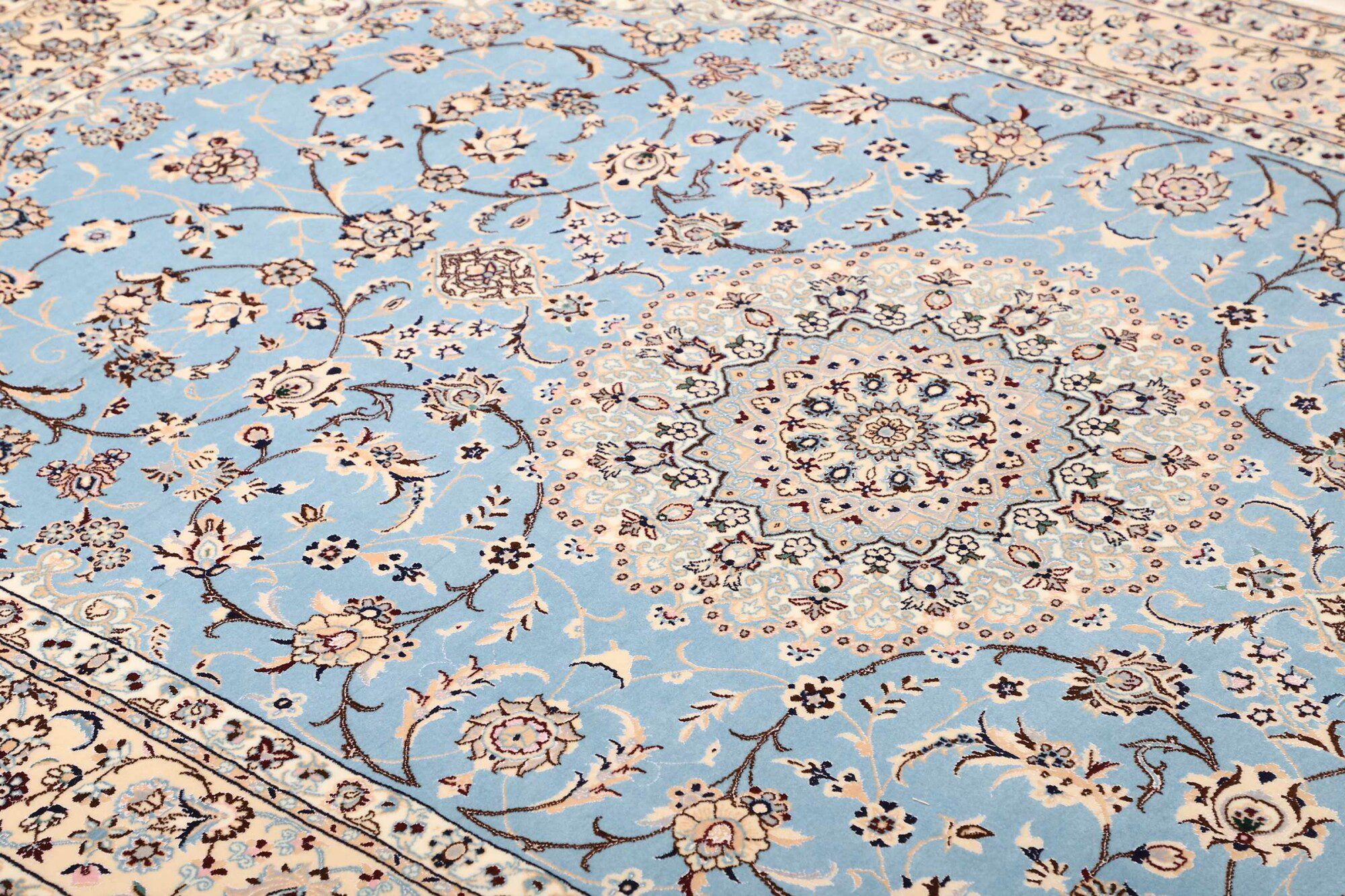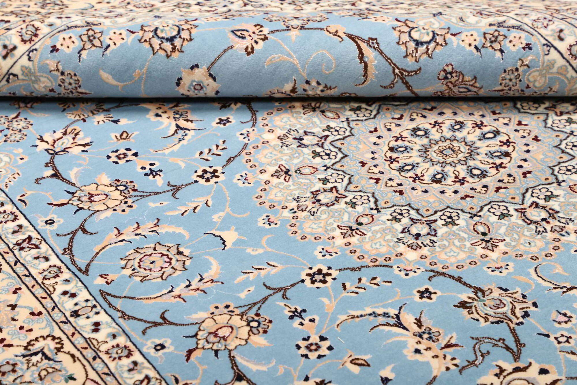 Nain carpets are high-quality Persian rugs woven in the Nain region of Iran. Known for their intricate designs, these carpets feature fine details, often incorporating floral and medallion patterns. Made from premium wool or silk, Nain carpets are prized for their elegance, durability, and smooth texture.