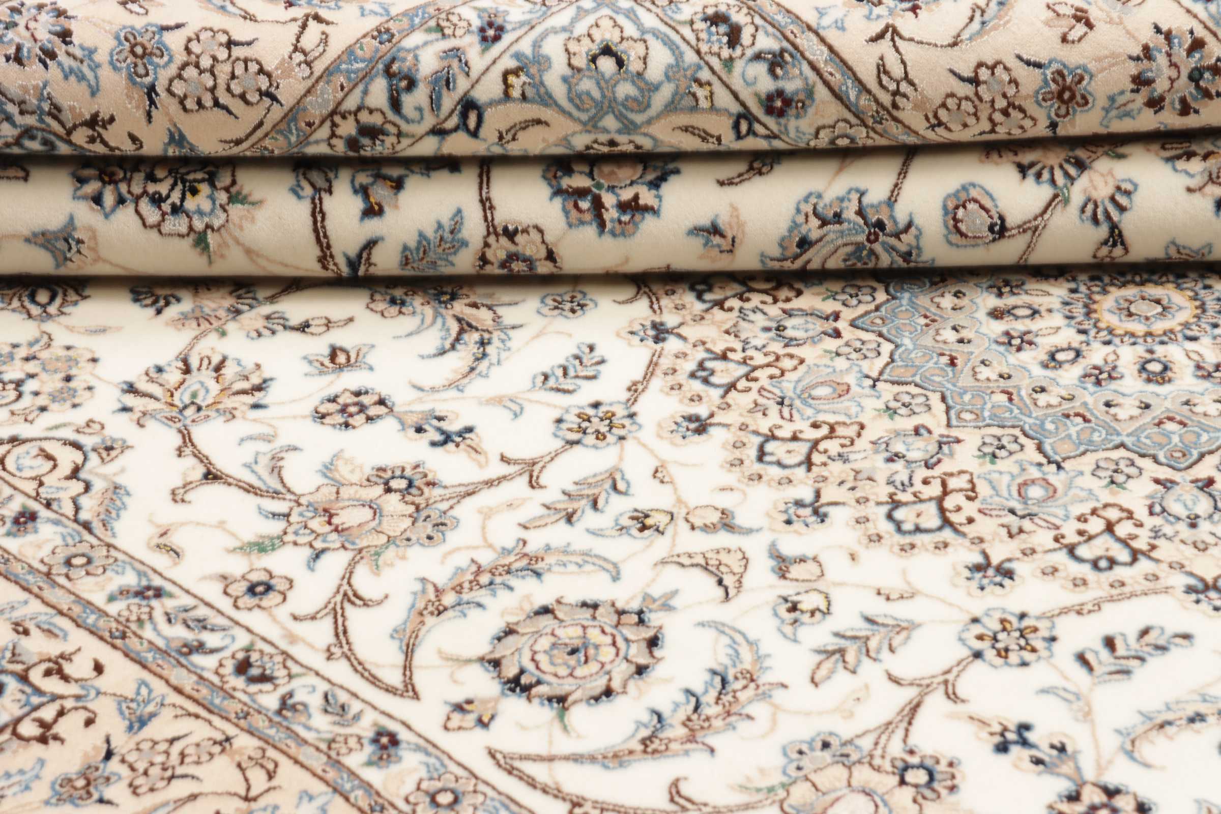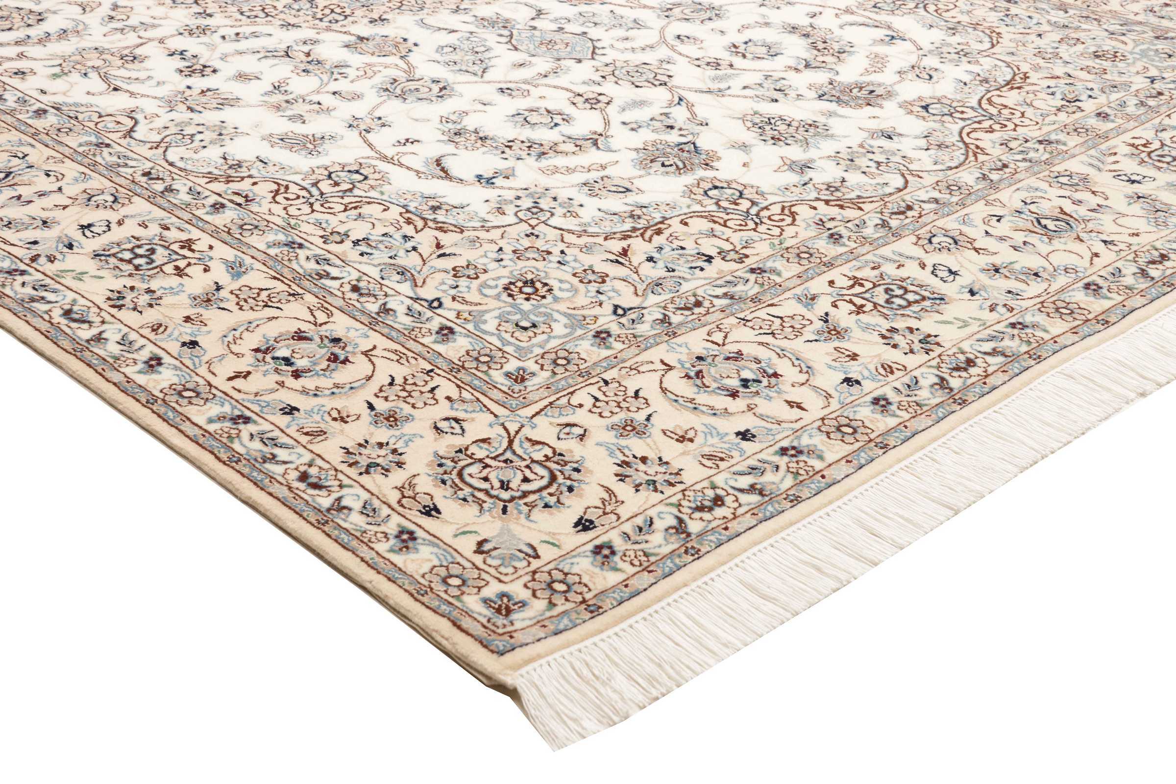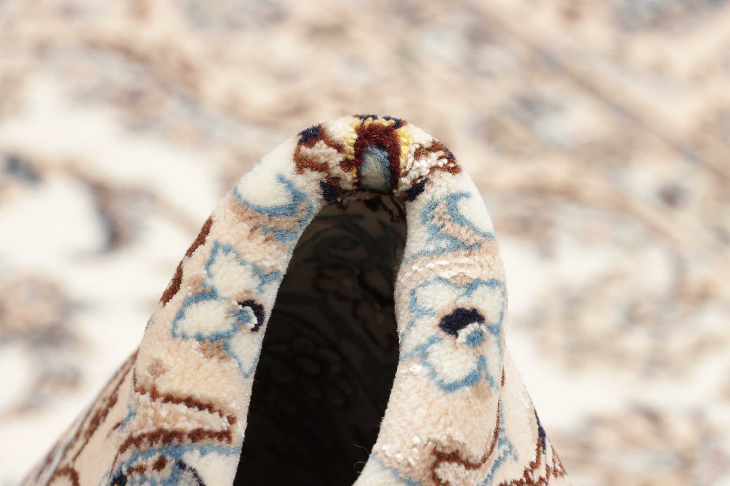 Nain carpets are high-quality Persian rugs woven in the Nain region of Iran. Known for their intricate designs, these carpets feature fine details, often incorporating floral and medallion patterns. Made from premium wool or silk, Nain carpets are prized for their elegance, durability, and smooth texture.