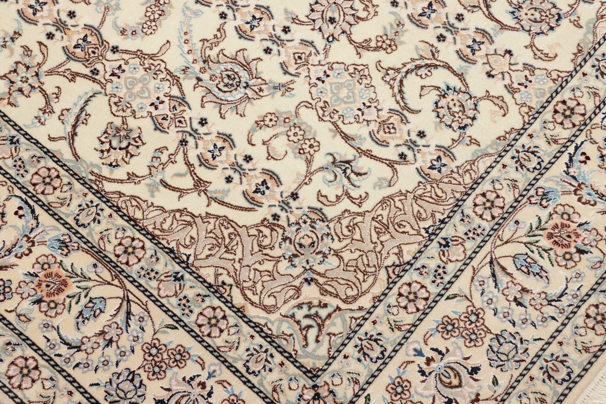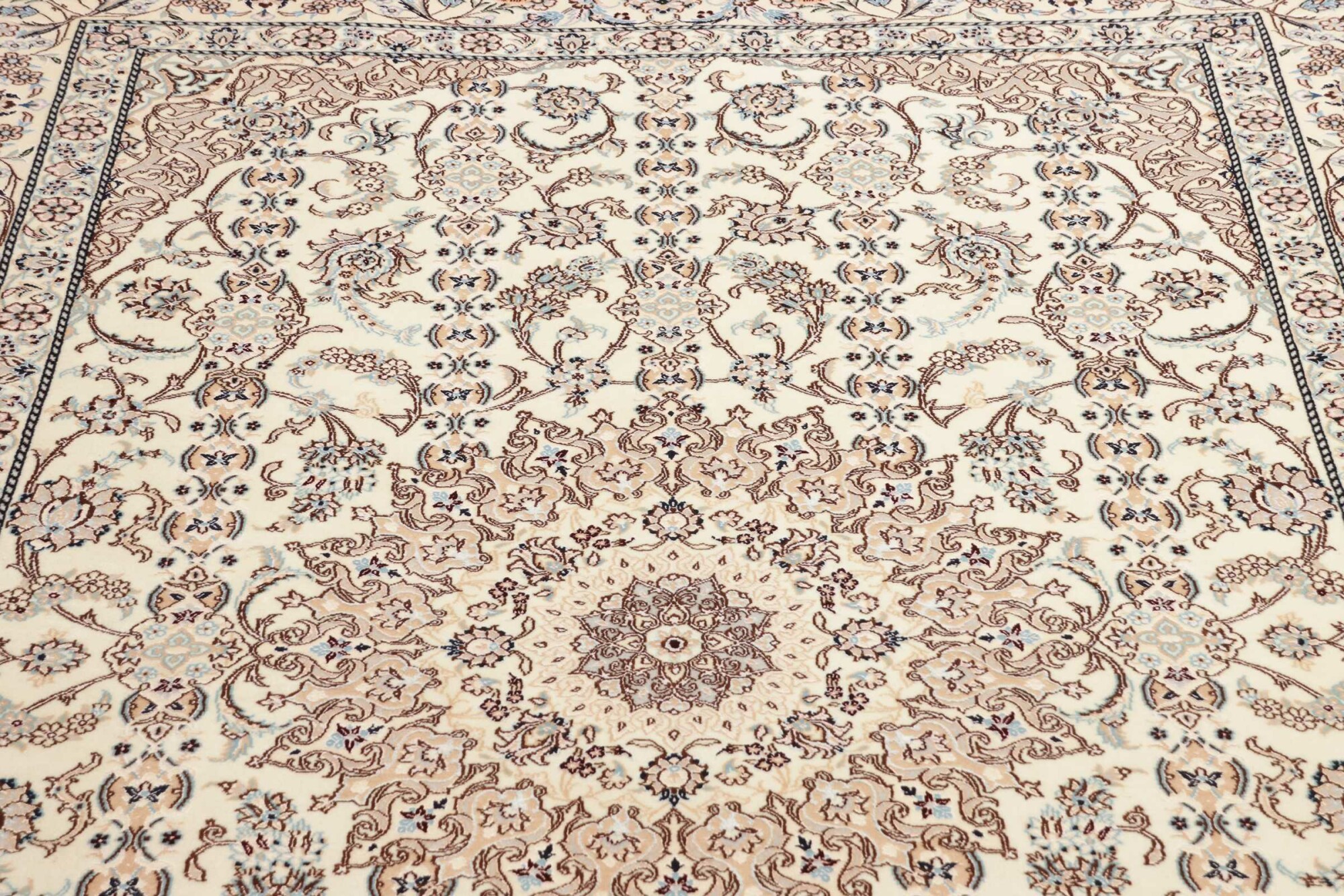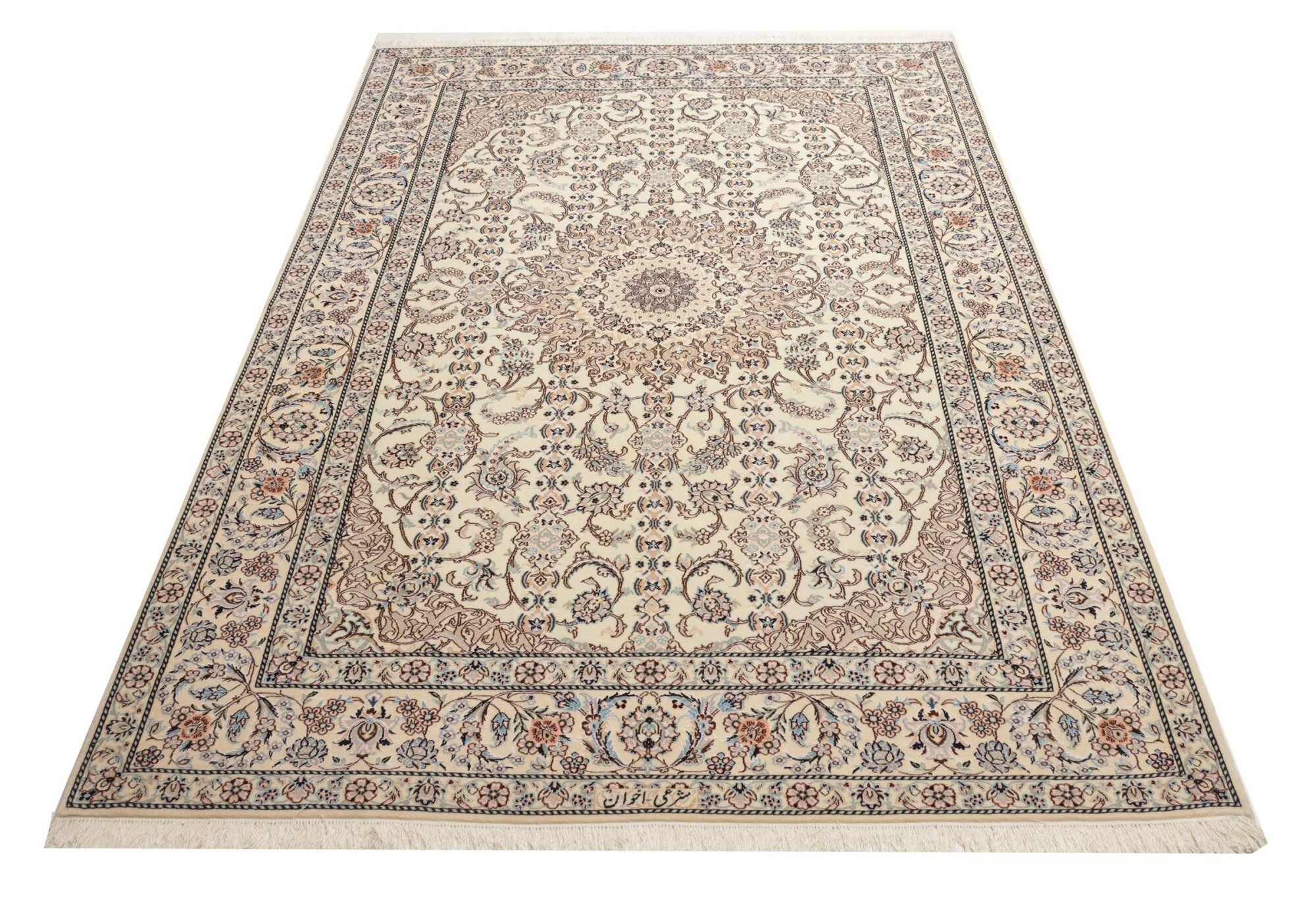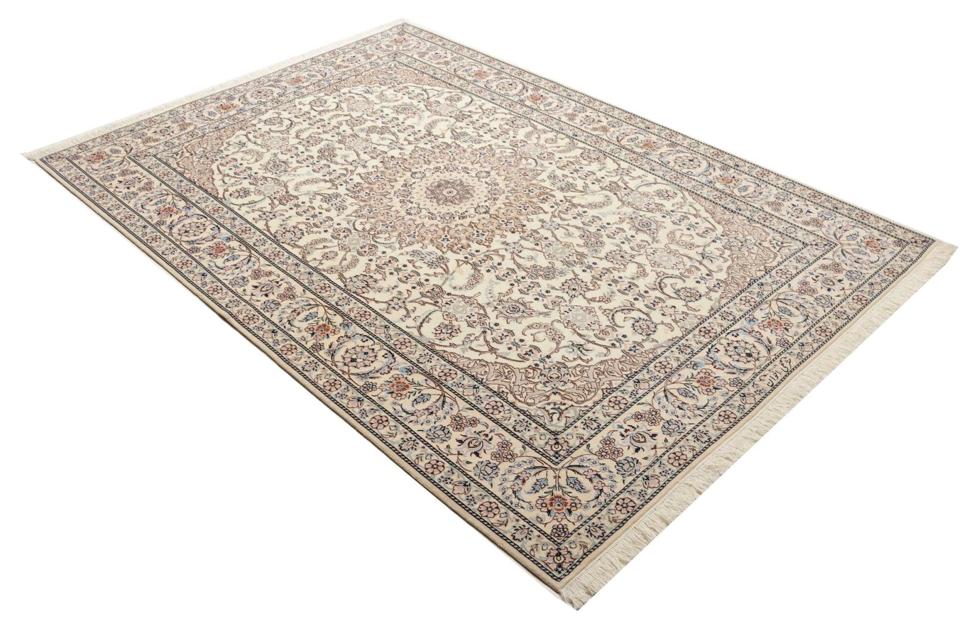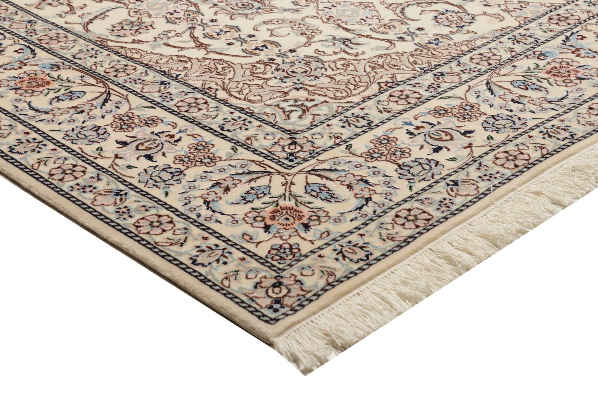 Nain carpets are high-quality Persian rugs woven in the Nain region of Iran. Known for their intricate designs, these carpets feature fine details, often incorporating floral and medallion patterns. Made from premium wool or silk, Nain carpets are prized for their elegance, durability, and smooth texture.