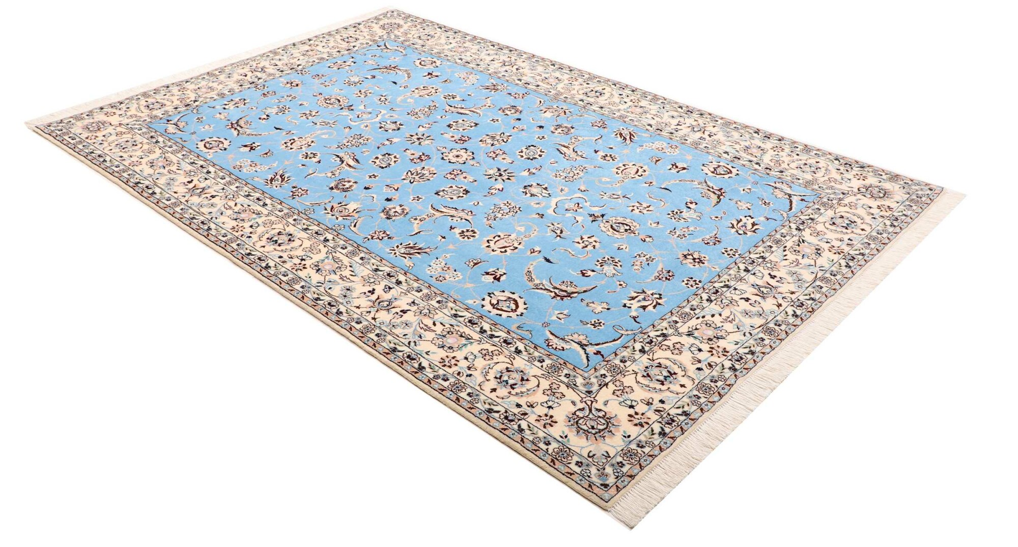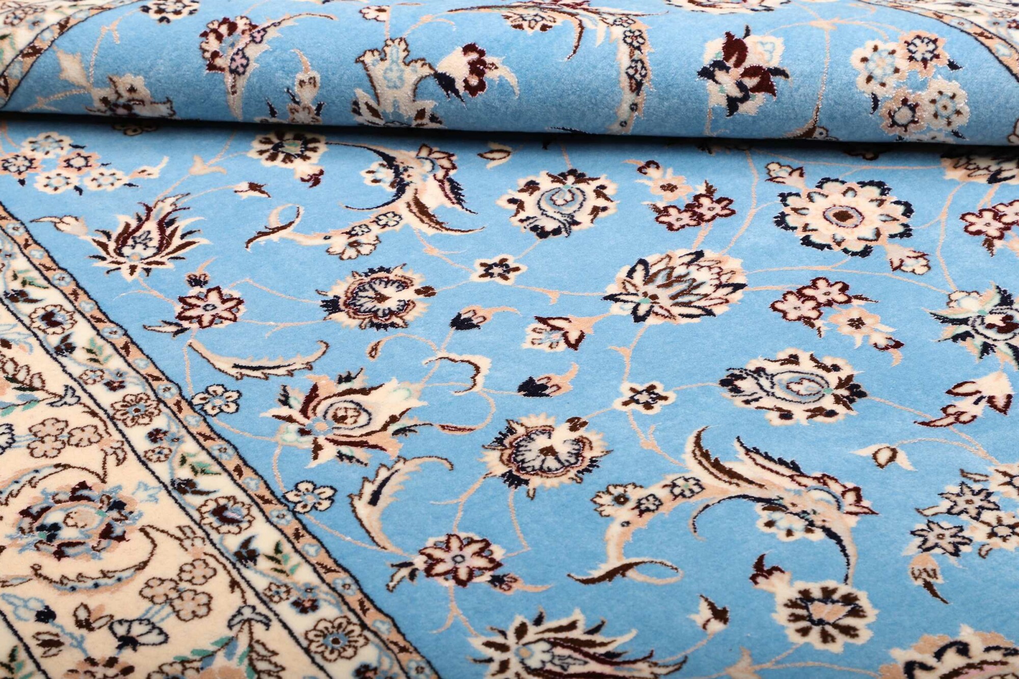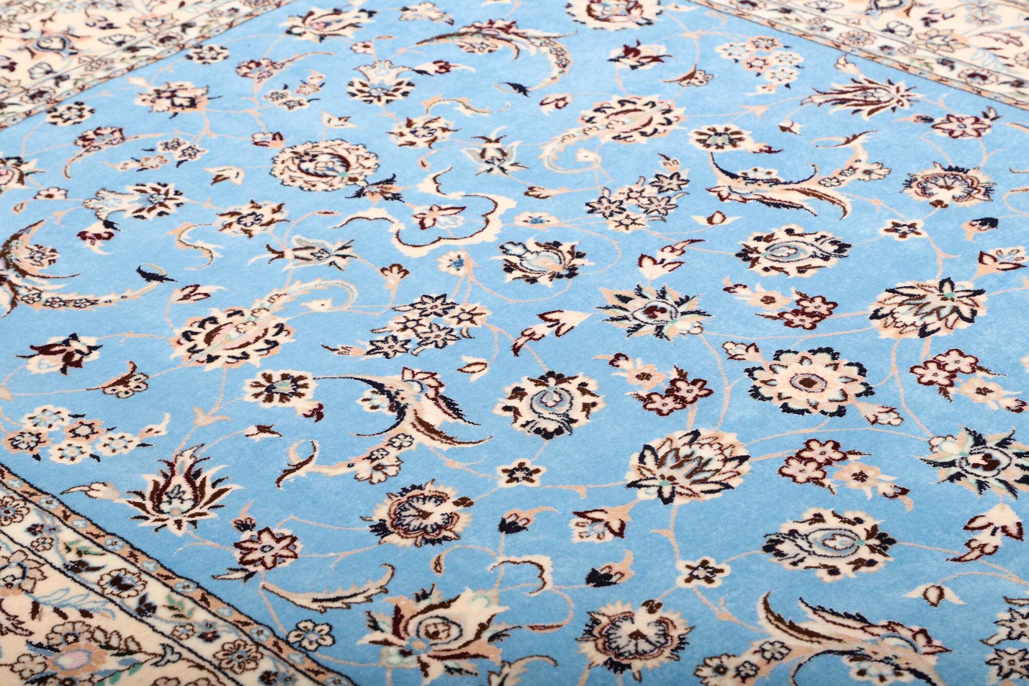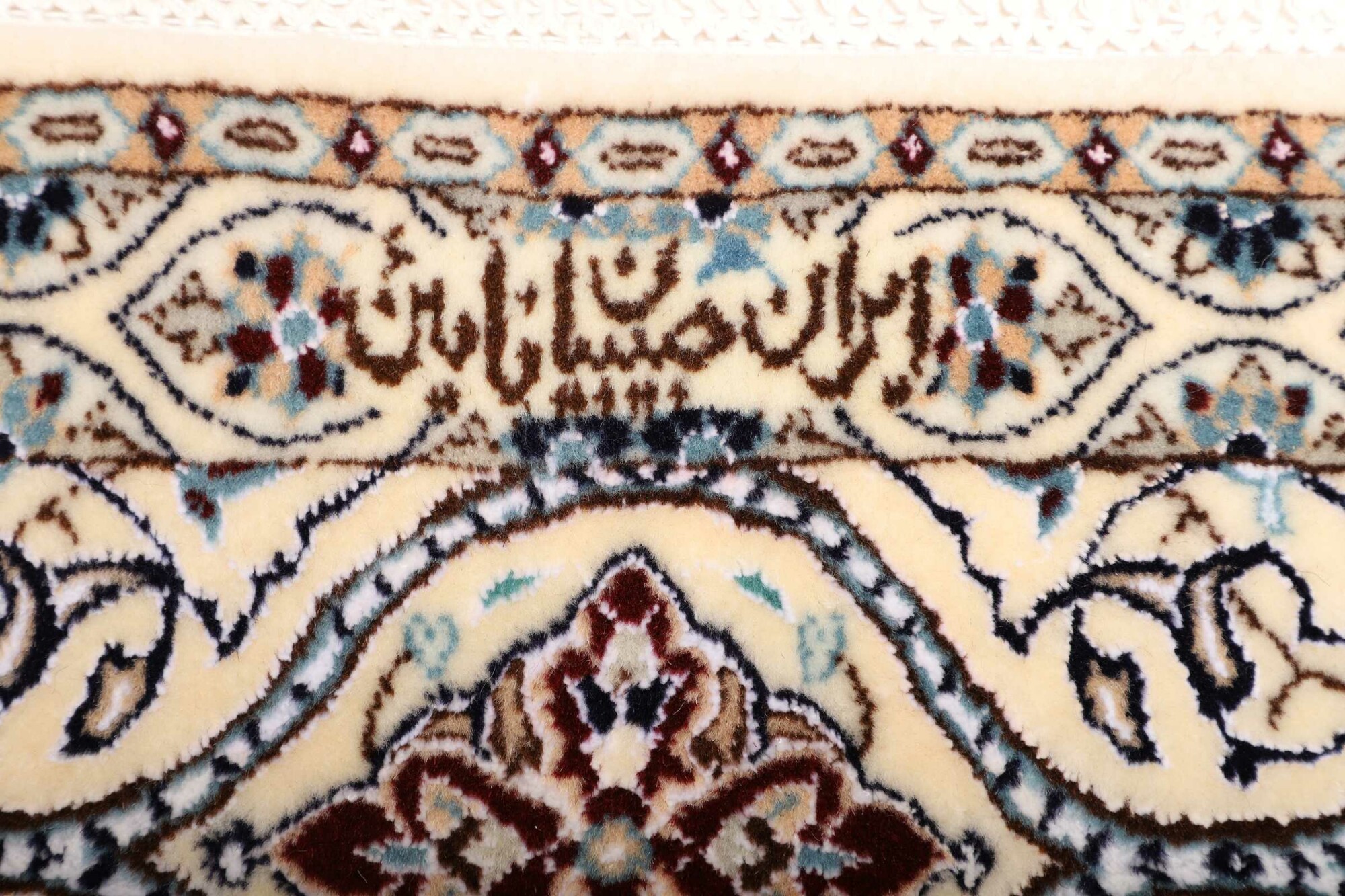 Nain carpets are high-quality Persian rugs woven in the Nain region of Iran. Known for their intricate designs, these carpets feature fine details, often incorporating floral and medallion patterns. Made from premium wool or silk, Nain carpets are prized for their elegance, durability, and smooth texture.