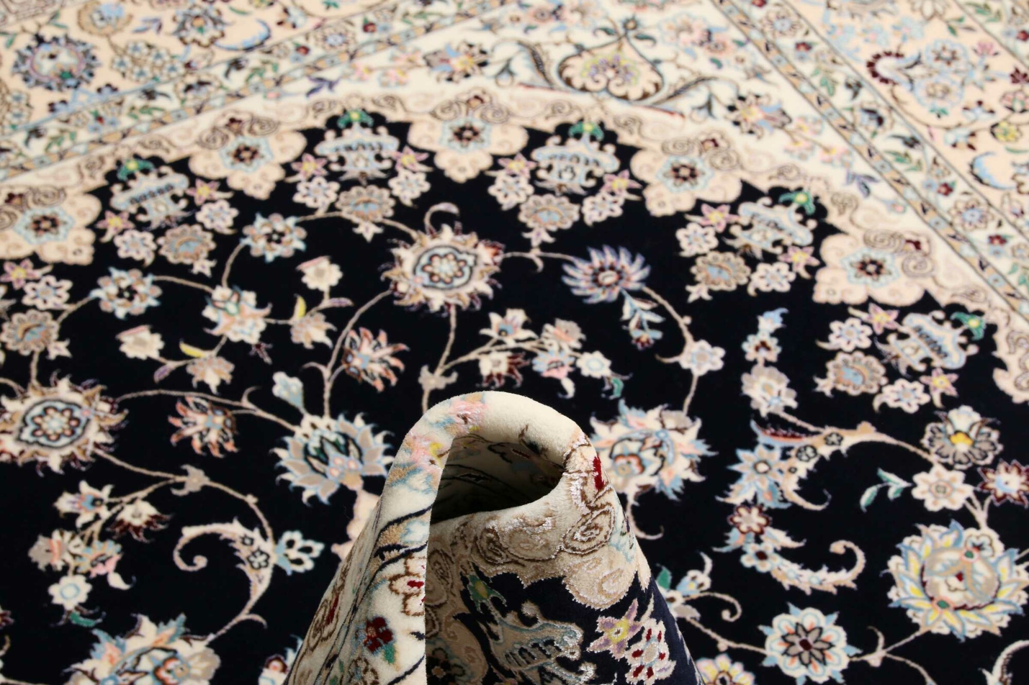 Nain carpets are high-quality Persian rugs woven in the Nain region of Iran. Known for their intricate designs, these carpets feature fine details, often incorporating floral and medallion patterns. Made from premium wool or silk, Nain carpets are prized for their elegance, durability, and smooth texture.