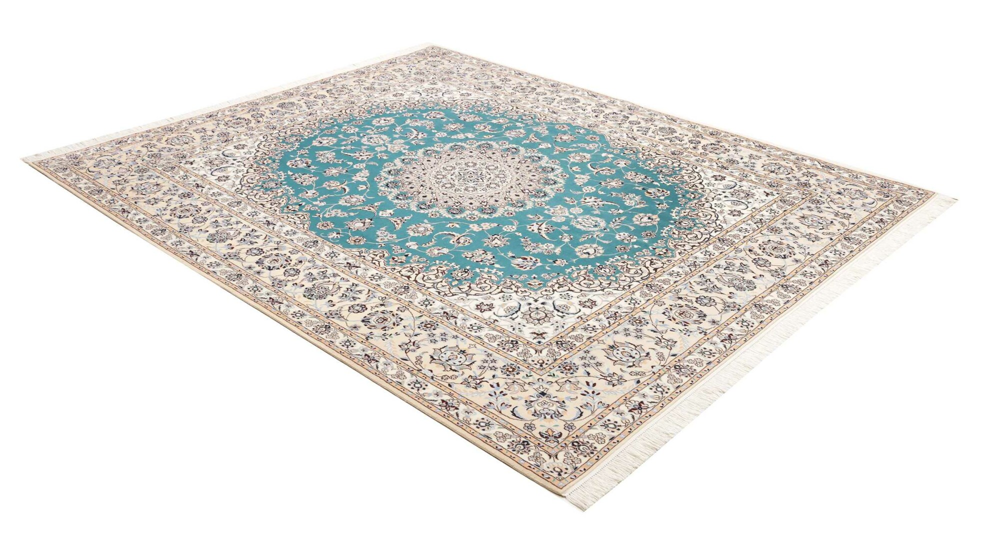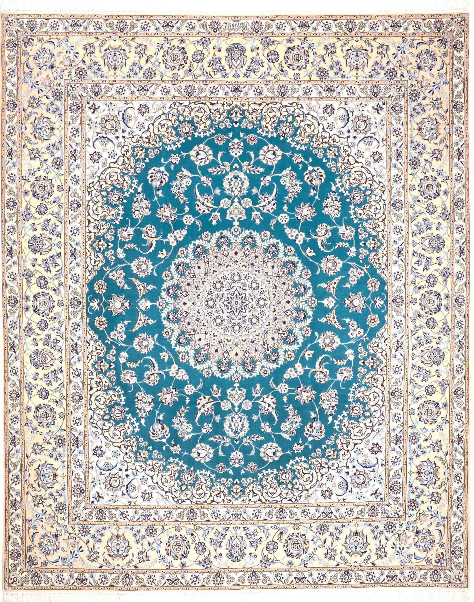Nain carpets are high-quality Persian rugs woven in the Nain region of Iran. Known for their intricate designs, these carpets feature fine details, often incorporating floral and medallion patterns. Made from premium wool or silk, Nain carpets are prized for their elegance, durability, and smooth texture.
