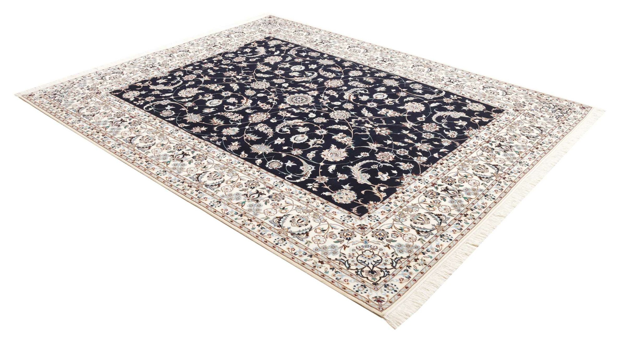 Nain carpets are high-quality Persian rugs woven in the Nain region of Iran. Known for their intricate designs, these carpets feature fine details, often incorporating floral and medallion patterns. Made from premium wool or silk, Nain carpets are prized for their elegance, durability, and smooth texture.