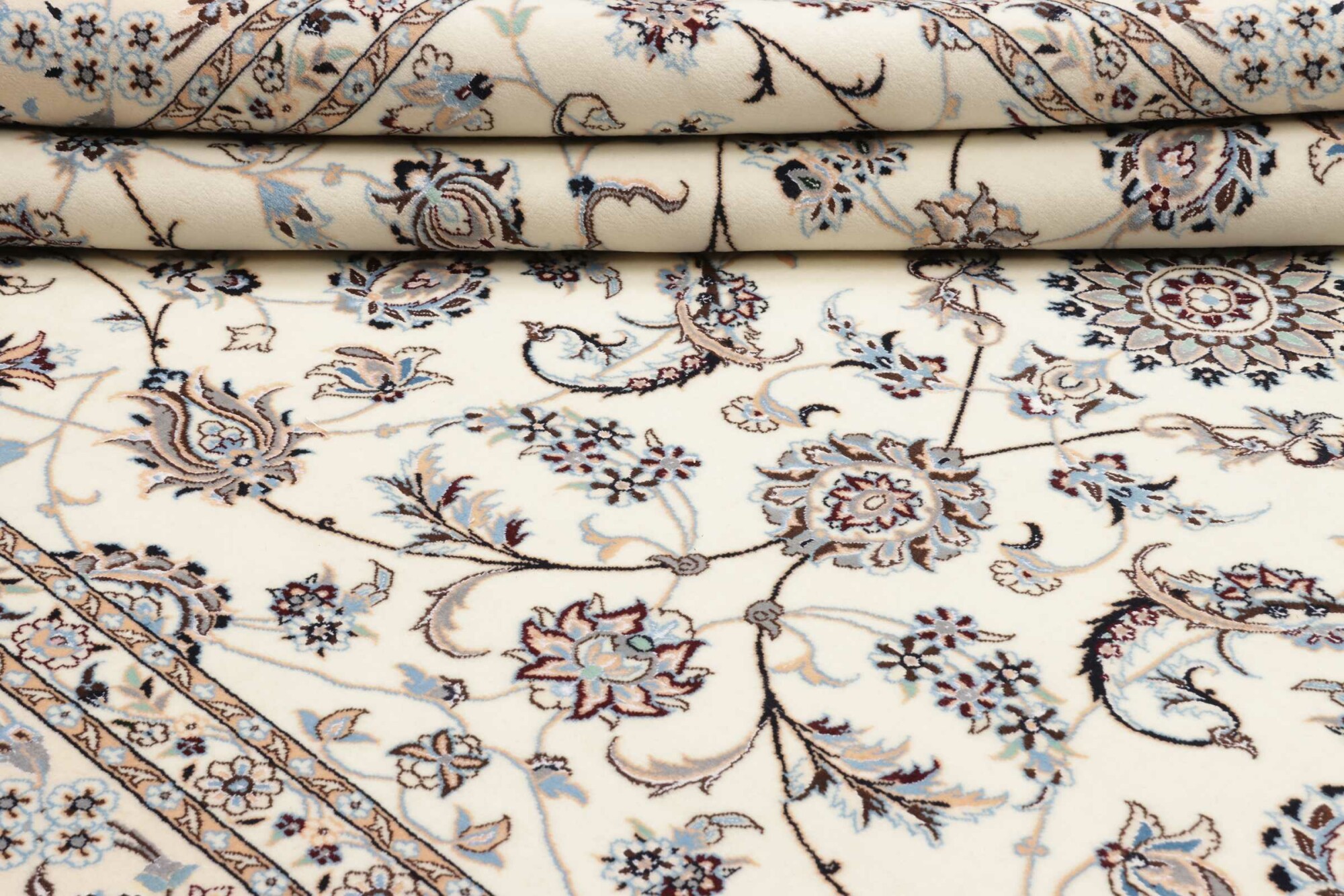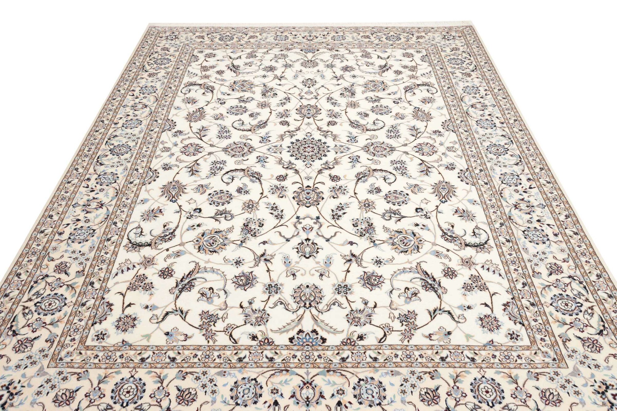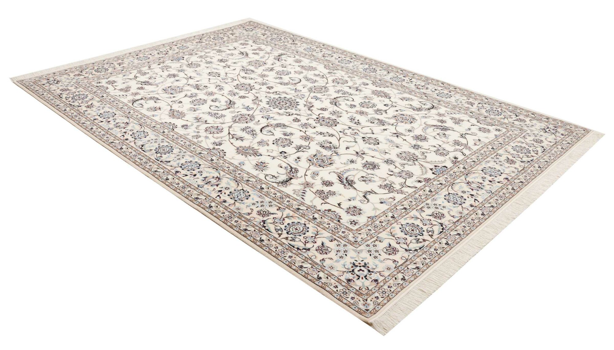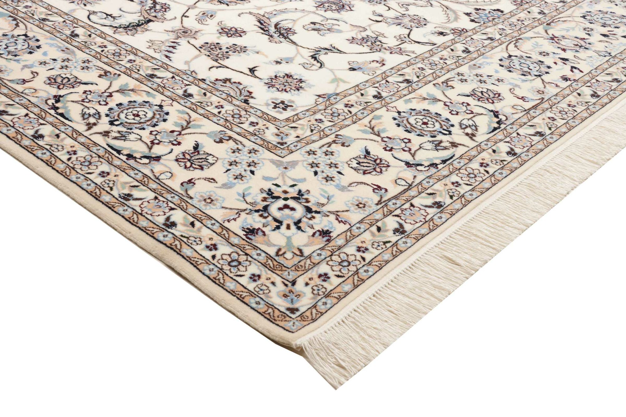 Nain carpets are high-quality Persian rugs woven in the Nain region of Iran. Known for their intricate designs, these carpets feature fine details, often incorporating floral and medallion patterns. Made from premium wool or silk, Nain carpets are prized for their elegance, durability, and smooth texture.
