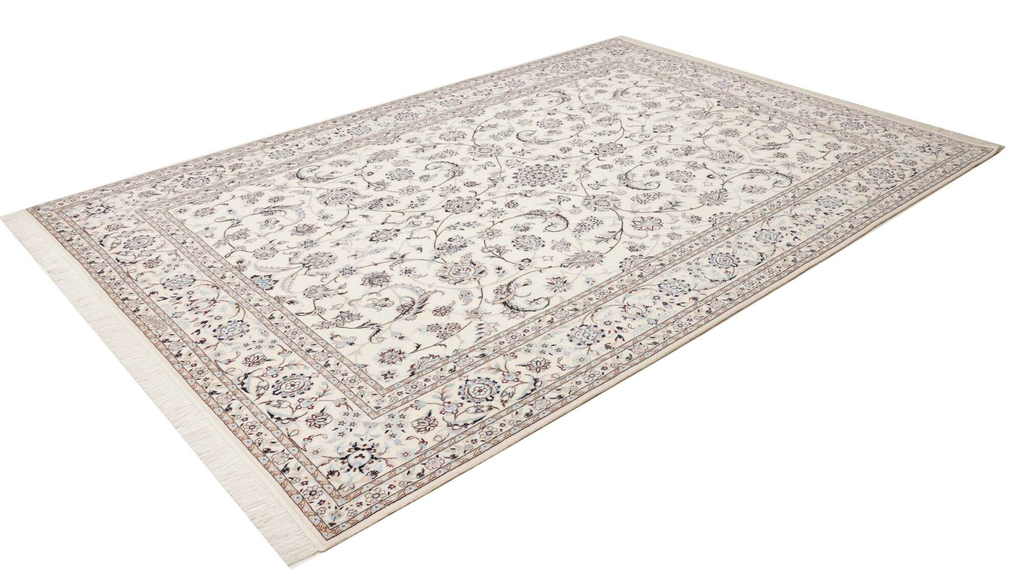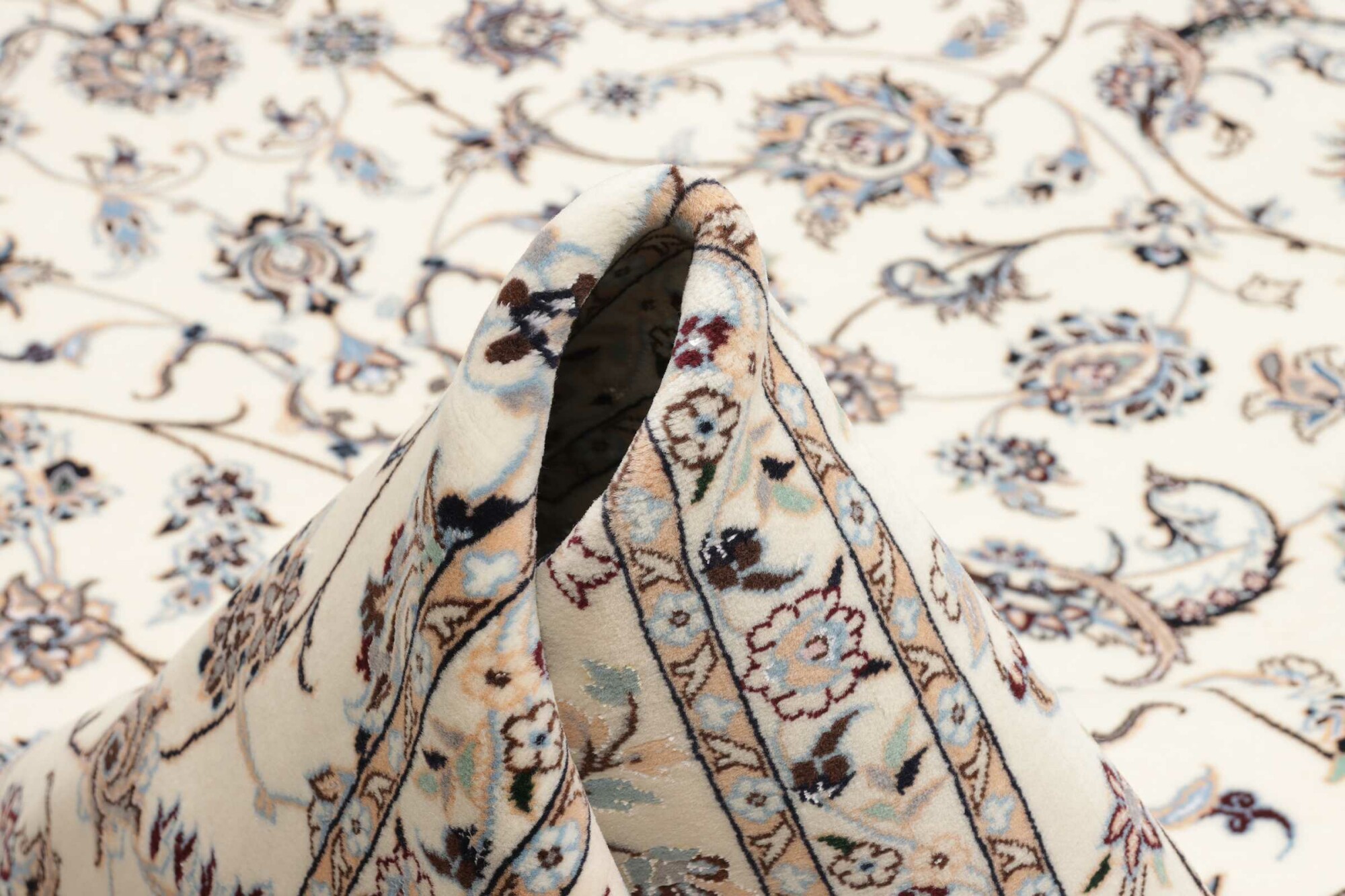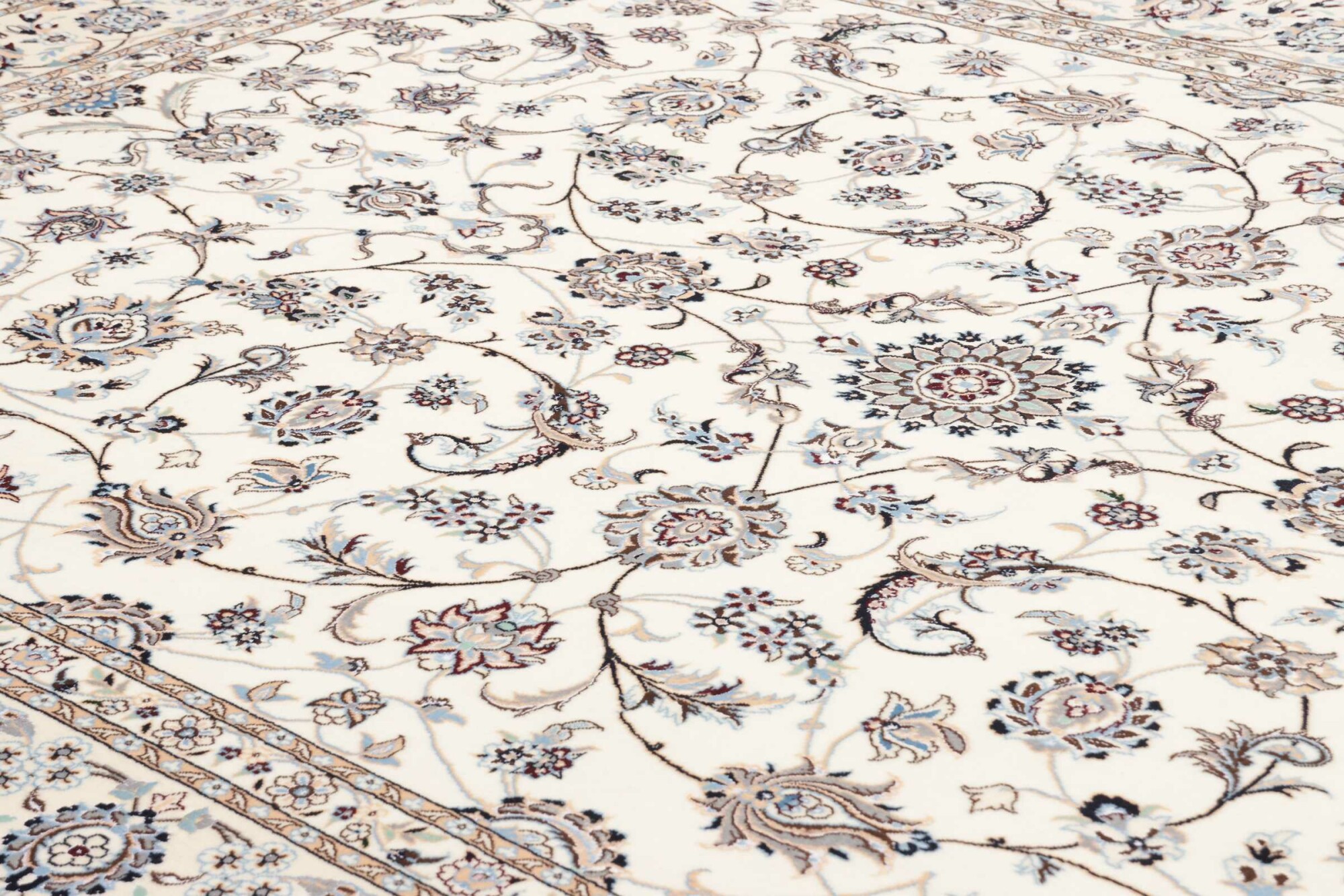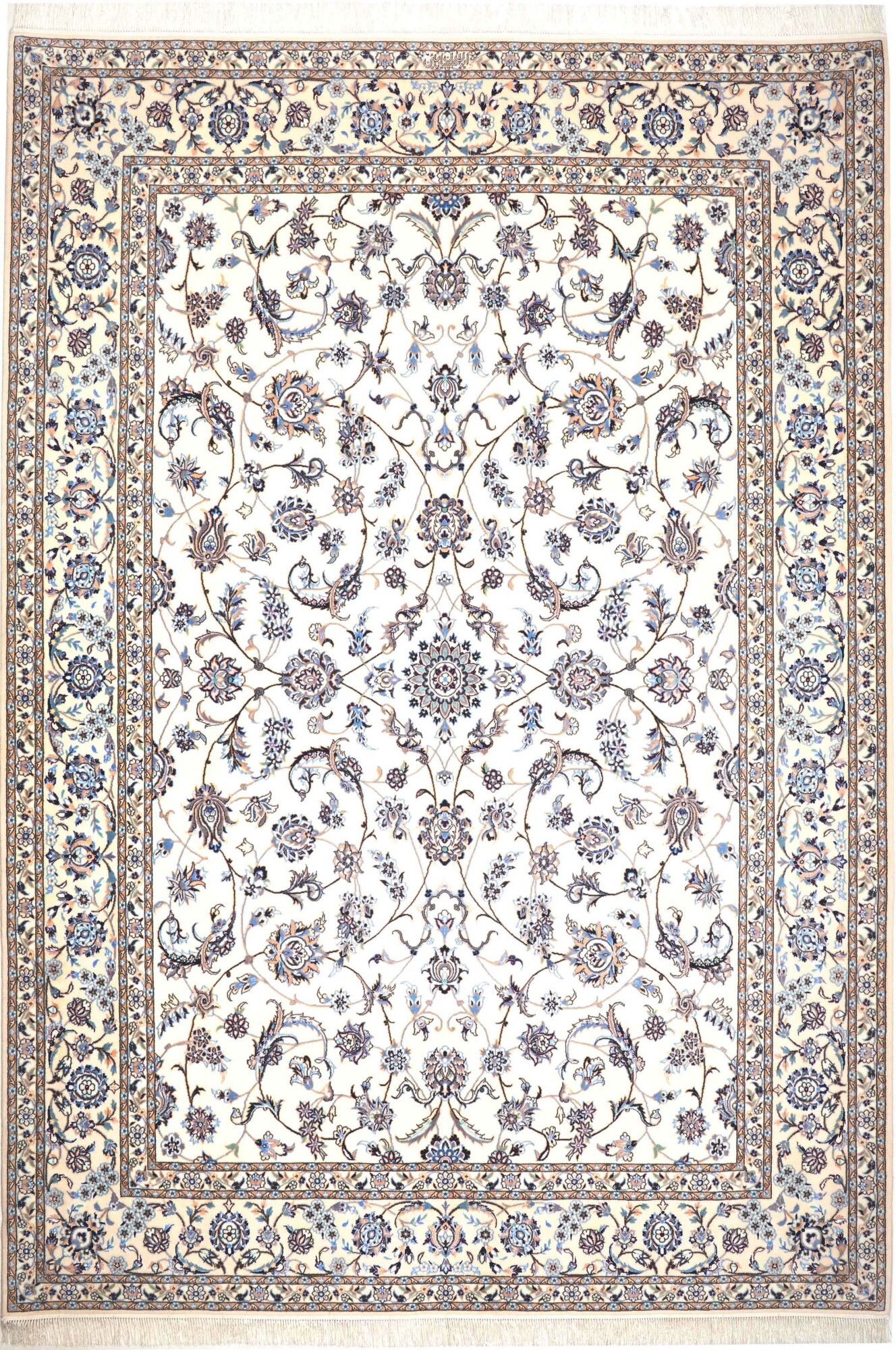 Nain carpets are high-quality Persian rugs woven in the Nain region of Iran. Known for their intricate designs, these carpets feature fine details, often incorporating floral and medallion patterns. Made from premium wool or silk, Nain carpets are prized for their elegance, durability, and smooth texture.