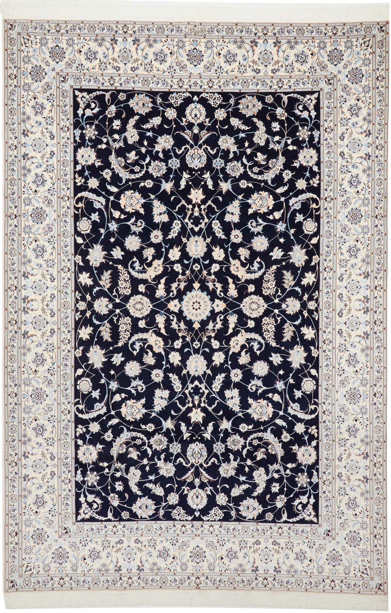 Nain carpets are high-quality Persian rugs woven in the Nain region of Iran. Known for their intricate designs, these carpets feature fine details, often incorporating floral and medallion patterns. Made from premium wool or silk, Nain carpets are prized for their elegance, durability, and smooth texture.
