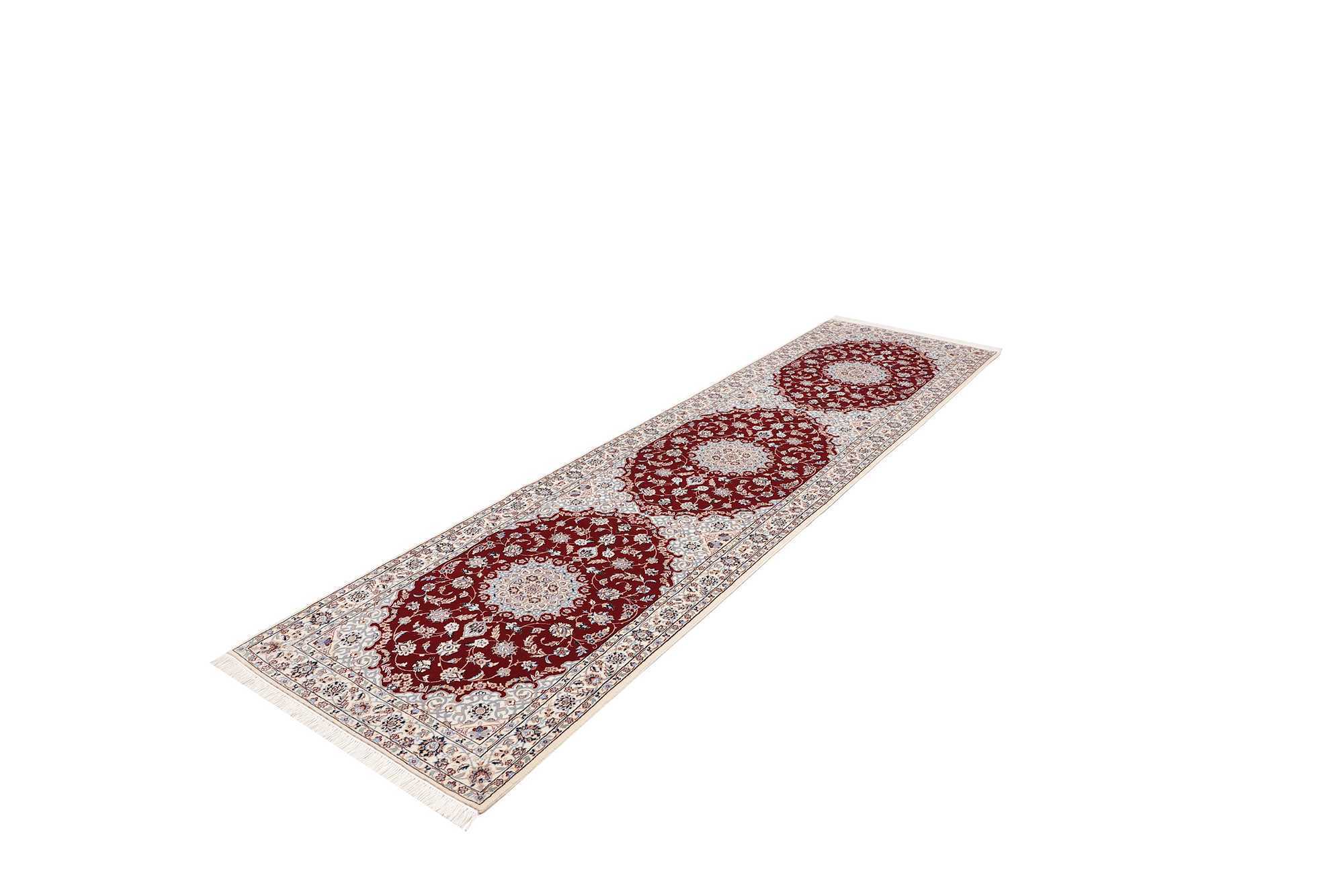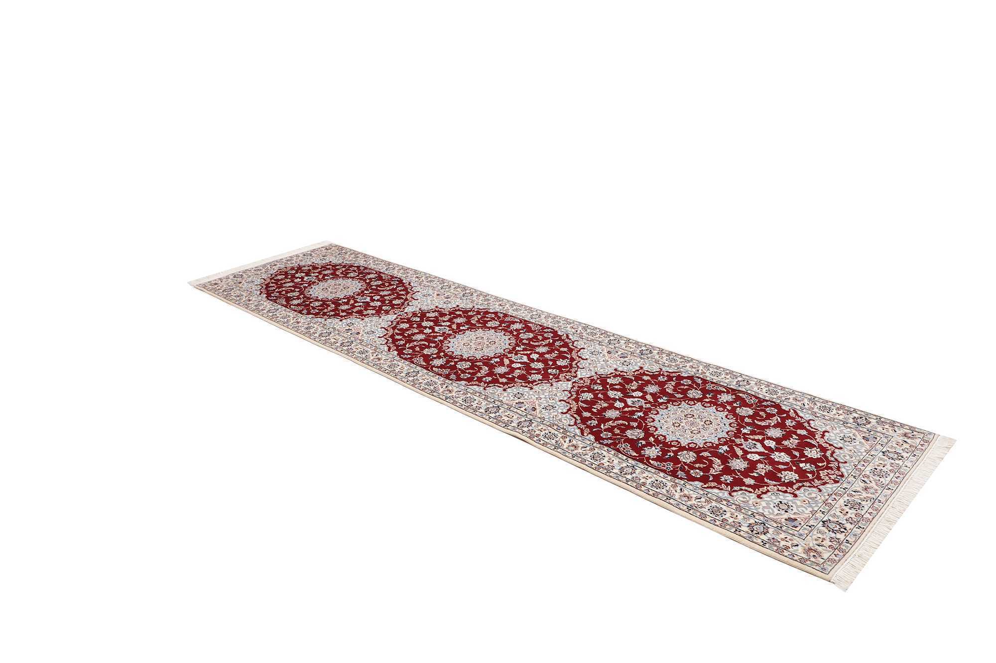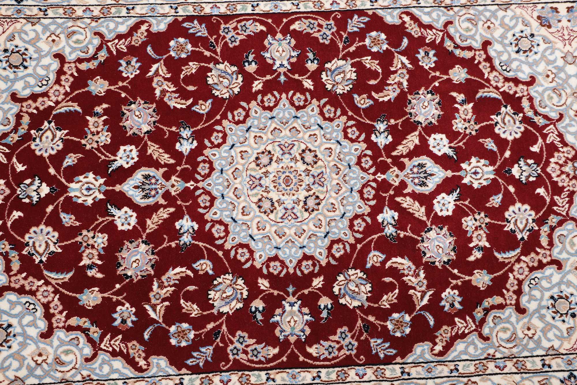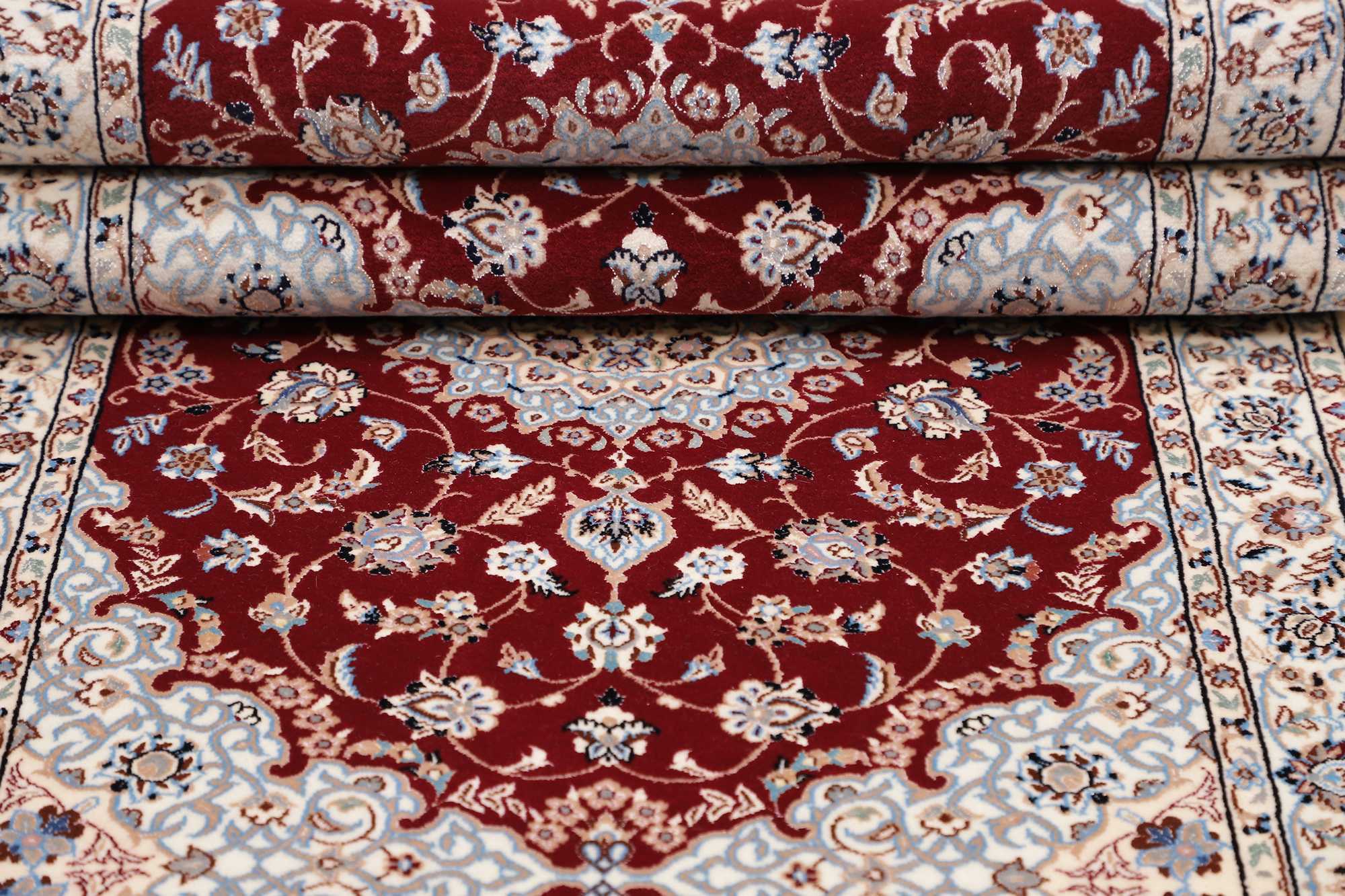 Nain carpets are high-quality Persian rugs woven in the Nain region of Iran. Known for their intricate designs, these carpets feature fine details, often incorporating floral and medallion patterns. Made from premium wool or silk, Nain carpets are prized for their elegance, durability, and smooth texture.