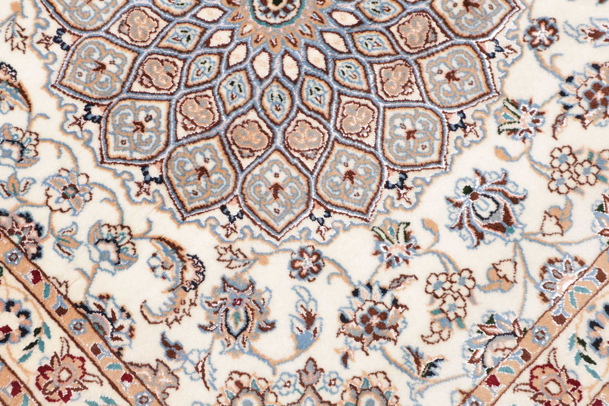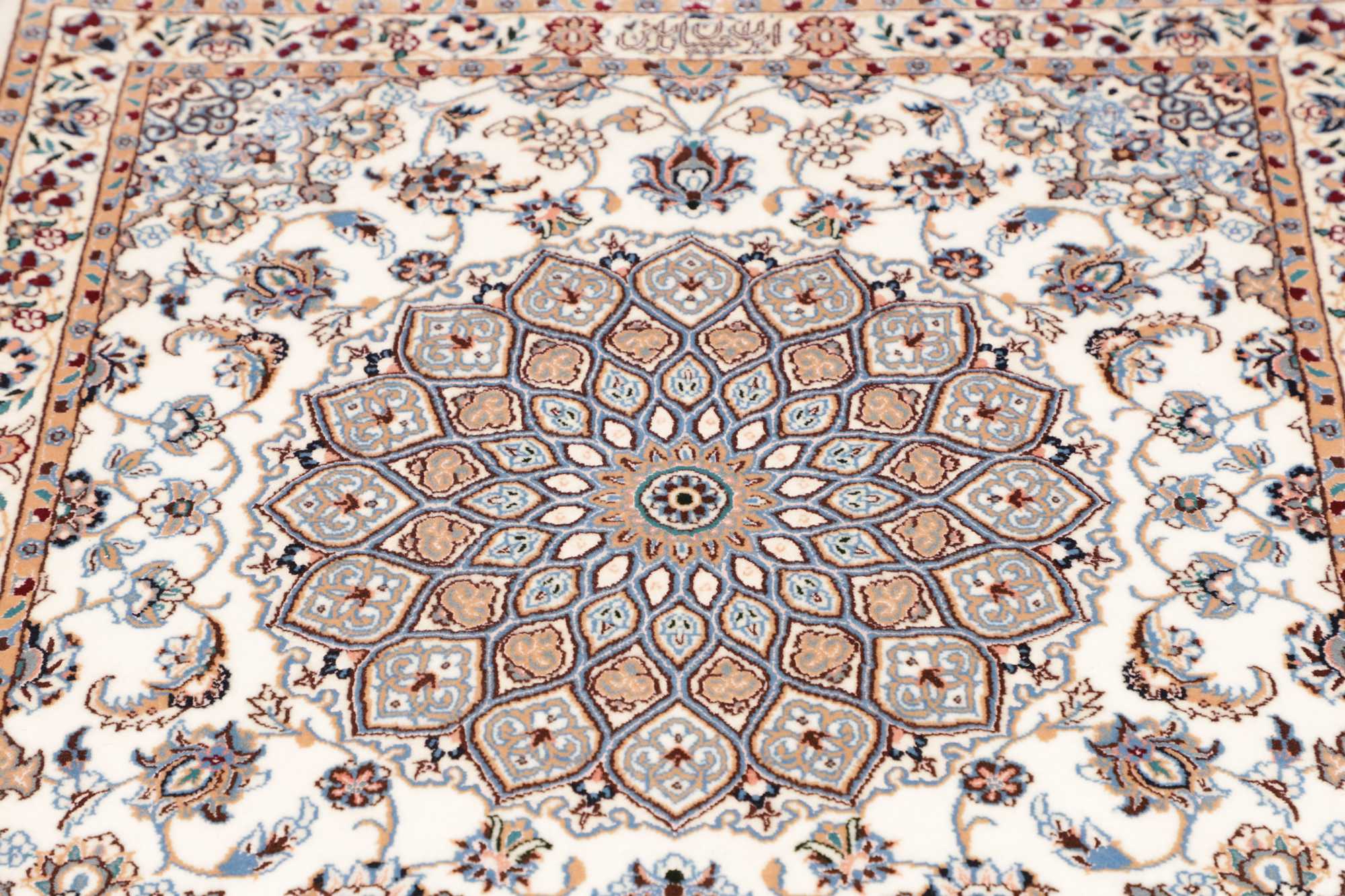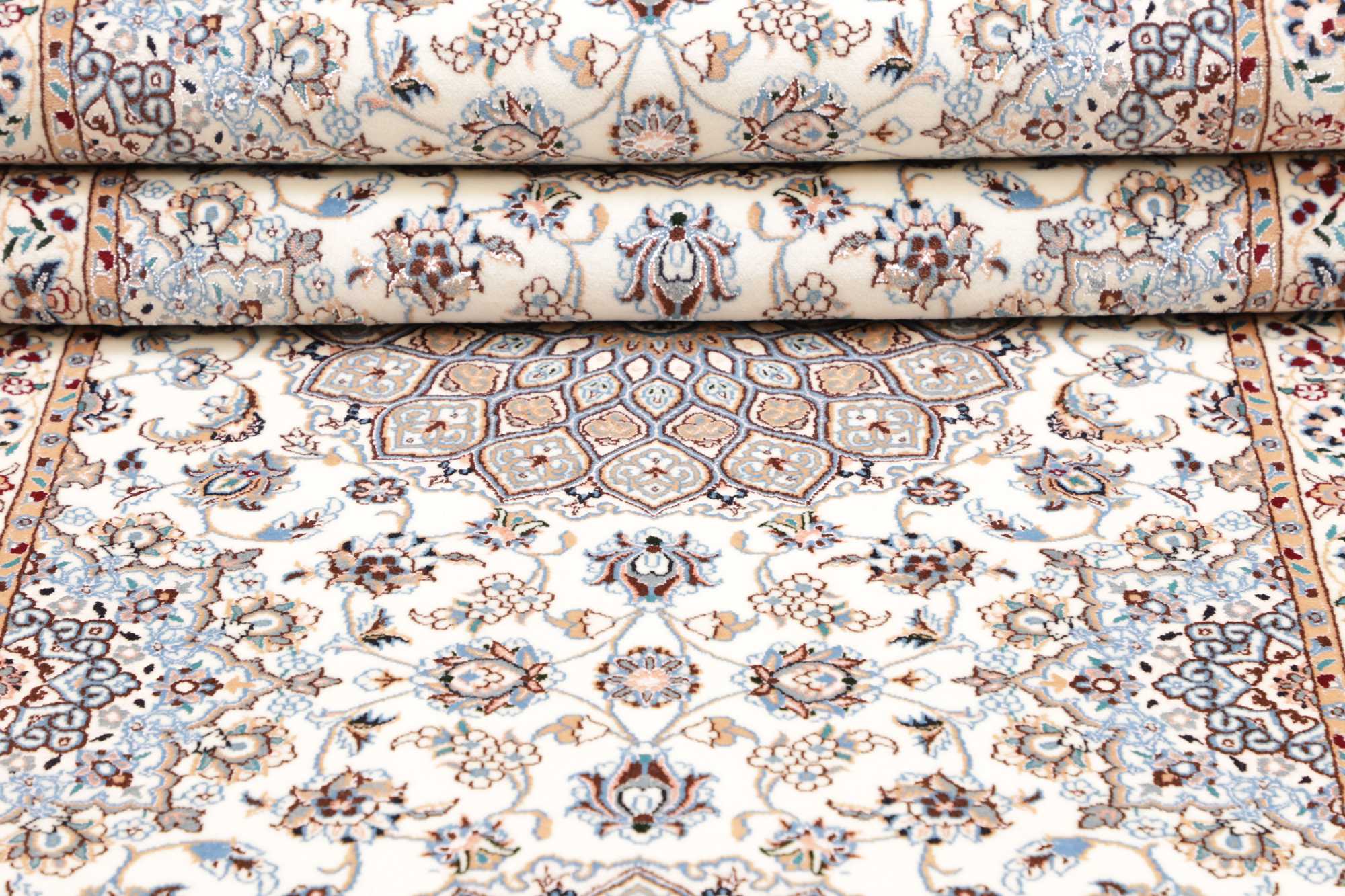 Nain carpets are high-quality Persian rugs woven in the Nain region of Iran. Known for their intricate designs, these carpets feature fine details, often incorporating floral and medallion patterns. Made from premium wool or silk, Nain carpets are prized for their elegance, durability, and smooth texture.