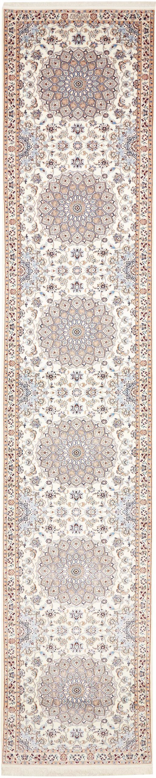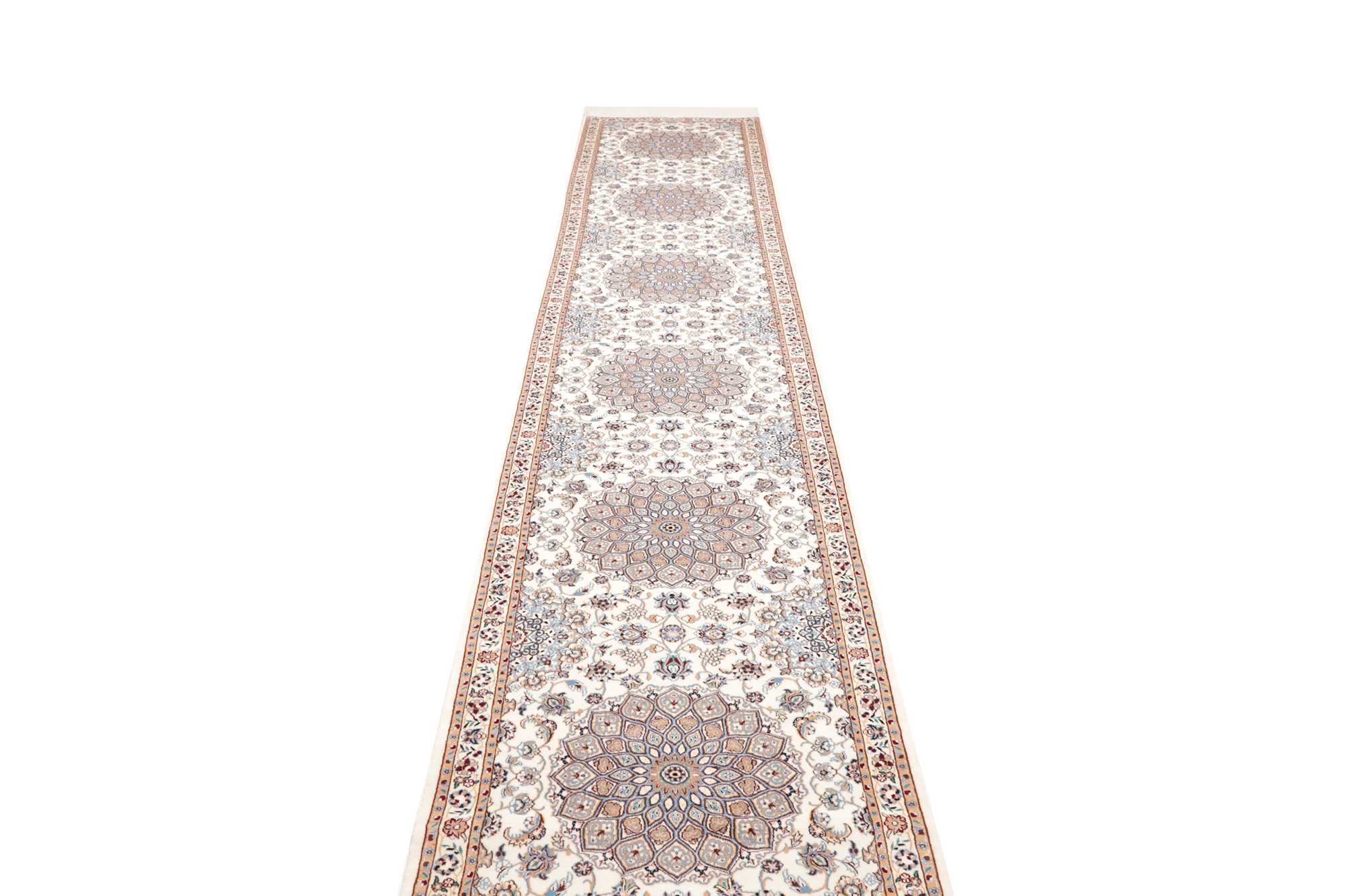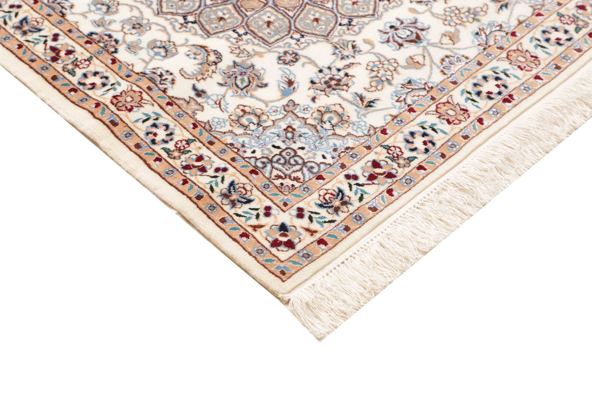 Nain carpets are high-quality Persian rugs woven in the Nain region of Iran. Known for their intricate designs, these carpets feature fine details, often incorporating floral and medallion patterns. Made from premium wool or silk, Nain carpets are prized for their elegance, durability, and smooth texture.