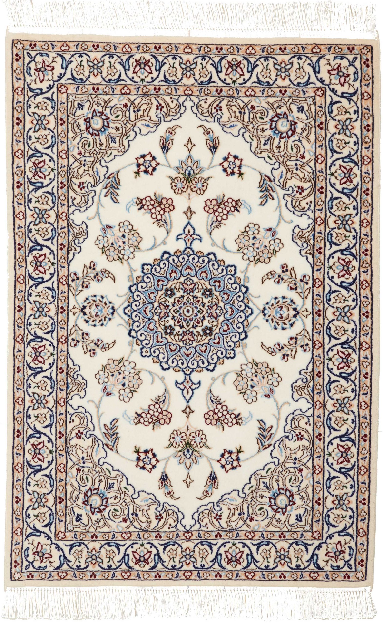 Nain carpets are high-quality Persian rugs woven in the Nain region of Iran. Known for their intricate designs, these carpets feature fine details, often incorporating floral and medallion patterns. Made from premium wool or silk, Nain carpets are prized for their elegance, durability, and smooth texture.
