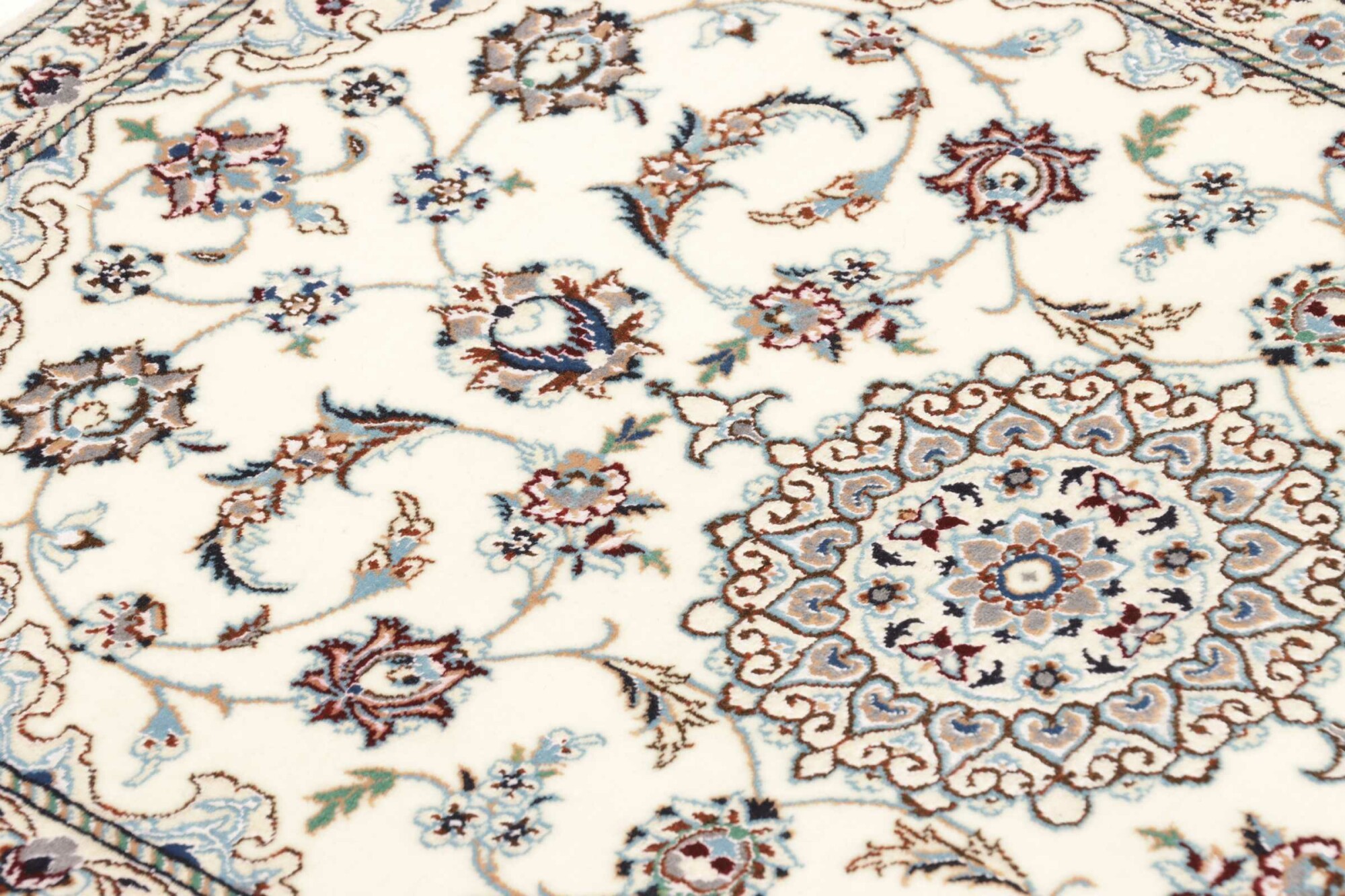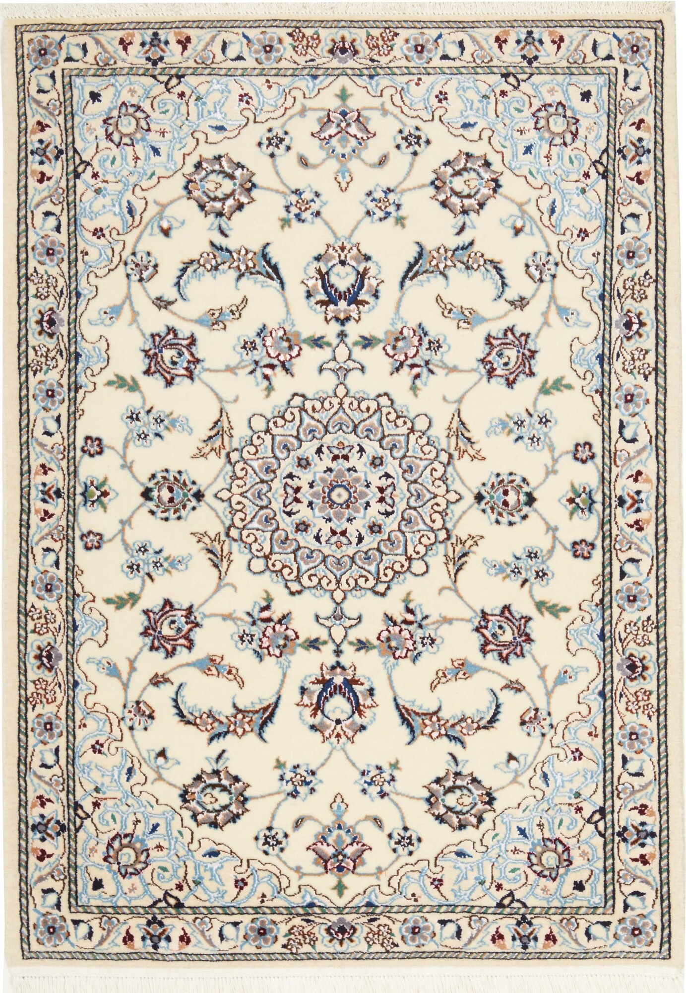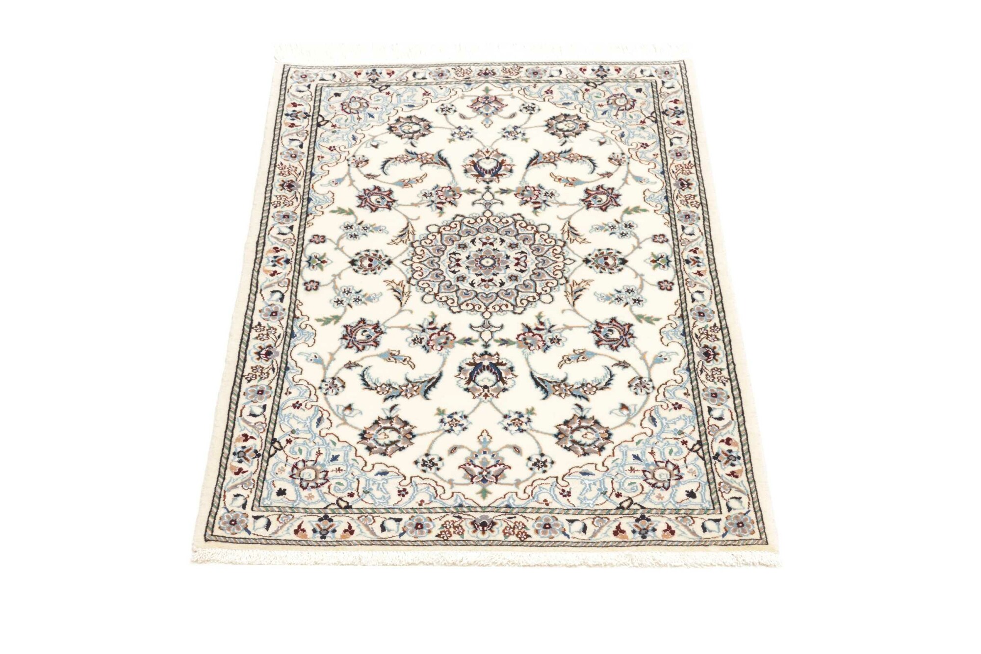 Nain carpets are high-quality Persian rugs woven in the Nain region of Iran. Known for their intricate designs, these carpets feature fine details, often incorporating floral and medallion patterns. Made from premium wool or silk, Nain carpets are prized for their elegance, durability, and smooth texture.