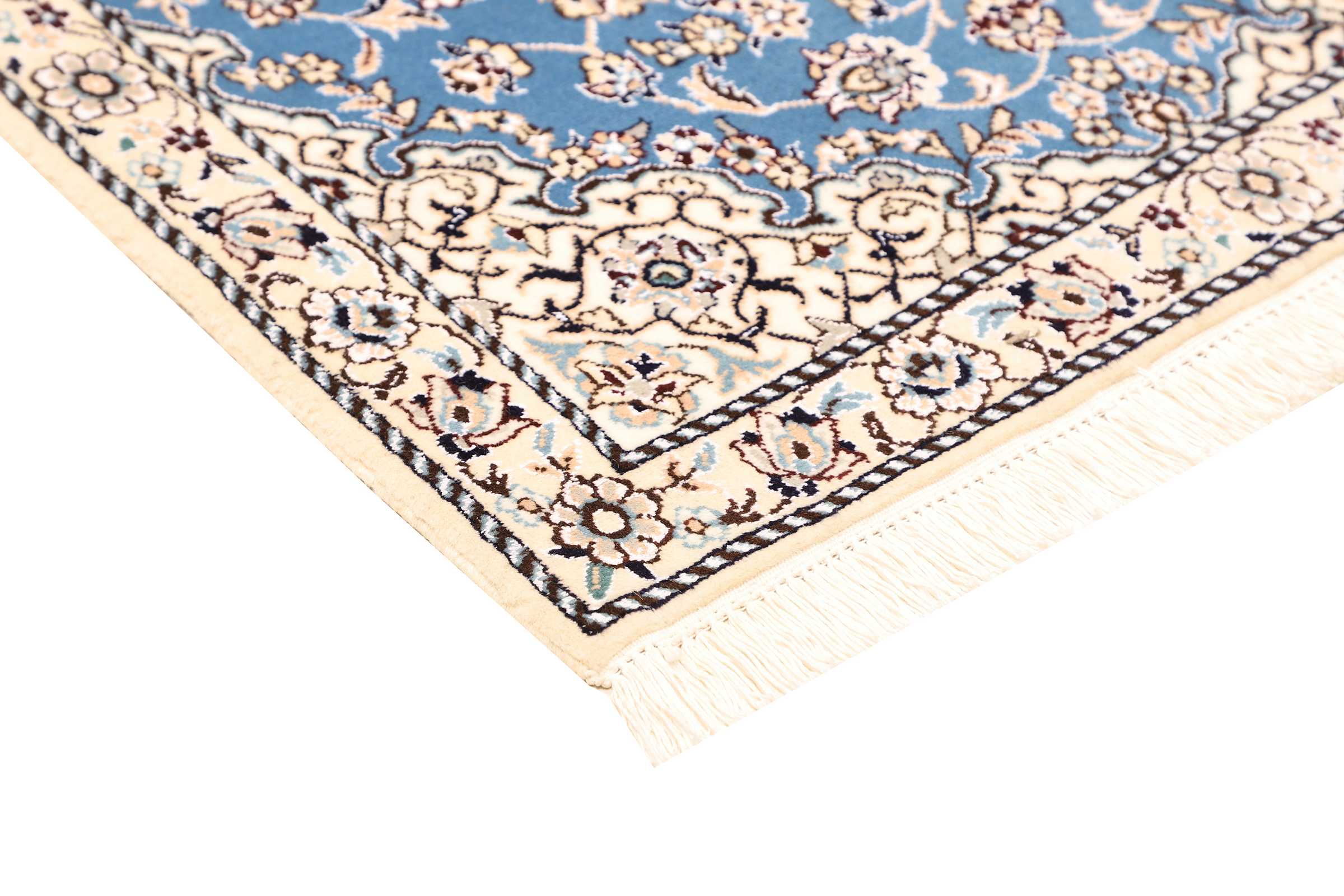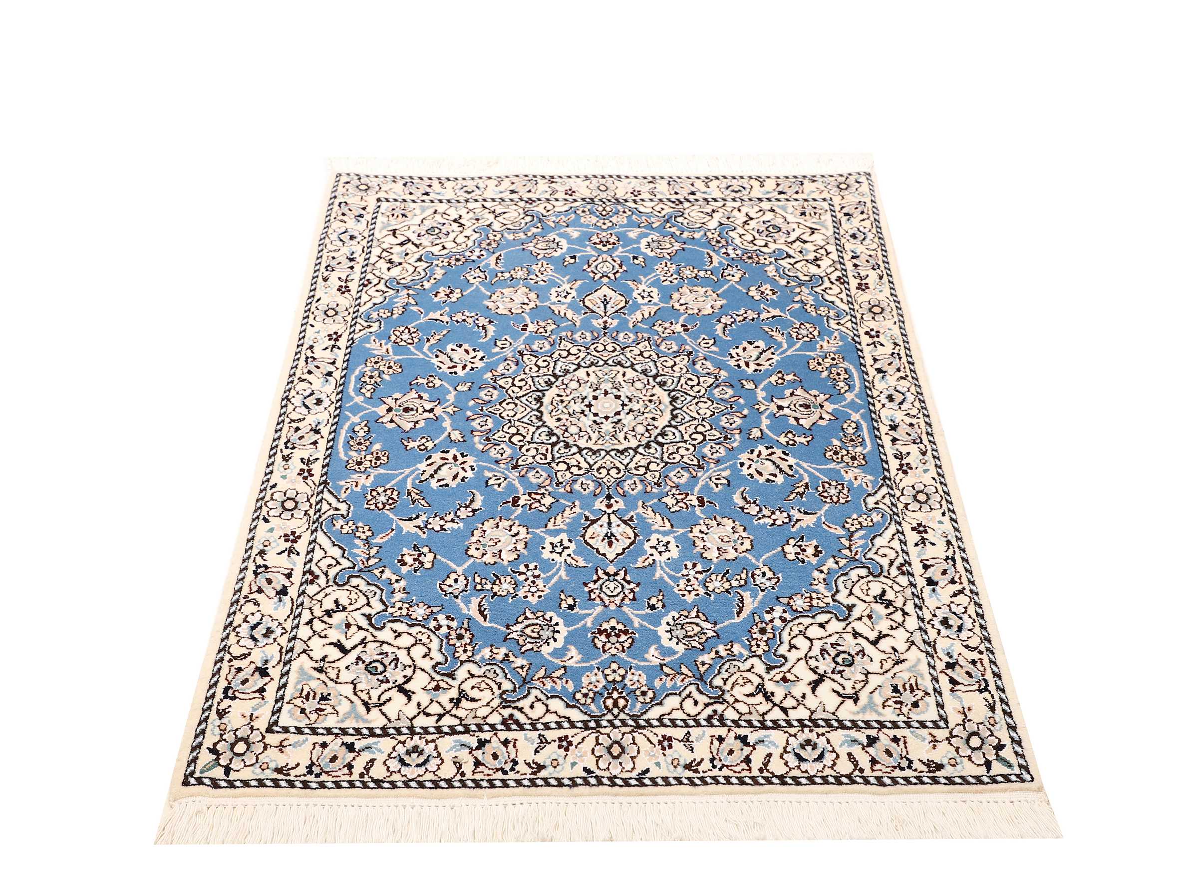 Nain carpets are high-quality Persian rugs woven in the Nain region of Iran. Known for their intricate designs, these carpets feature fine details, often incorporating floral and medallion patterns. Made from premium wool or silk, Nain carpets are prized for their elegance, durability, and smooth texture.