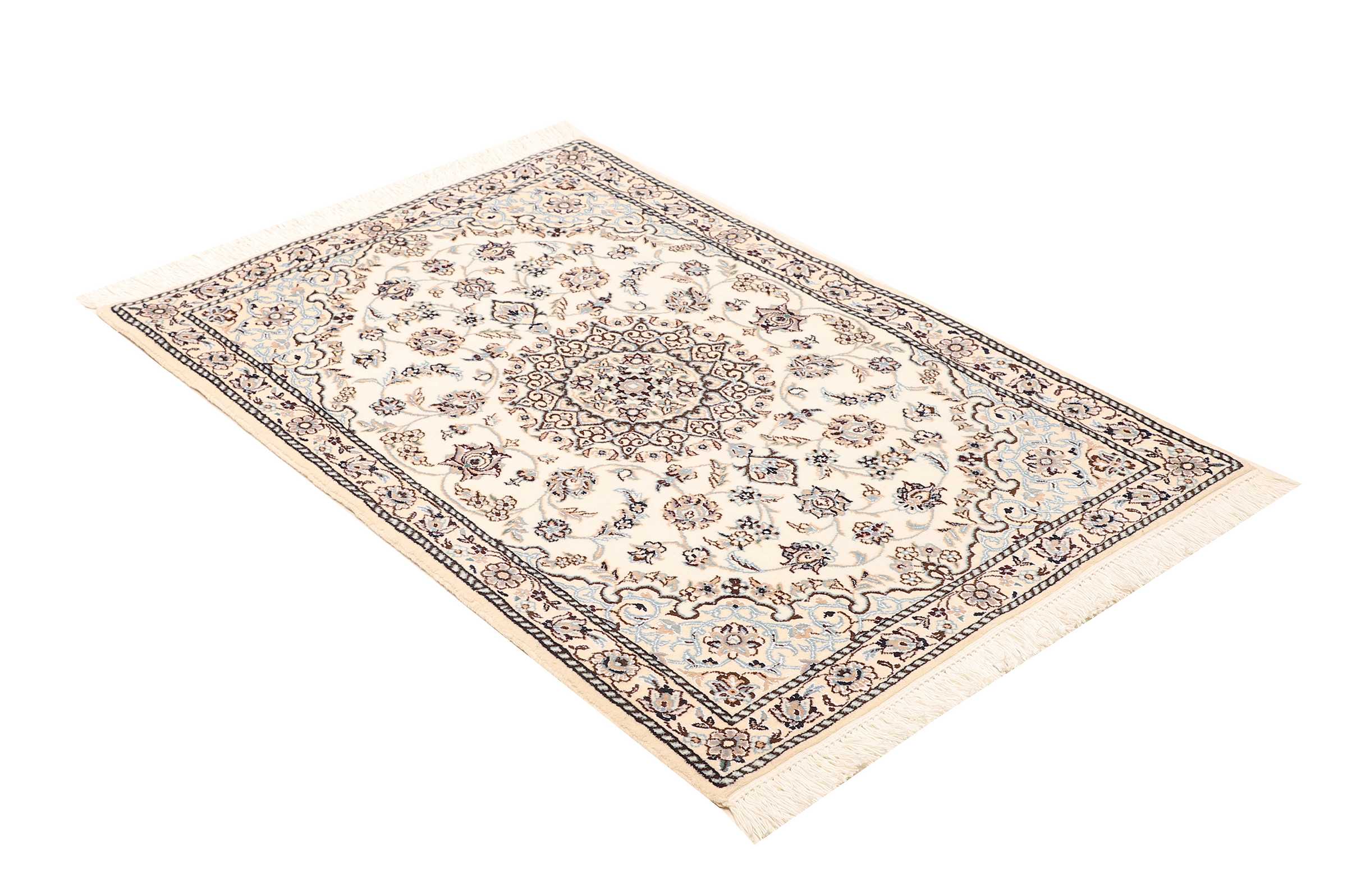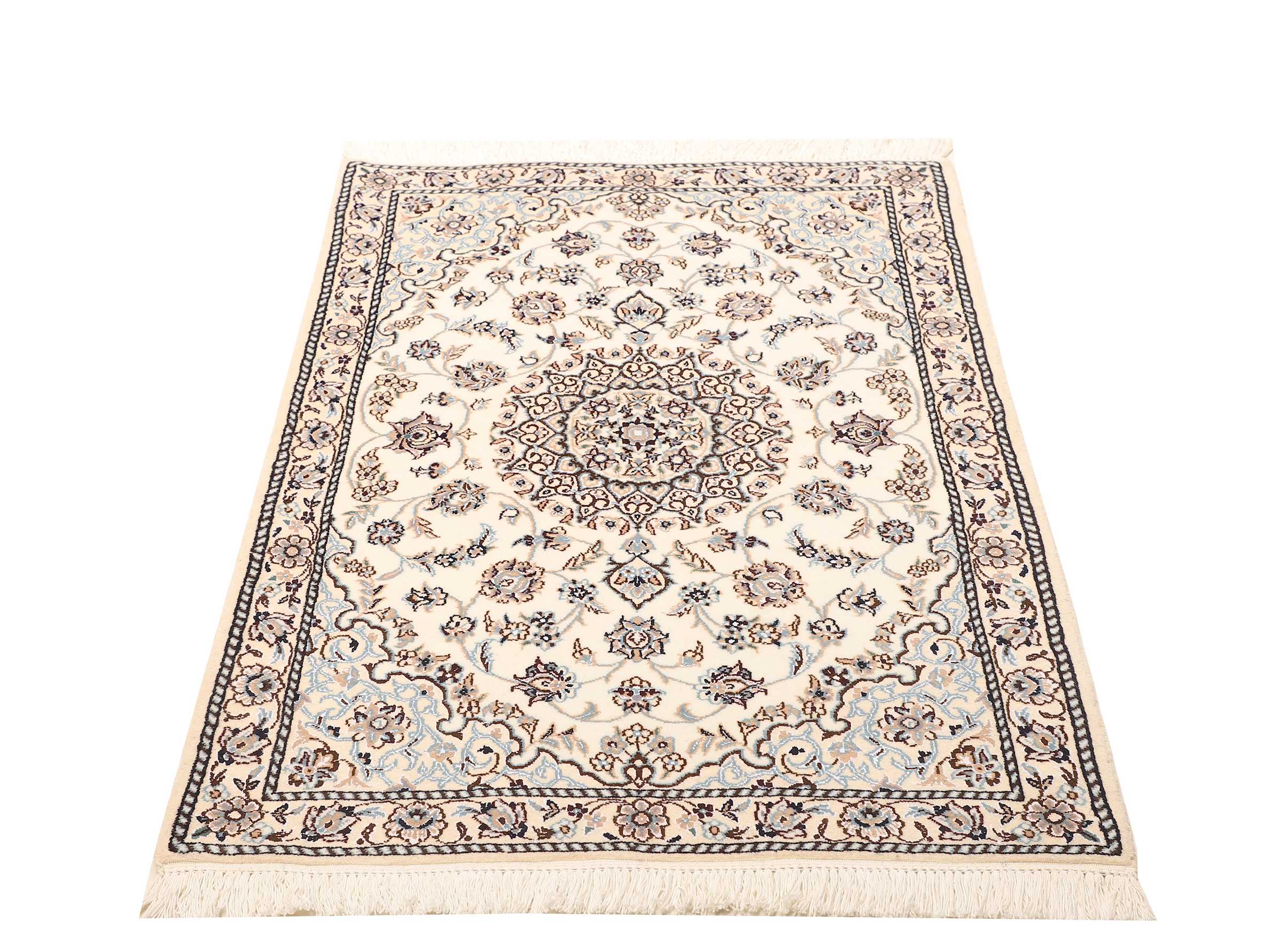 Nain carpets are high-quality Persian rugs woven in the Nain region of Iran. Known for their intricate designs, these carpets feature fine details, often incorporating floral and medallion patterns. Made from premium wool or silk, Nain carpets are prized for their elegance, durability, and smooth texture.