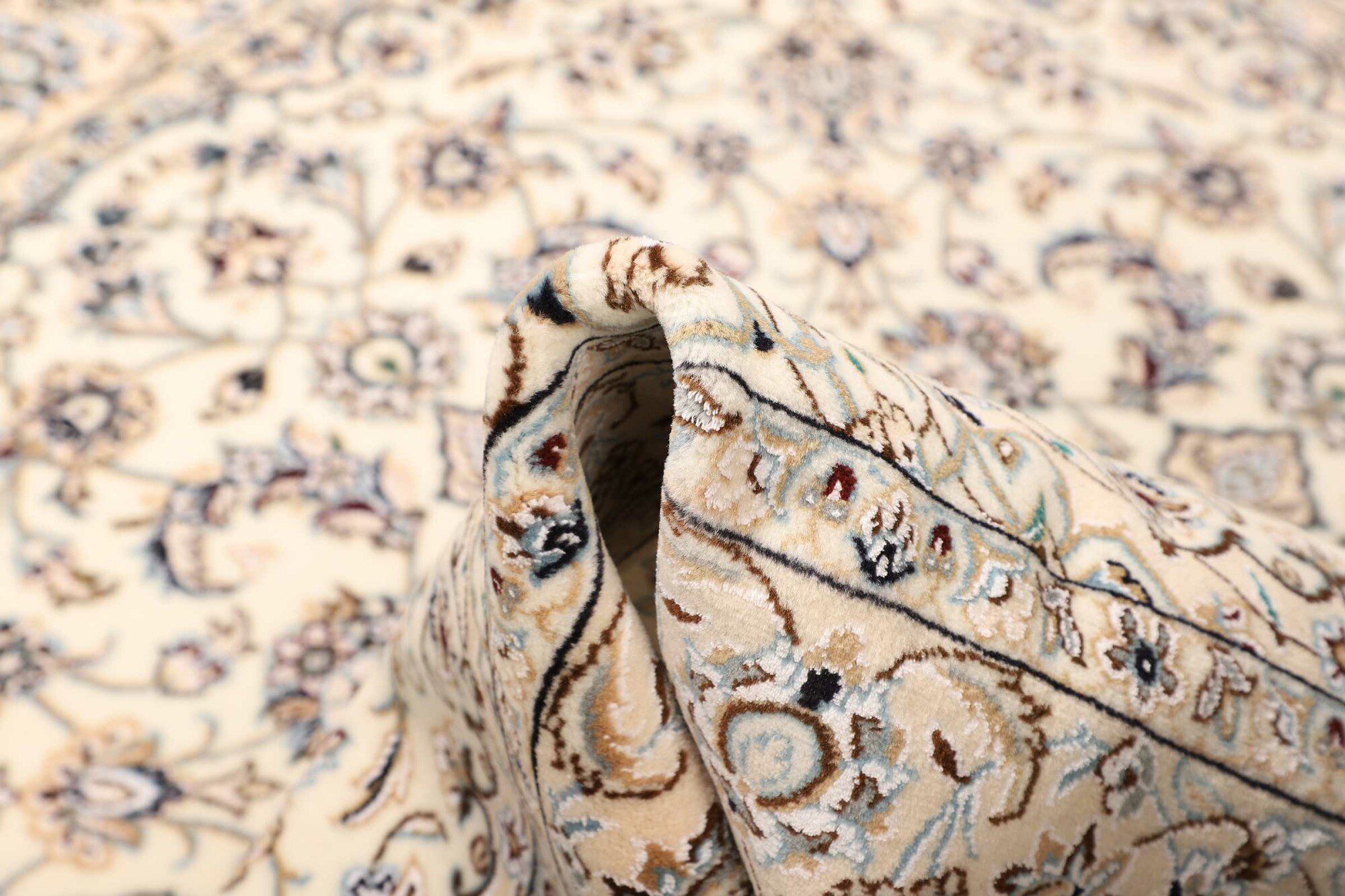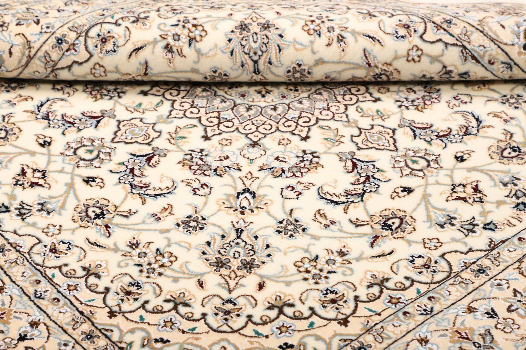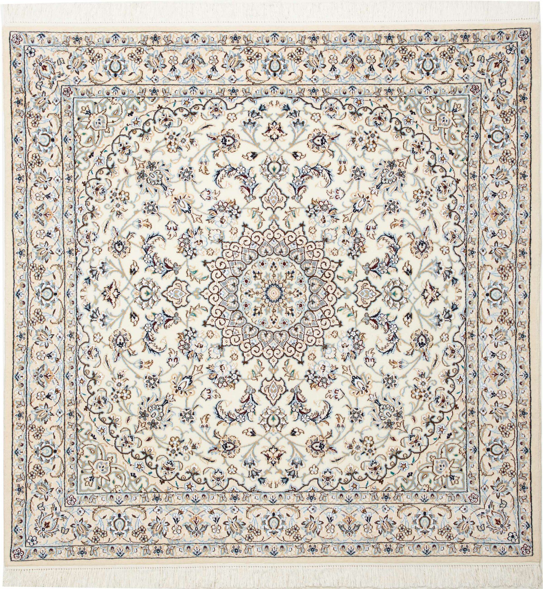 Nain carpets are high-quality Persian rugs woven in the Nain region of Iran. Known for their intricate designs, these carpets feature fine details, often incorporating floral and medallion patterns. Made from premium wool or silk, Nain carpets are prized for their elegance, durability, and smooth texture.