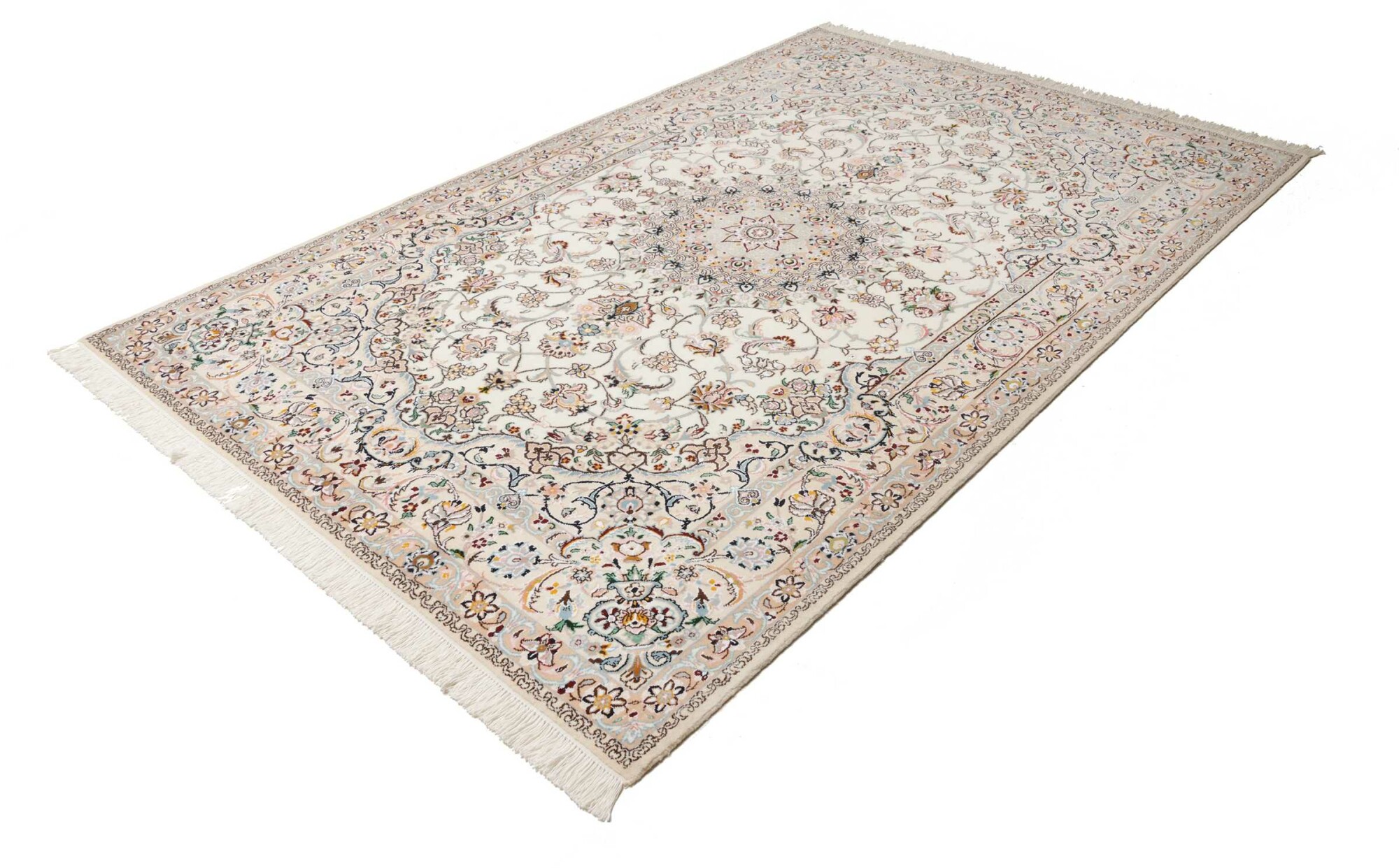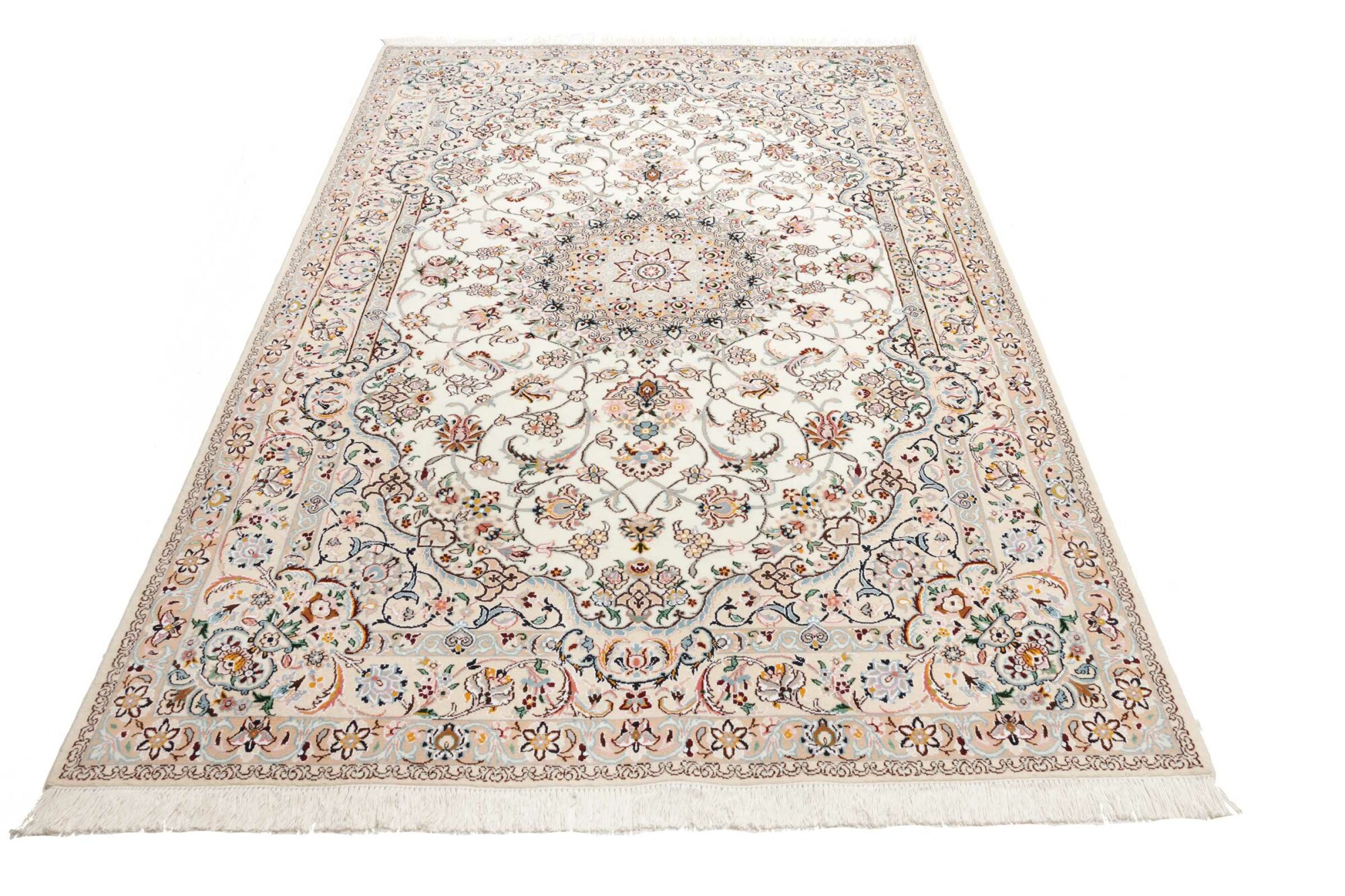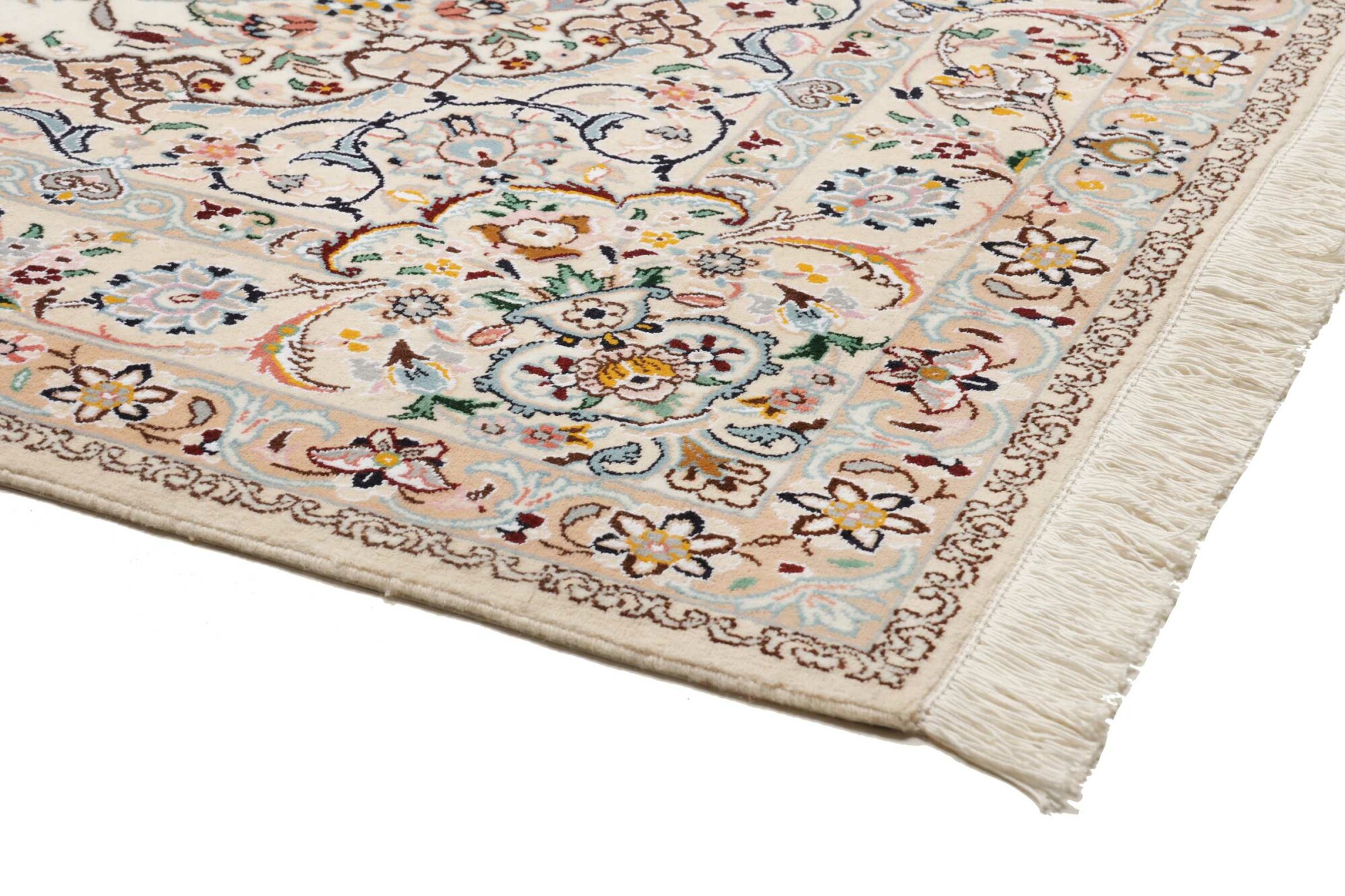 Nain carpets are high-quality Persian rugs woven in the Nain region of Iran. Known for their intricate designs, these carpets feature fine details, often incorporating floral and medallion patterns. Made from premium wool or silk, Nain carpets are prized for their elegance, durability, and smooth texture.