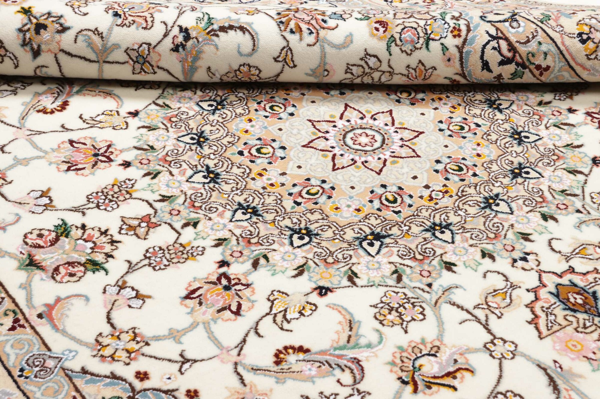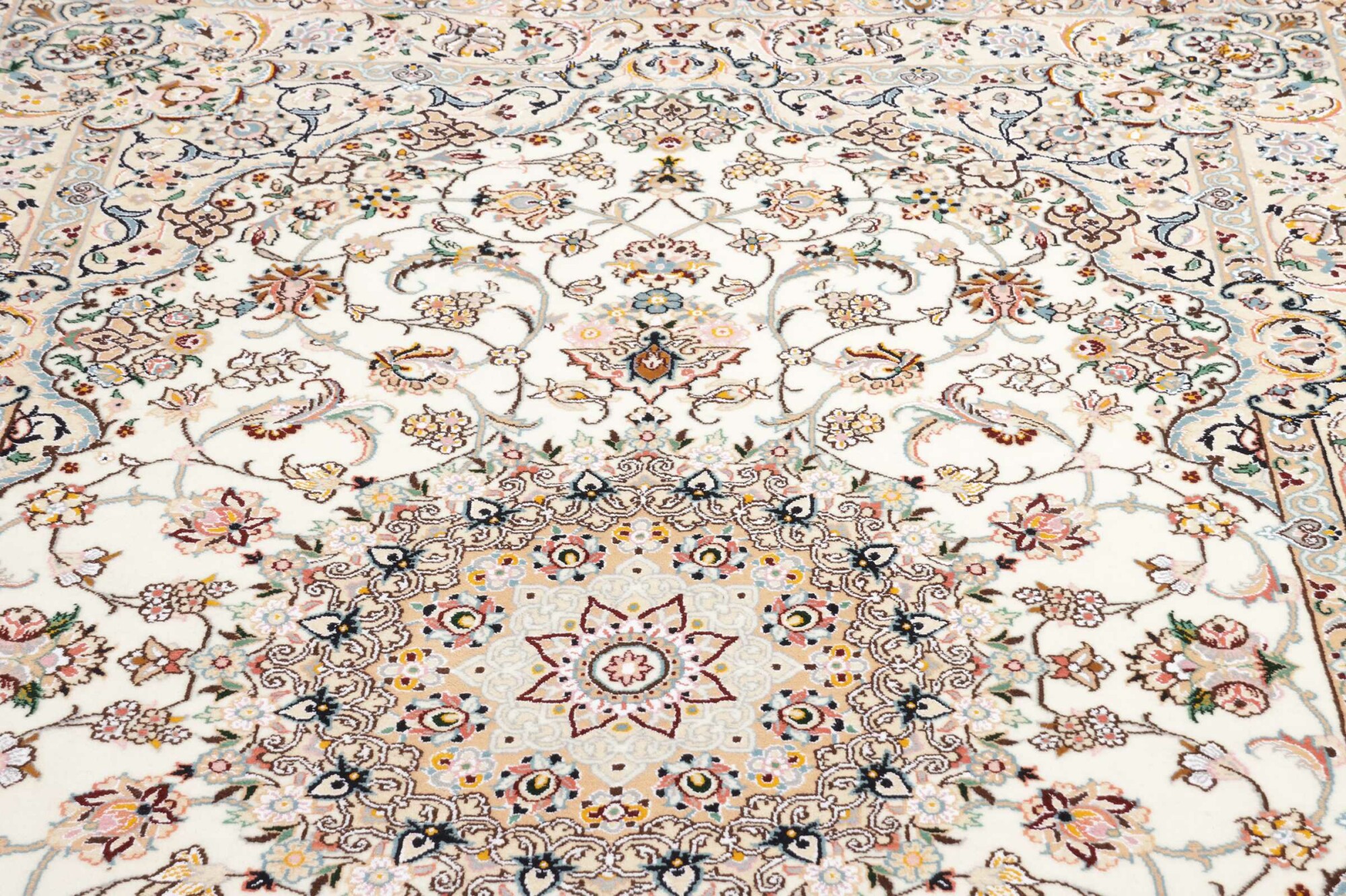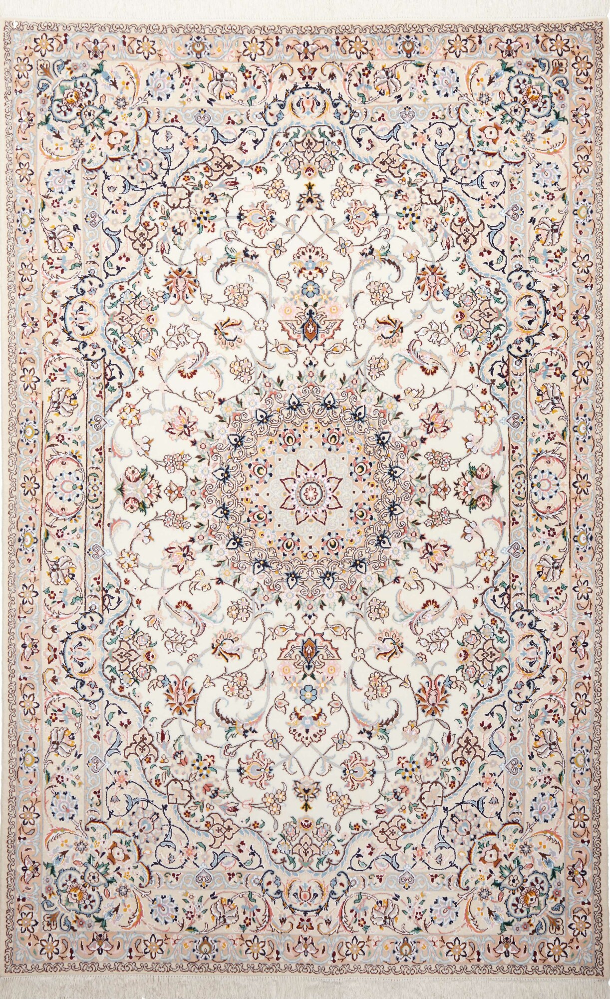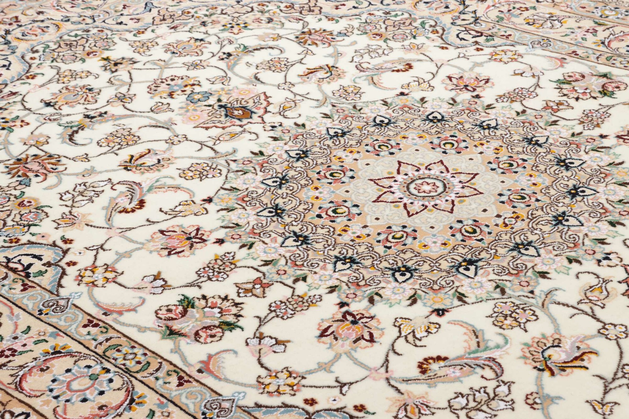 Nain carpets are high-quality Persian rugs woven in the Nain region of Iran. Known for their intricate designs, these carpets feature fine details, often incorporating floral and medallion patterns. Made from premium wool or silk, Nain carpets are prized for their elegance, durability, and smooth texture.