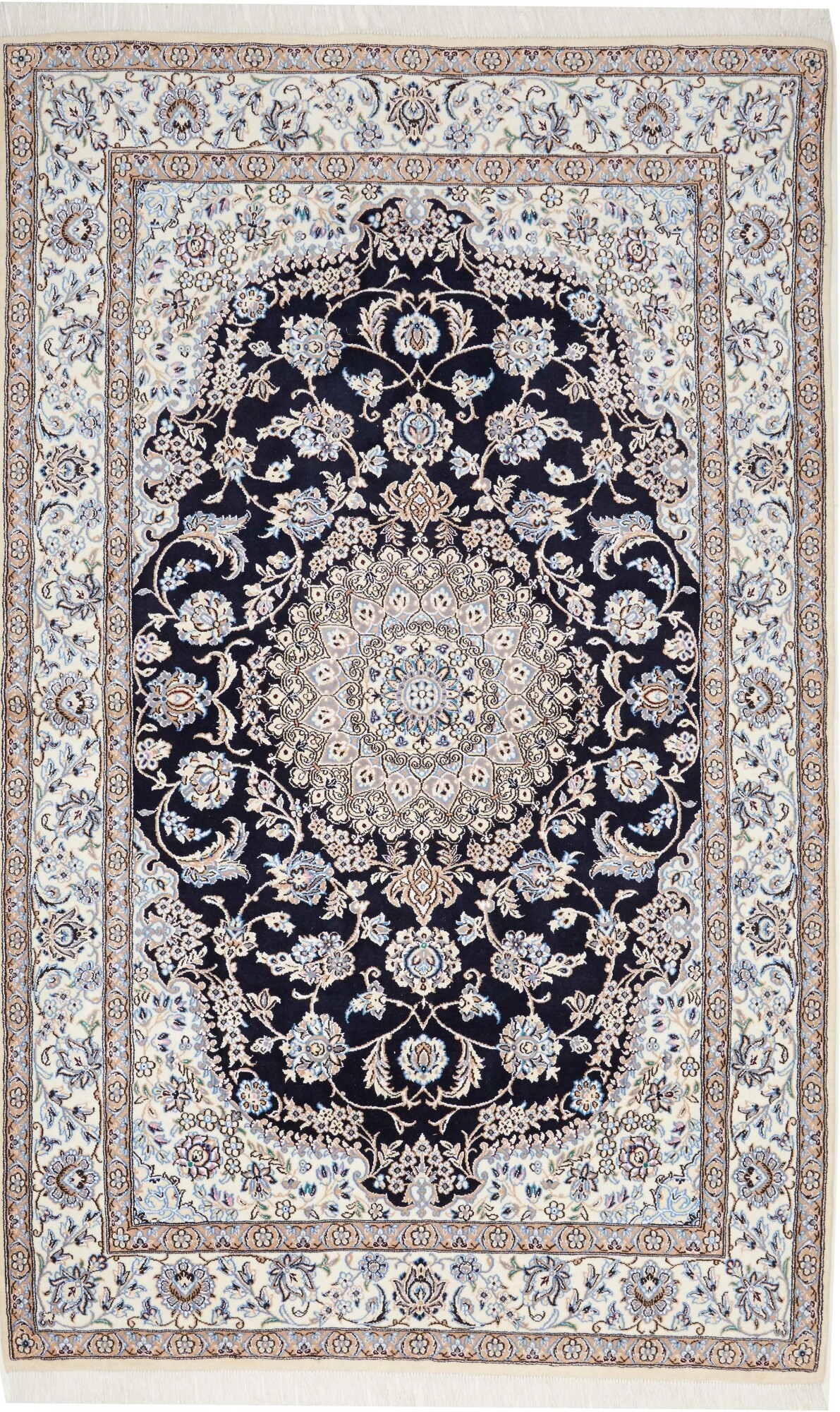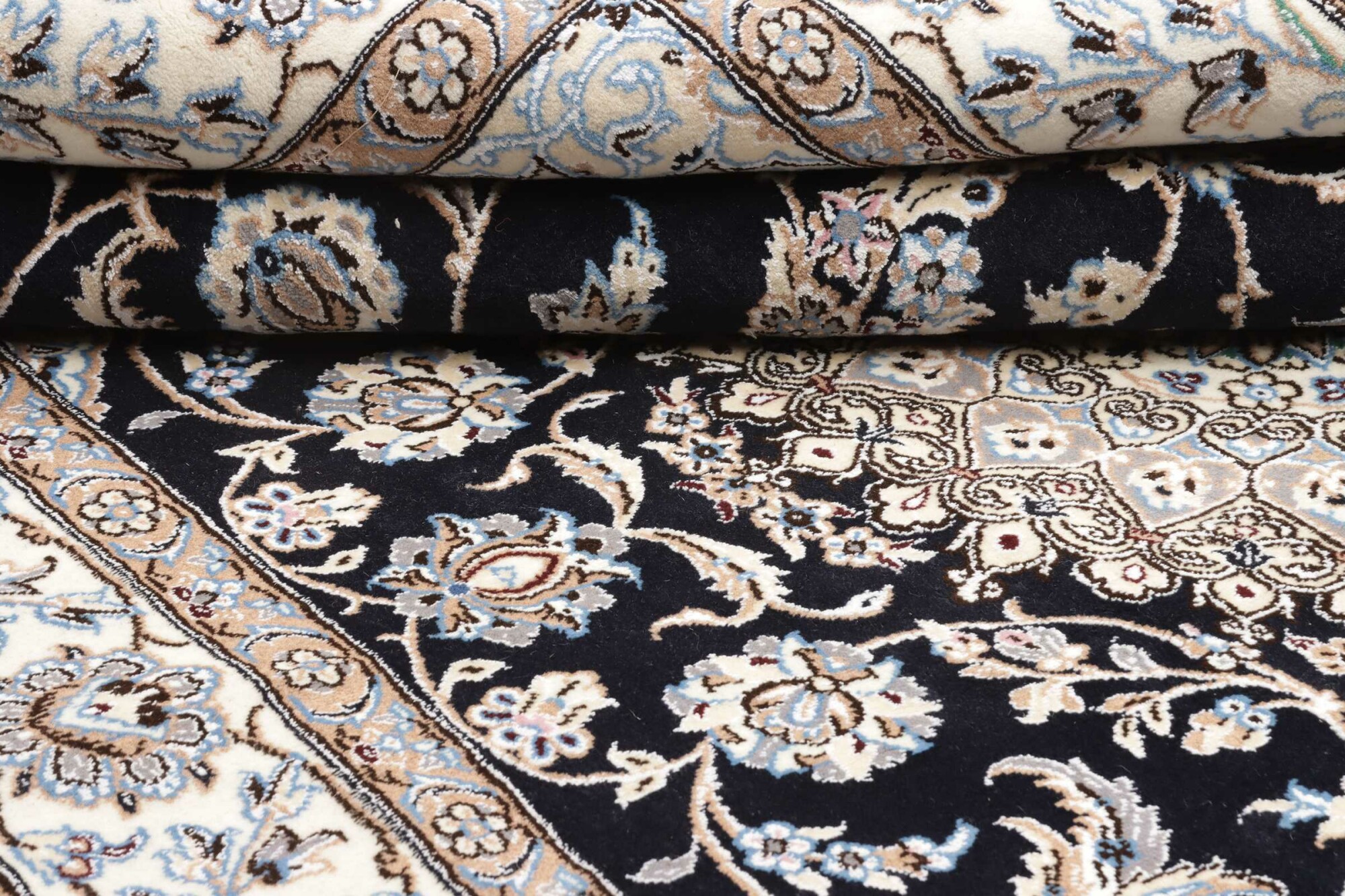 Nain carpets are high-quality Persian rugs woven in the Nain region of Iran. Known for their intricate designs, these carpets feature fine details, often incorporating floral and medallion patterns. Made from premium wool or silk, Nain carpets are prized for their elegance, durability, and smooth texture.