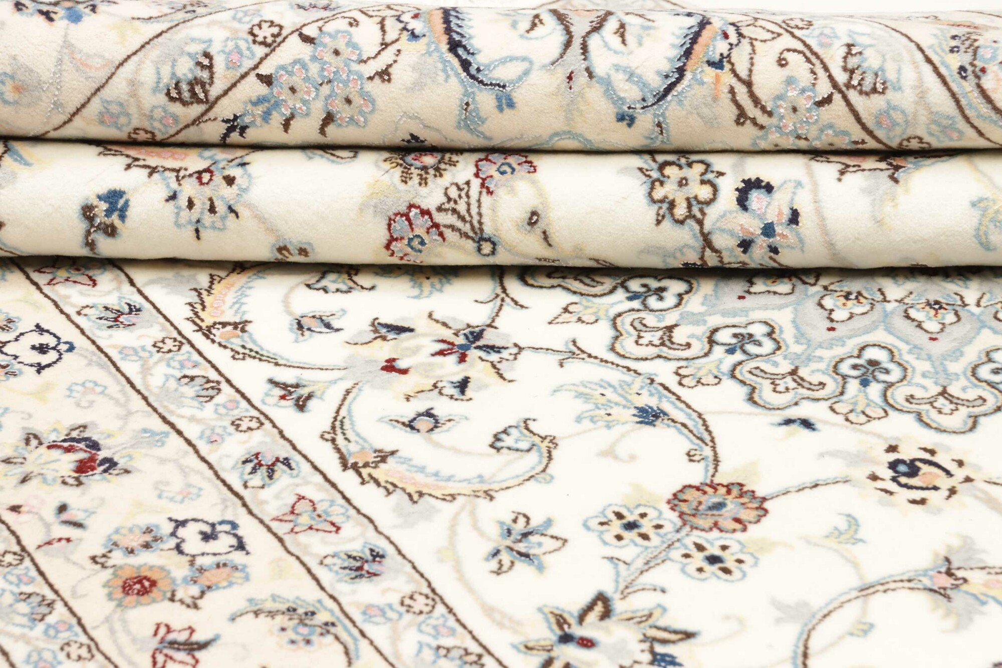 Nain carpets are high-quality Persian rugs woven in the Nain region of Iran. Known for their intricate designs, these carpets feature fine details, often incorporating floral and medallion patterns. Made from premium wool or silk, Nain carpets are prized for their elegance, durability, and smooth texture.