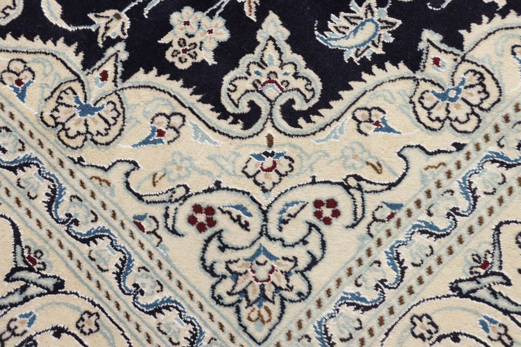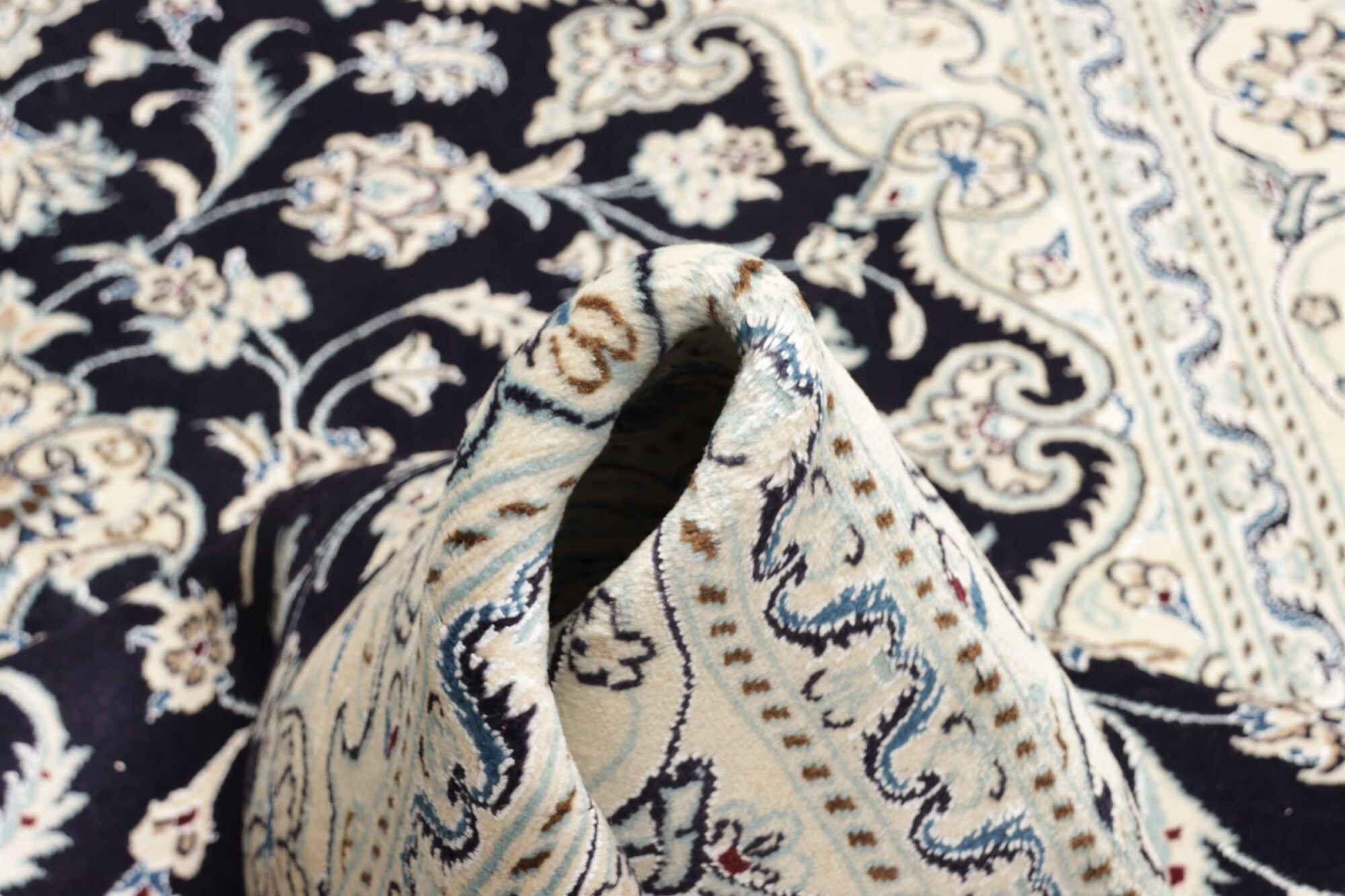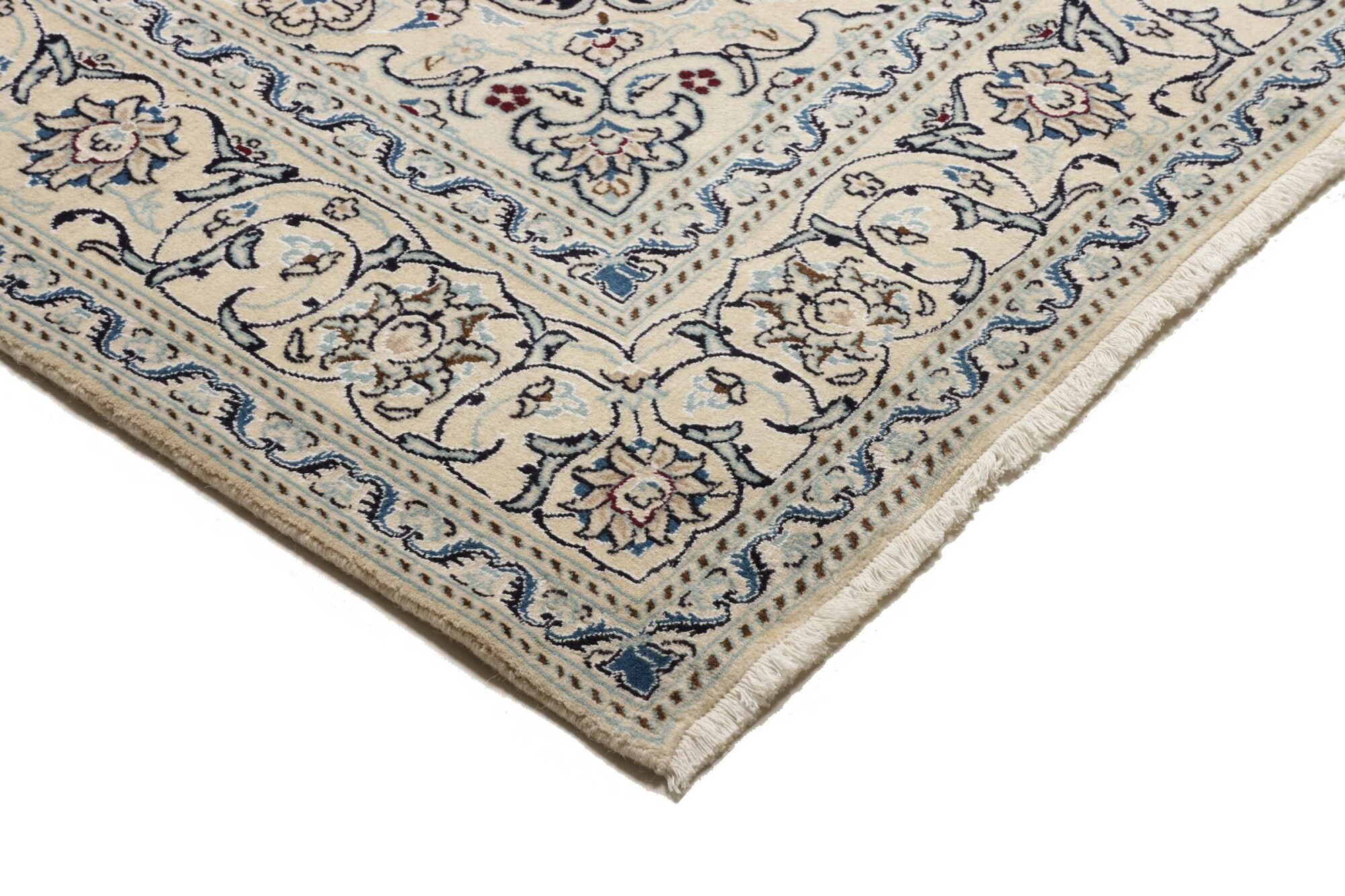 Nain carpets are high-quality Persian rugs woven in the Nain region of Iran. Known for their intricate designs, these carpets feature fine details, often incorporating floral and medallion patterns. Made from premium wool or silk, Nain carpets are prized for their elegance, durability, and smooth texture.