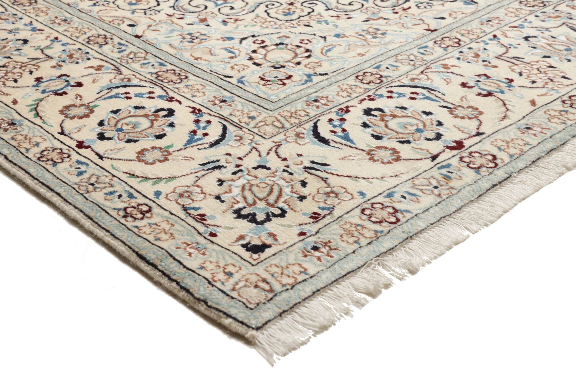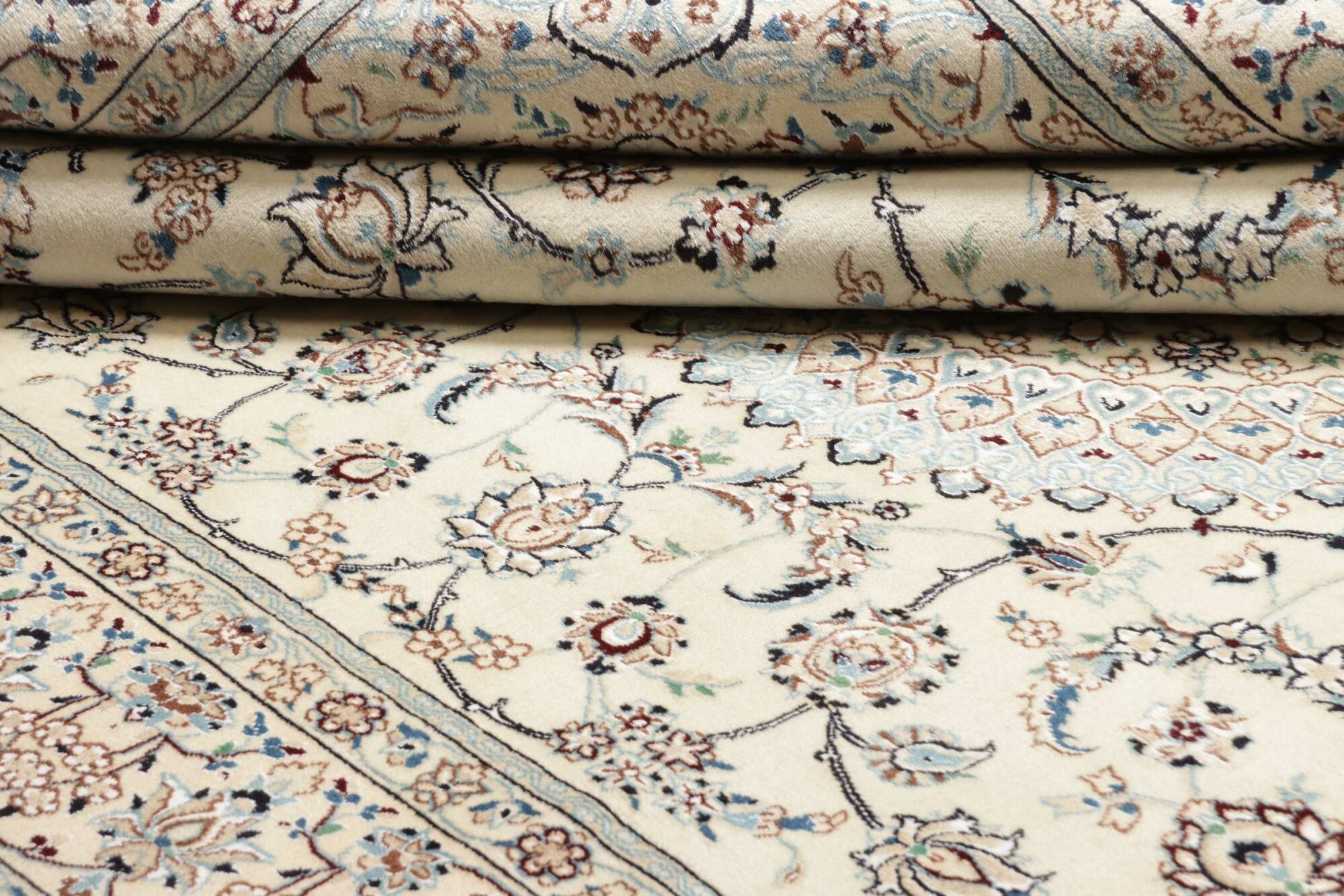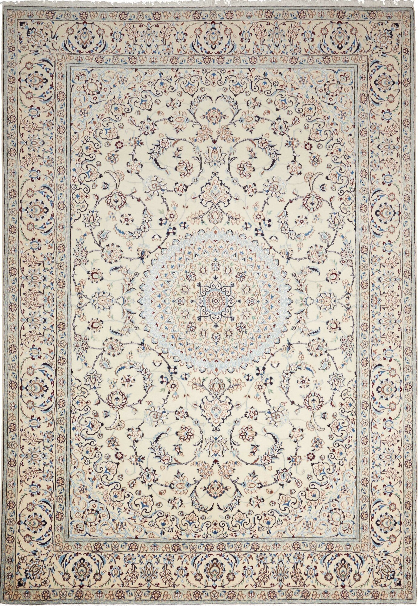 Nain carpets are high-quality Persian rugs woven in the Nain region of Iran. Known for their intricate designs, these carpets feature fine details, often incorporating floral and medallion patterns. Made from premium wool or silk, Nain carpets are prized for their elegance, durability, and smooth texture.