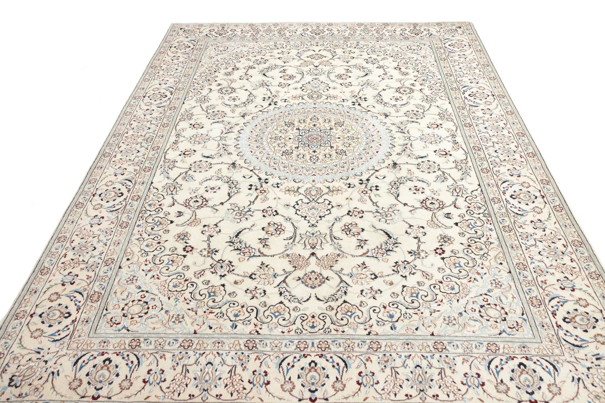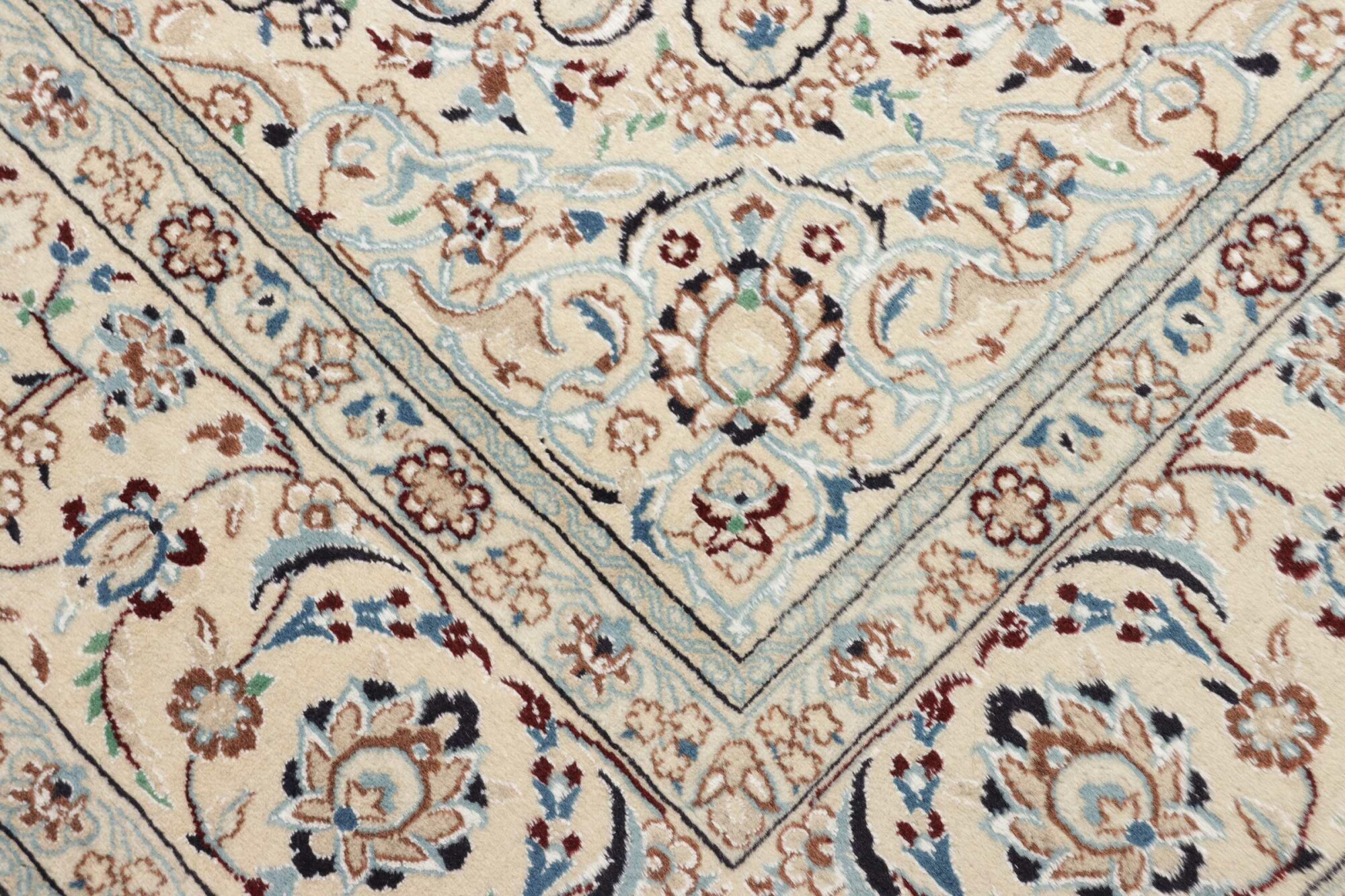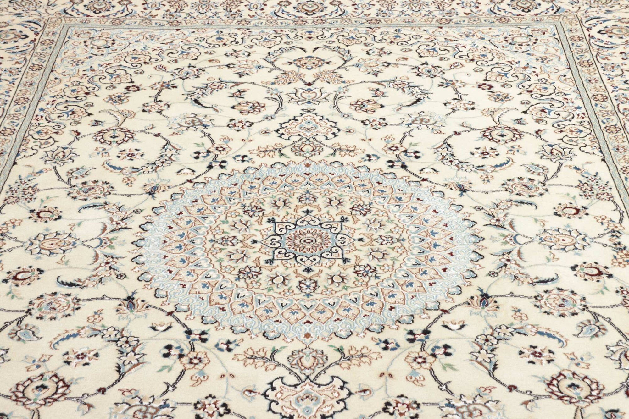 Nain carpets are high-quality Persian rugs woven in the Nain region of Iran. Known for their intricate designs, these carpets feature fine details, often incorporating floral and medallion patterns. Made from premium wool or silk, Nain carpets are prized for their elegance, durability, and smooth texture.