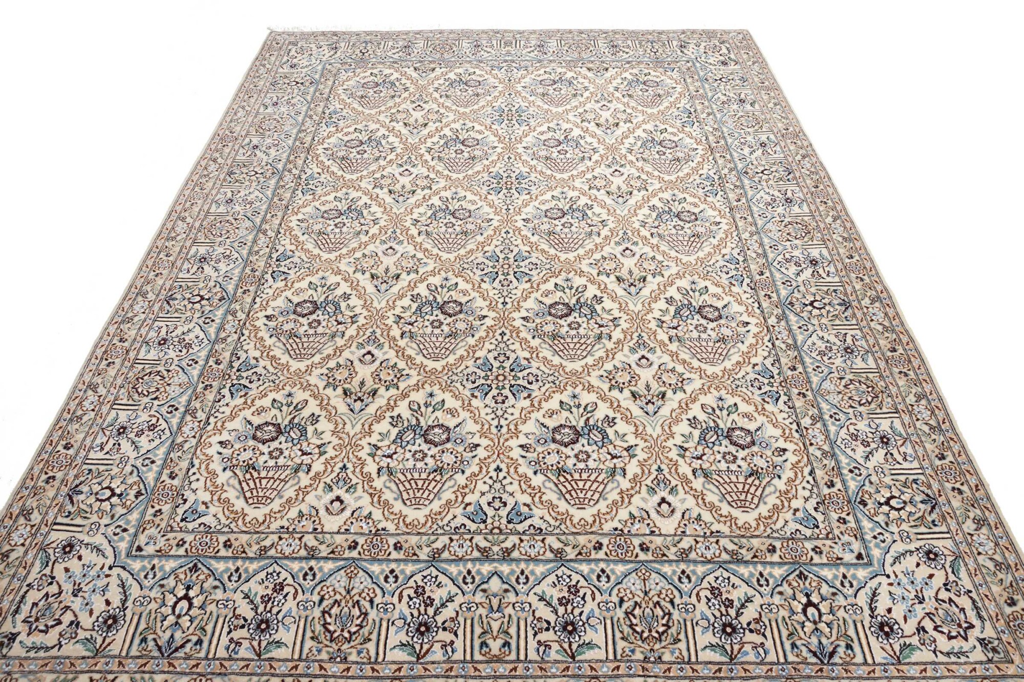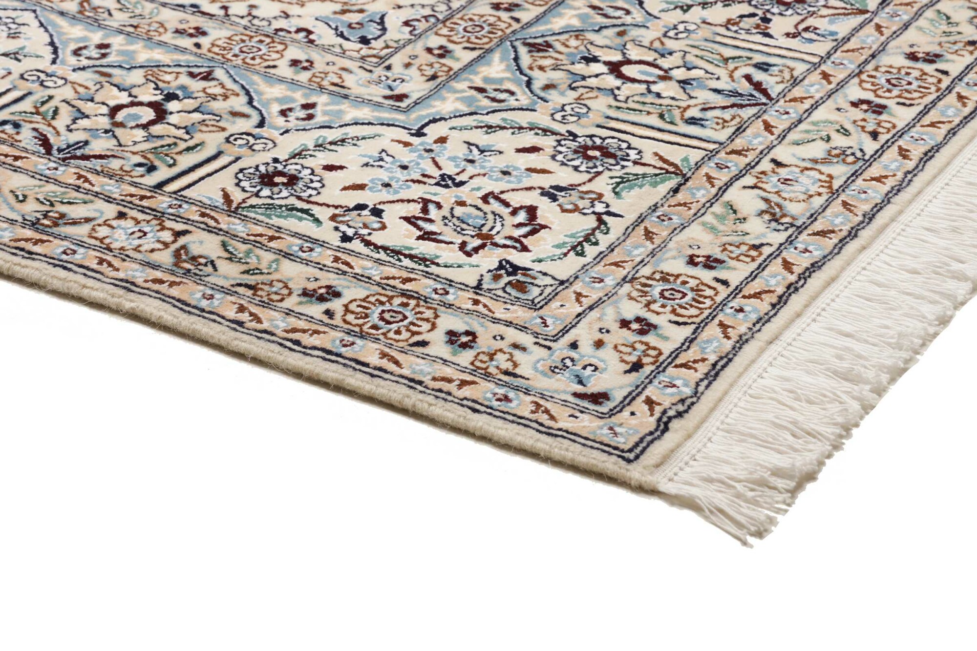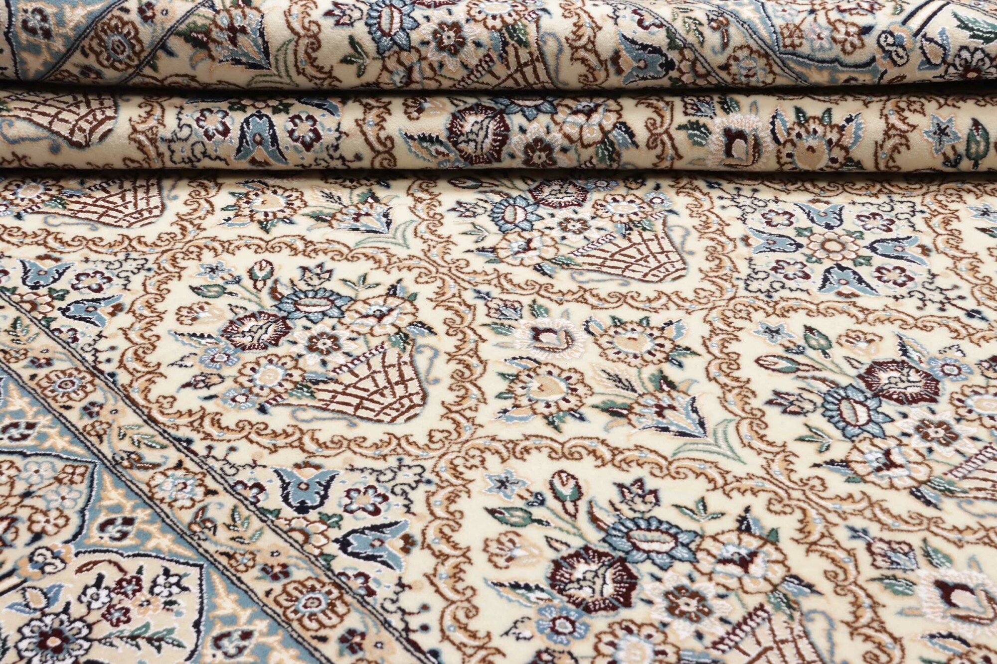 Nain carpets are high-quality Persian rugs woven in the Nain region of Iran. Known for their intricate designs, these carpets feature fine details, often incorporating floral and medallion patterns. Made from premium wool or silk, Nain carpets are prized for their elegance, durability, and smooth texture.