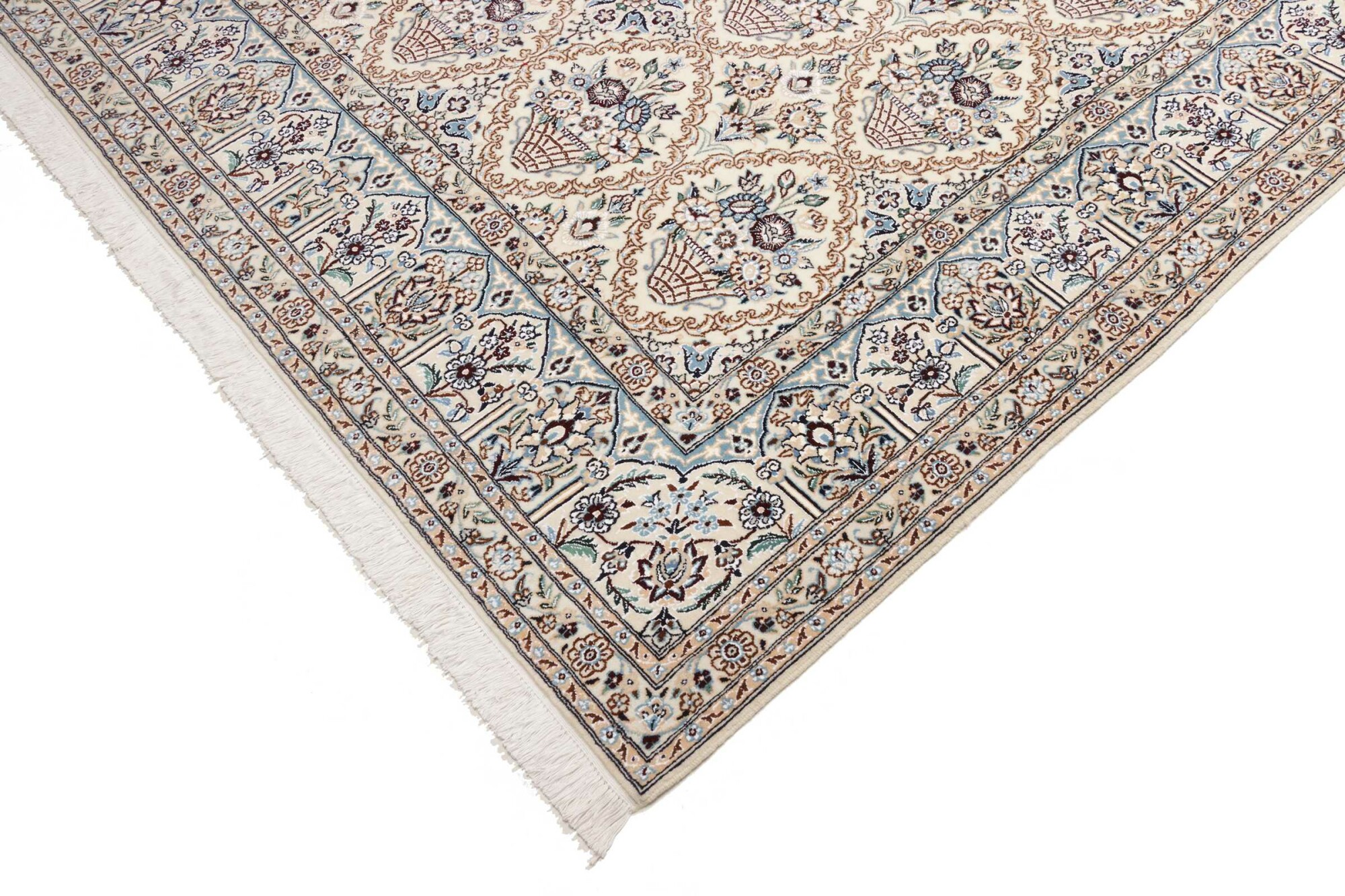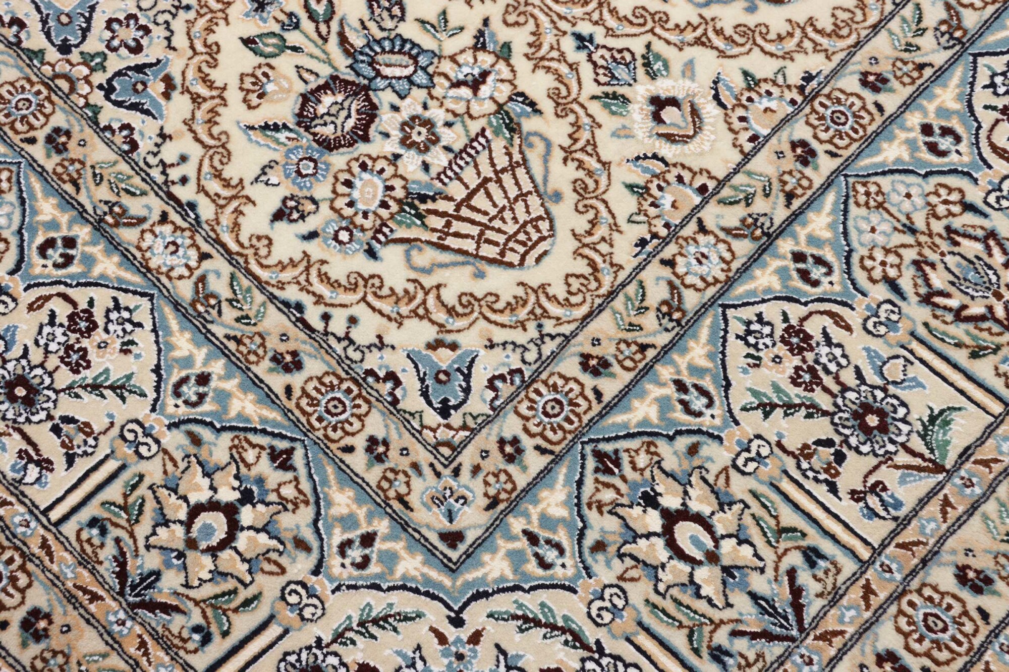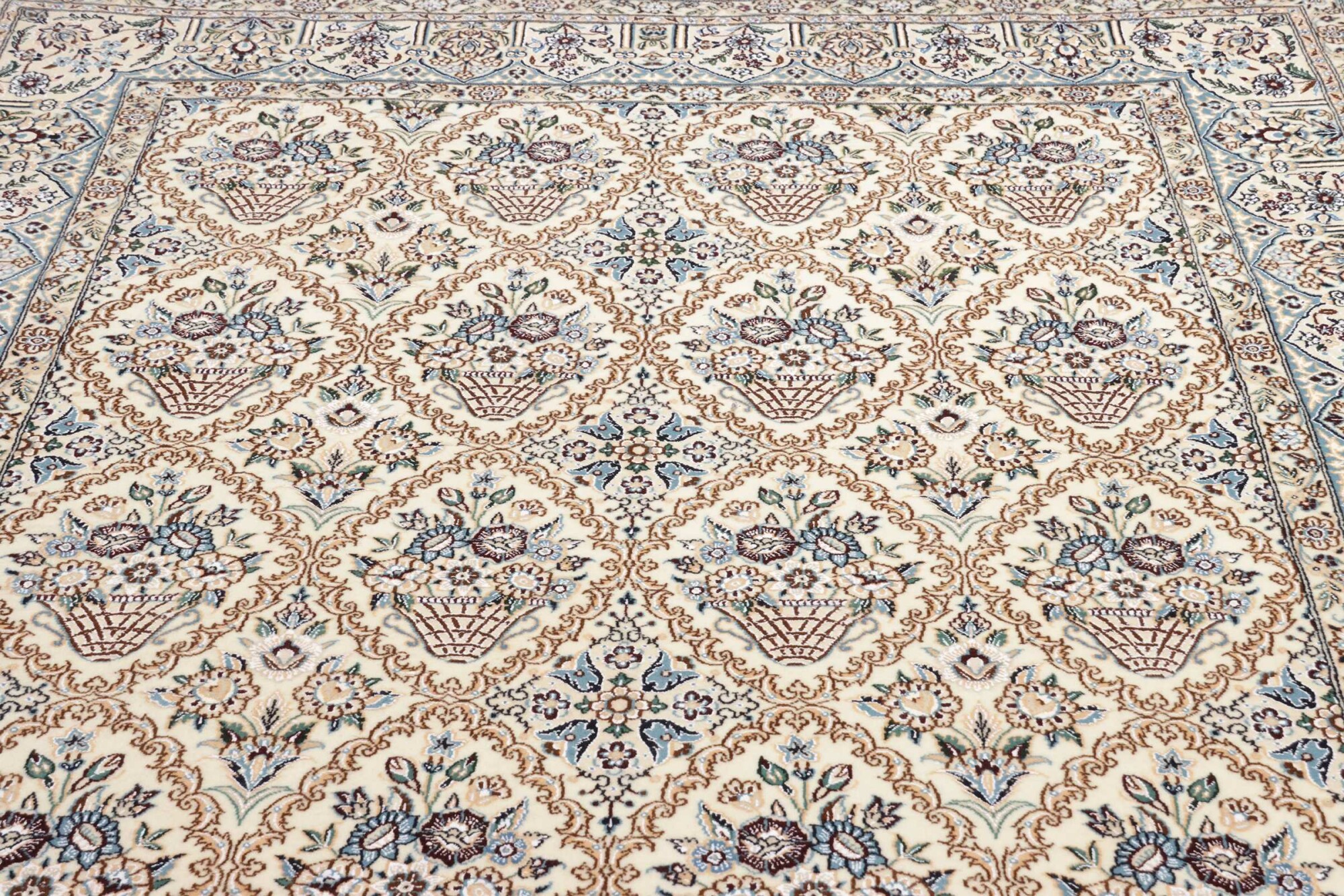 Nain carpets are high-quality Persian rugs woven in the Nain region of Iran. Known for their intricate designs, these carpets feature fine details, often incorporating floral and medallion patterns. Made from premium wool or silk, Nain carpets are prized for their elegance, durability, and smooth texture.