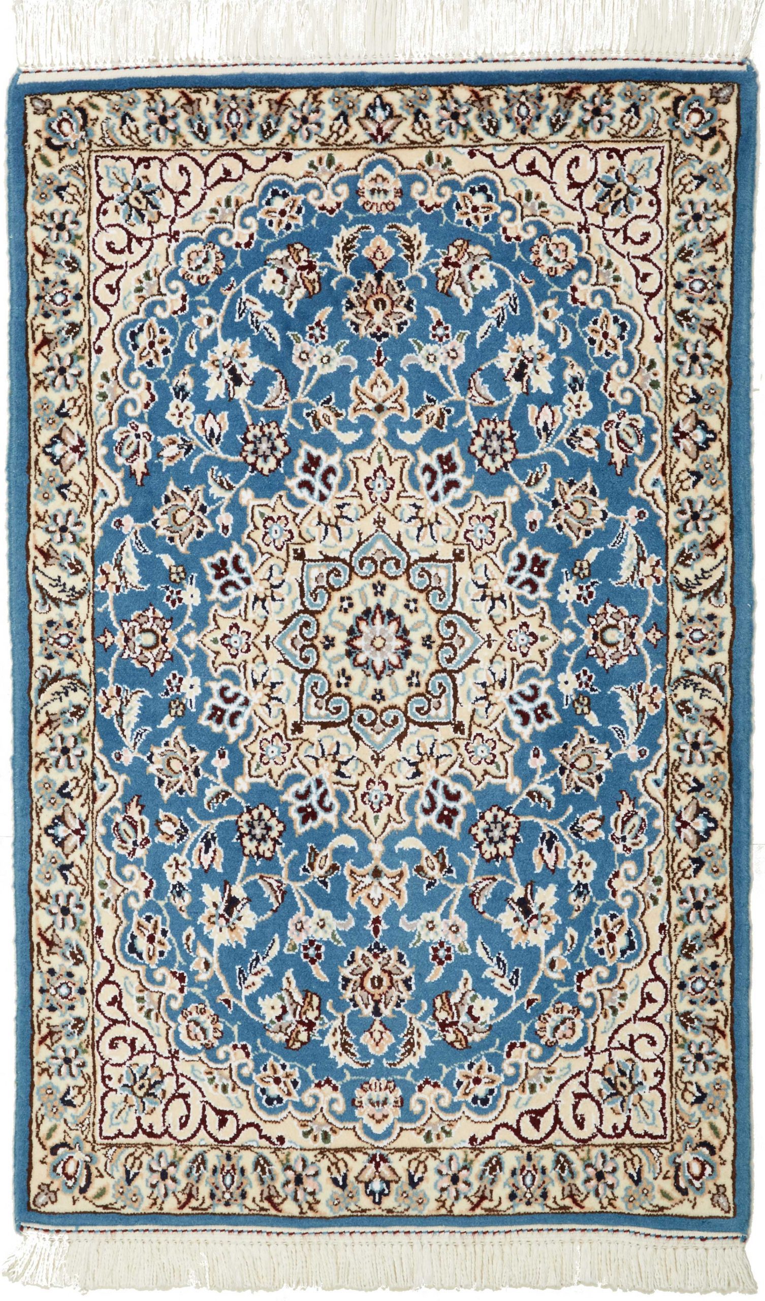 Nain carpets are high-quality Persian rugs woven in the Nain region of Iran. Known for their intricate designs, these carpets feature fine details, often incorporating floral and medallion patterns. Made from premium wool or silk, Nain carpets are prized for their elegance, durability, and smooth texture.