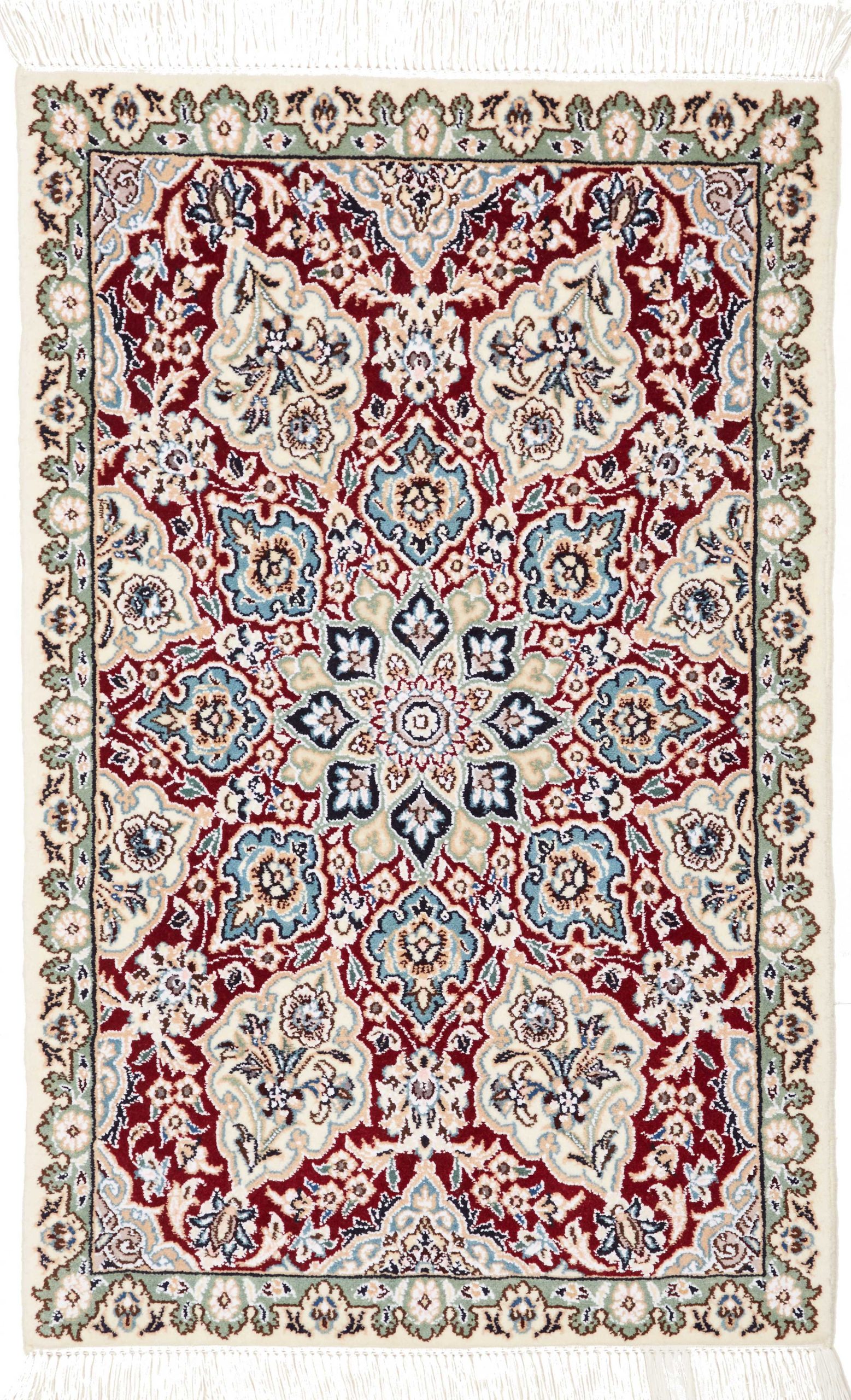 Nain carpets are high-quality Persian rugs woven in the Nain region of Iran. Known for their intricate designs, these carpets feature fine details, often incorporating floral and medallion patterns. Made from premium wool or silk, Nain carpets are prized for their elegance, durability, and smooth texture.